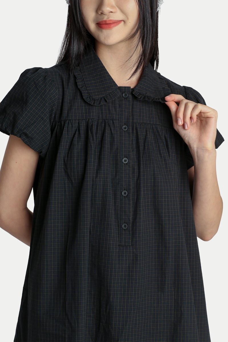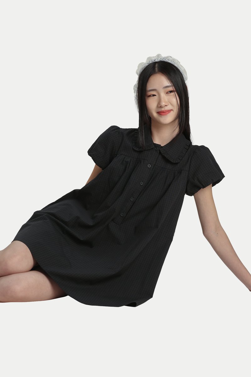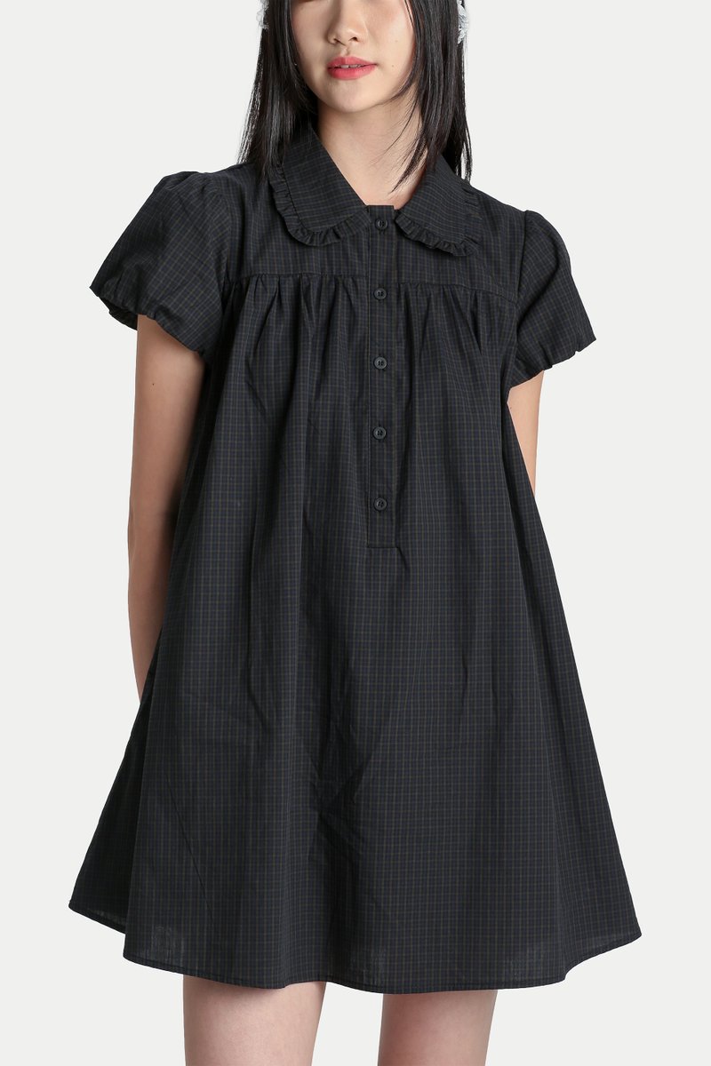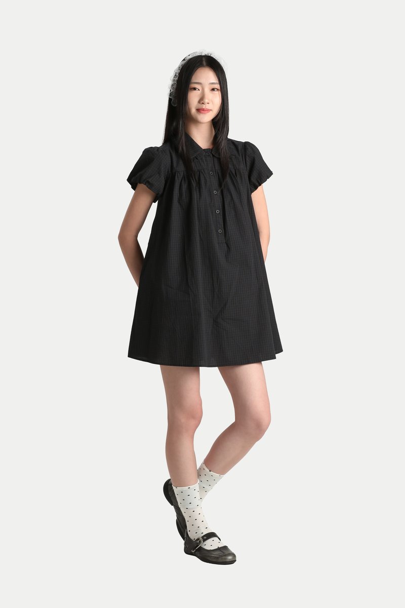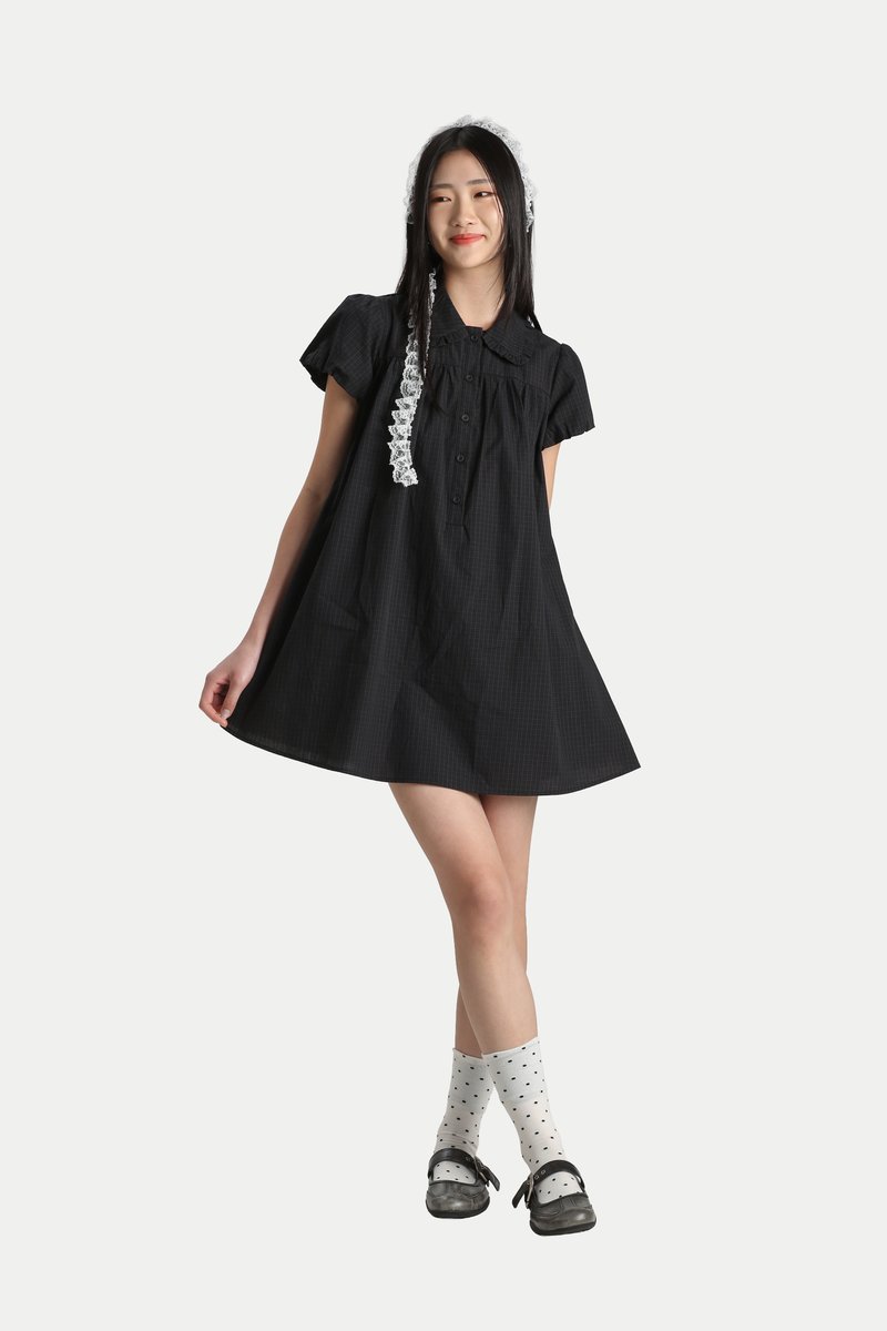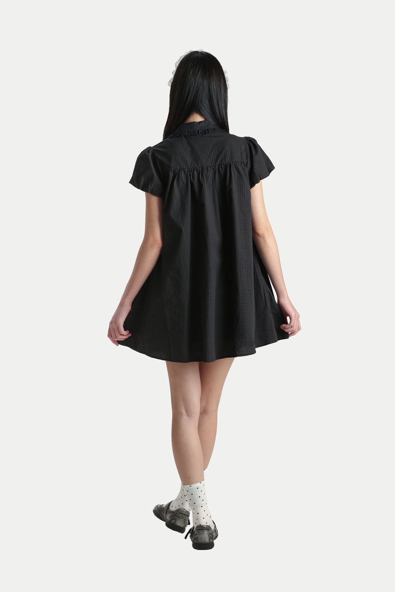 ELENA BABYDOLL ROMPER DRESS IN BLACK CHECKS