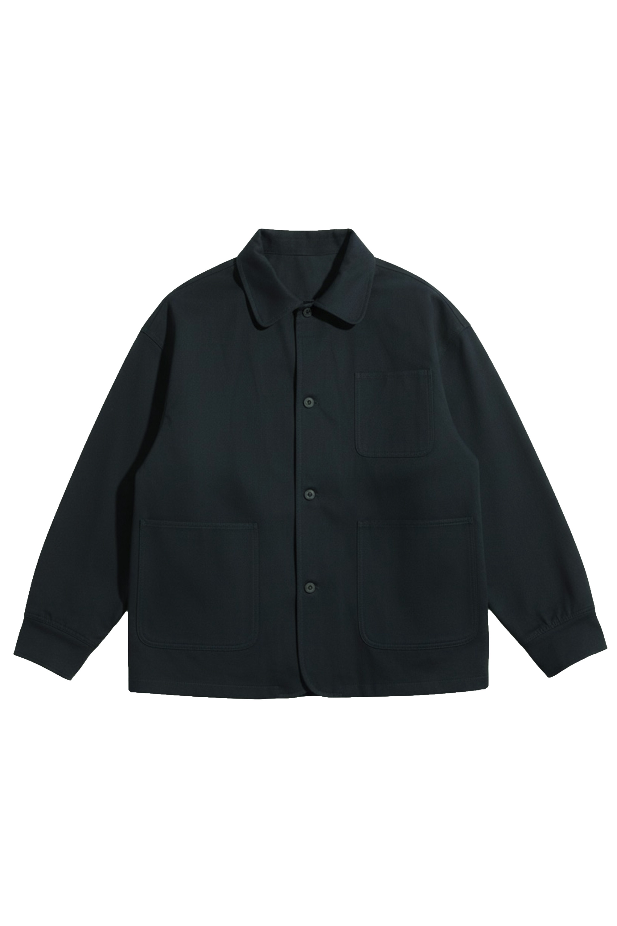 The Hendrick Chore Jacket is unlined and fitted with a left chest patch pocket, two side patch pockets, button up front and elasticated sleeve cuffs.