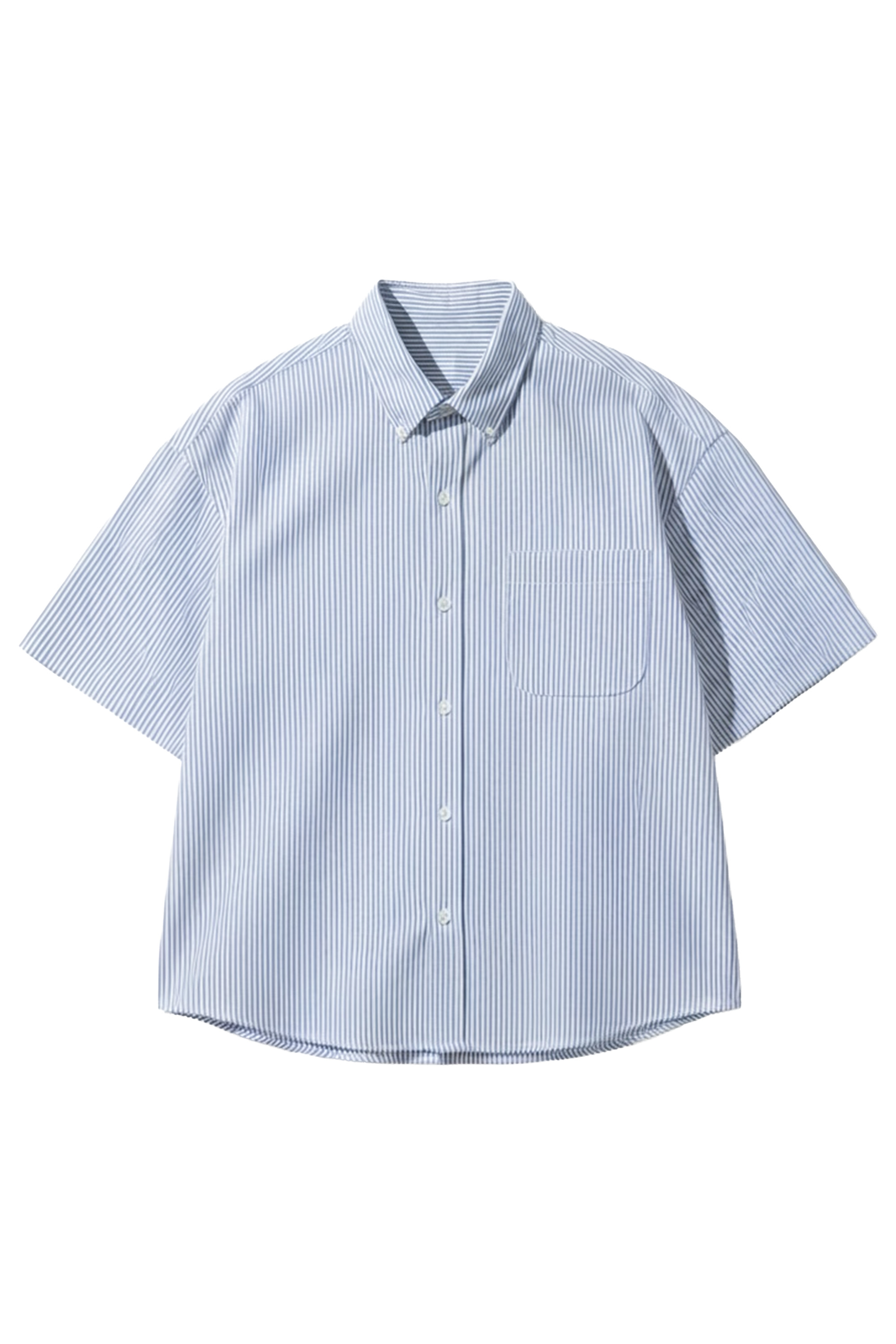 The Kip Striped Oxford Aero Shirt is fitted with a button-down collar, button up front, left chest pocket with velcro closure and detatched back yoke with a concealed mesh airflow panel.