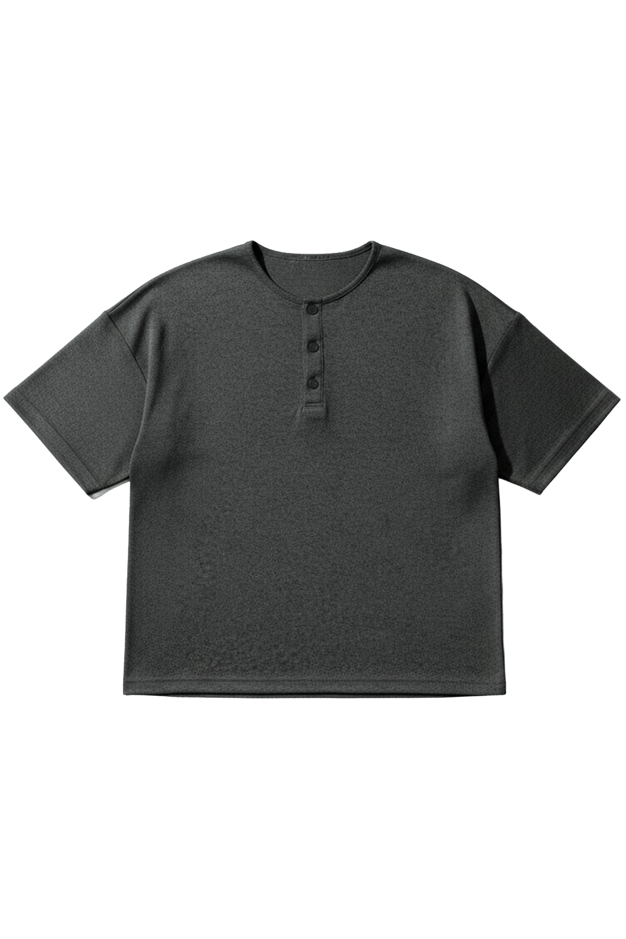 The Koa Boxy-Fit Henley Top is fitted with a 3-button henley placket and rounded collar.
