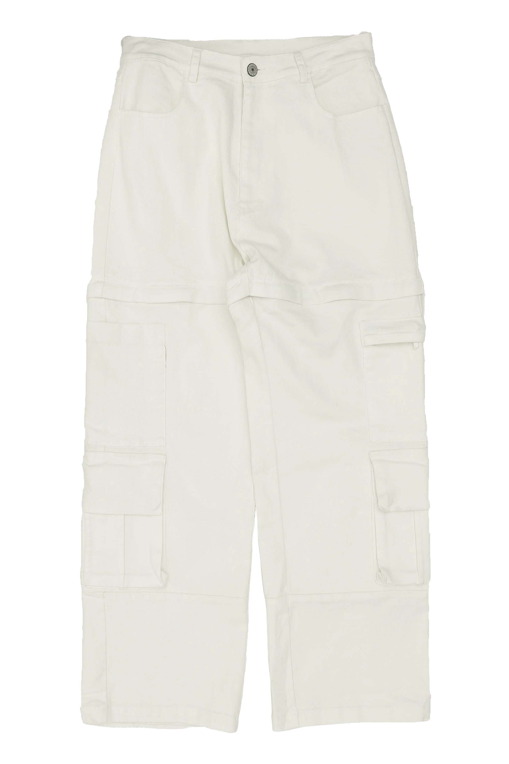The Edric Convertible Cargo Trousers are fitted with beltloops, side pockets, back pockets, 4 cargo pockets, zippered thigh connections, a hidden hanger loop at the leg openings and a zipper fly with button closure.