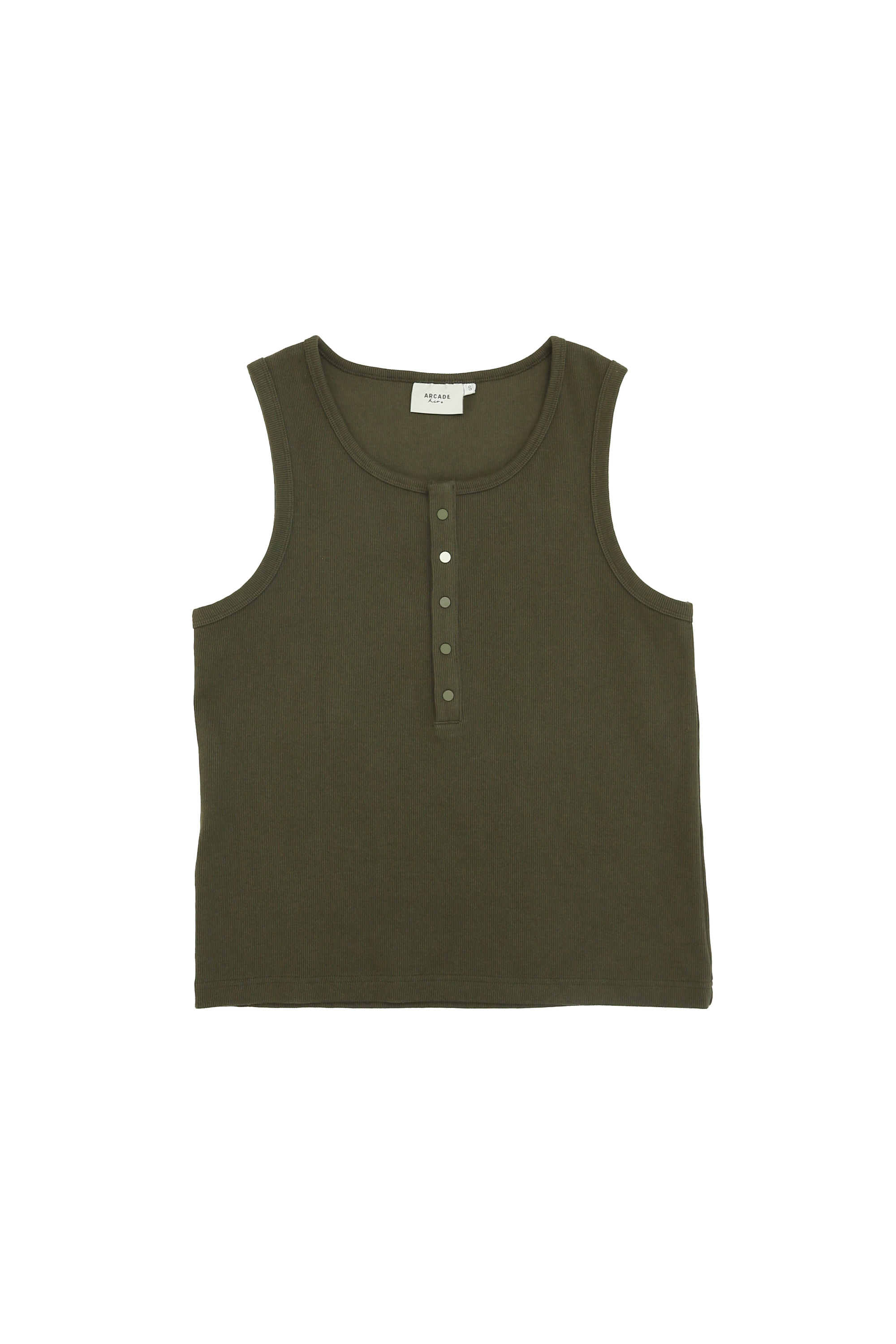 The Arcade x Hiro Y. Henley Tank Top is cut from a ribbed jersey fabric that provides structure, comfort and breathability. It features a five-button henley placket for a touch of modernity and visual detail.