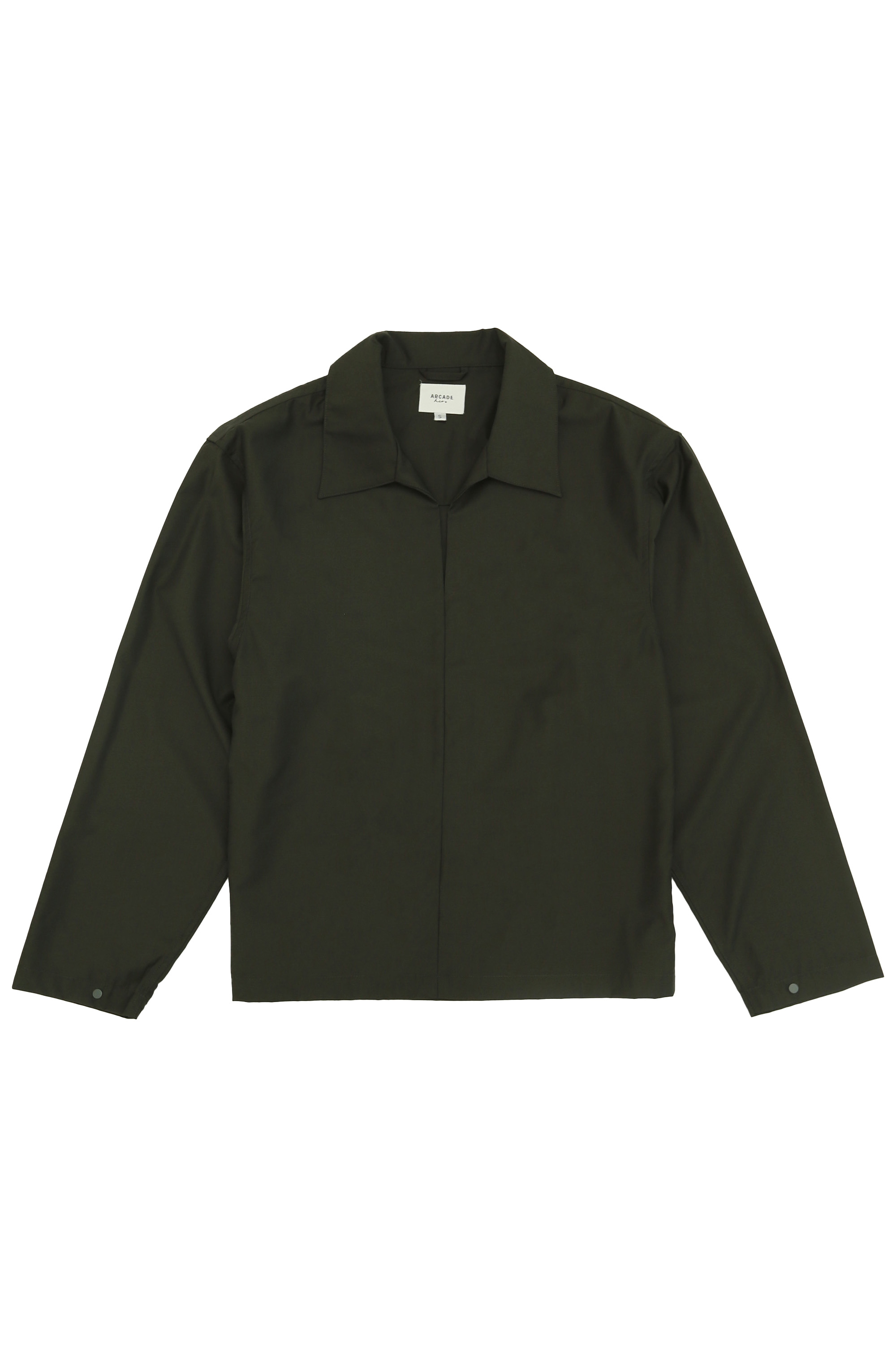 The Arcade x Hiro Y. Skipper Collar Top is fitted with a skipper collar and snap button at the sleeve cuffs.