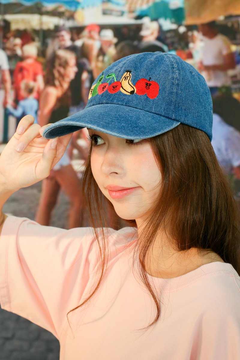 The Arcade x Tess Smith-Roberts “Fruit Parade” Baseball Cap is your go-to companion for sunny days. Featuring her signature fruit illustrations lined up across a classic denim base, it strikes the perfect balance between vintage charm and a fresh, playful edge. Designed with a timeless baseball cap silhouette, it comes with an adjustable buckle at the back for a comfortable, customisable fit. Easy to style and effortlessly cute, it’s the perfect finishing touch to elevate your everyday look.
