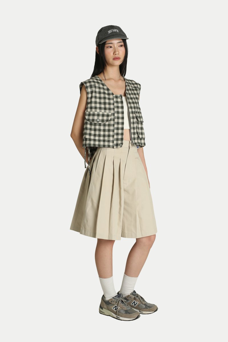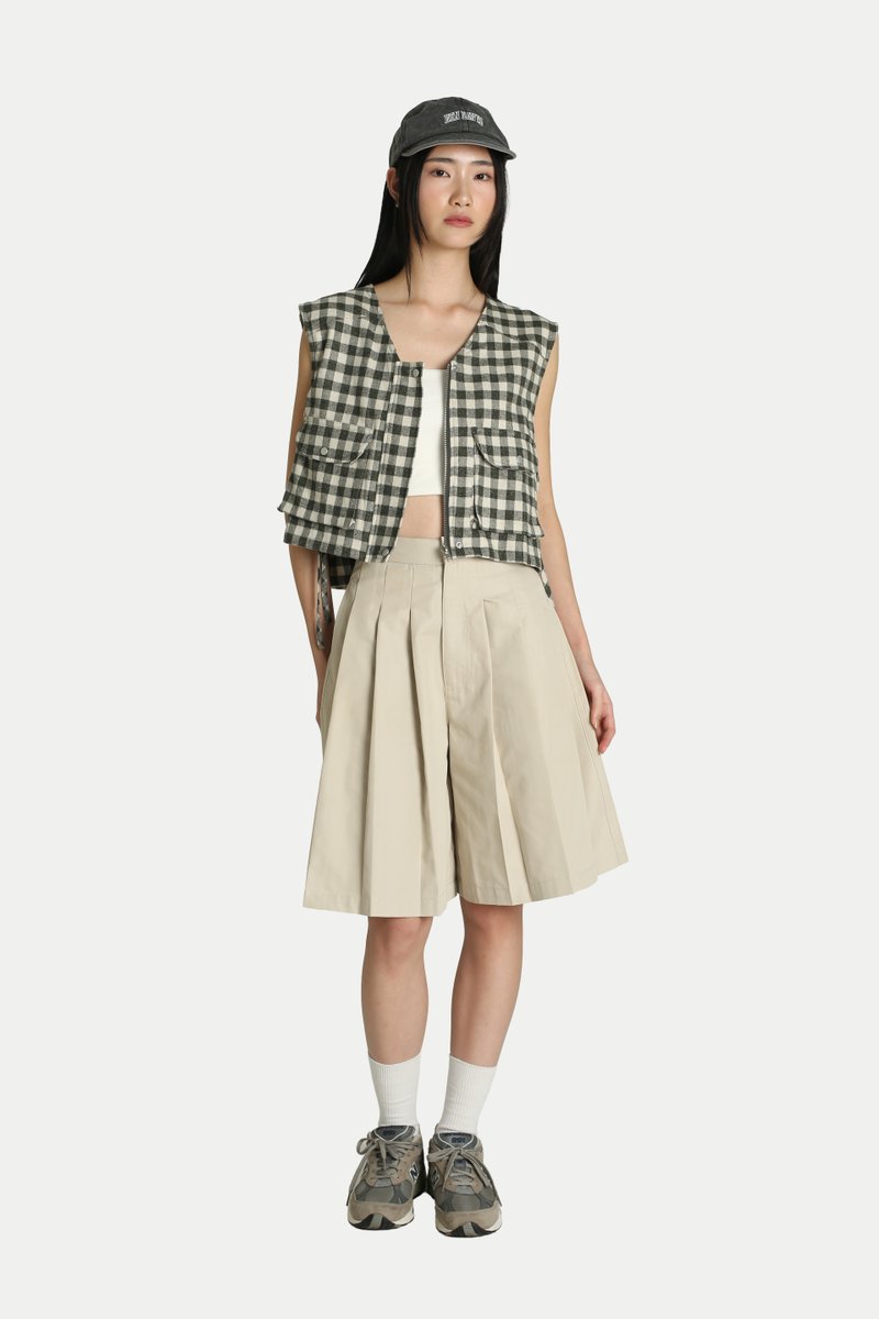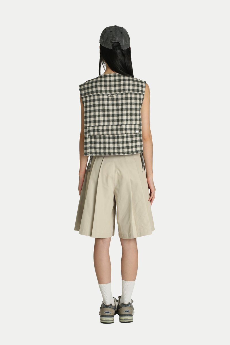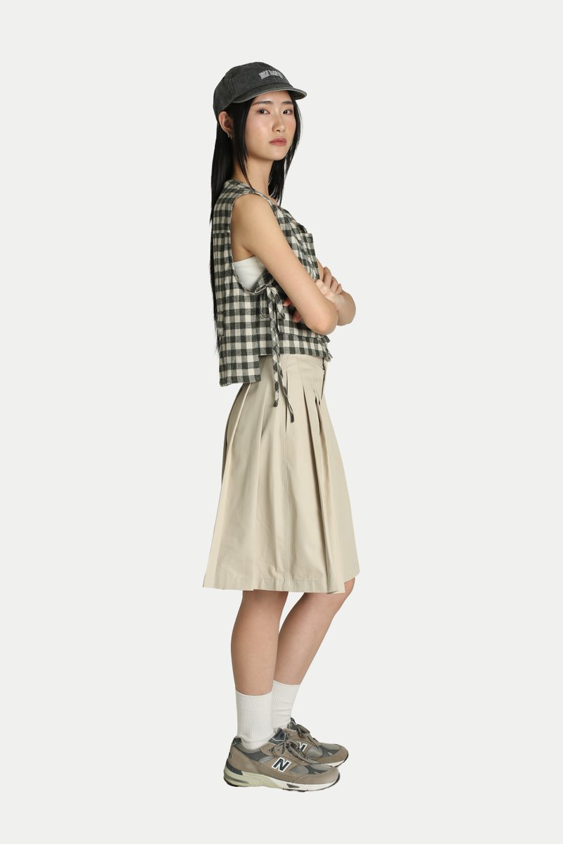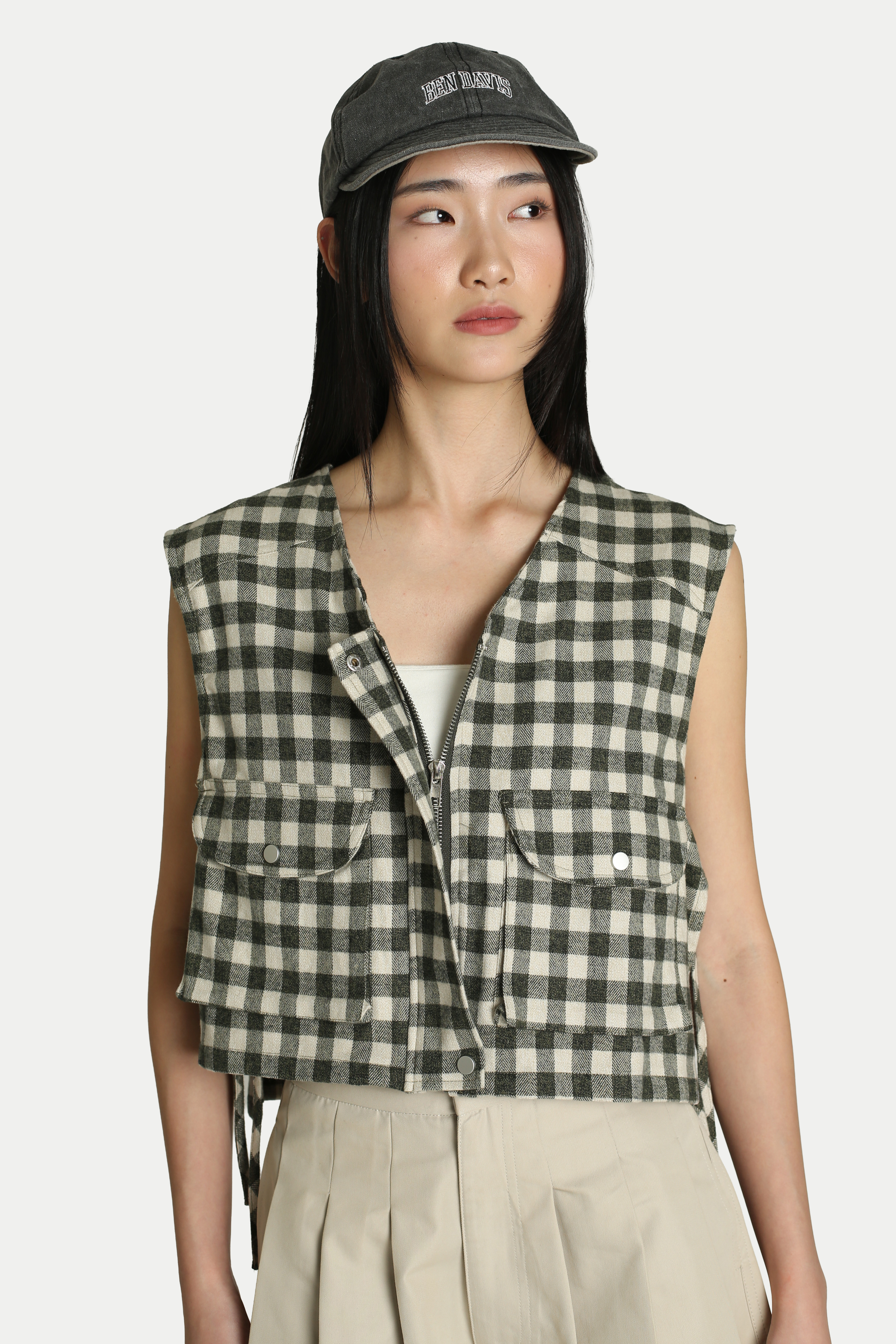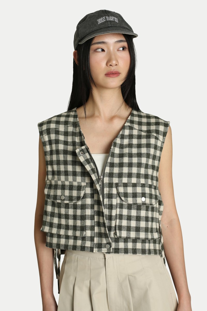 Jaeyll Cropped Side Tie Vest will become your wardrobe essential. Designed with convenience in mind, it features front patch pockets and a long back pocket—perfect for storing your daily essentials. The boxy silhouette and side ties provide both ventilation and a stylish touch. Pair it with a skirt for a playful look or with pants for easy mobility. Opens via a front zipper. Unlined