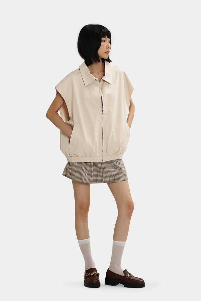 Shoji Oversized Vest is the versatile piece that helps to elevate your outfit. Giving a little more japanese vibe! Featuring the round hem at the front and the flap pockets that follows the shape of the round hem. Has a v neckline when zipped up fully. Pair it with our Kanda Denim/Twill Culottes to complete the japanese inspired look. Opens via front zipper. Unlined.