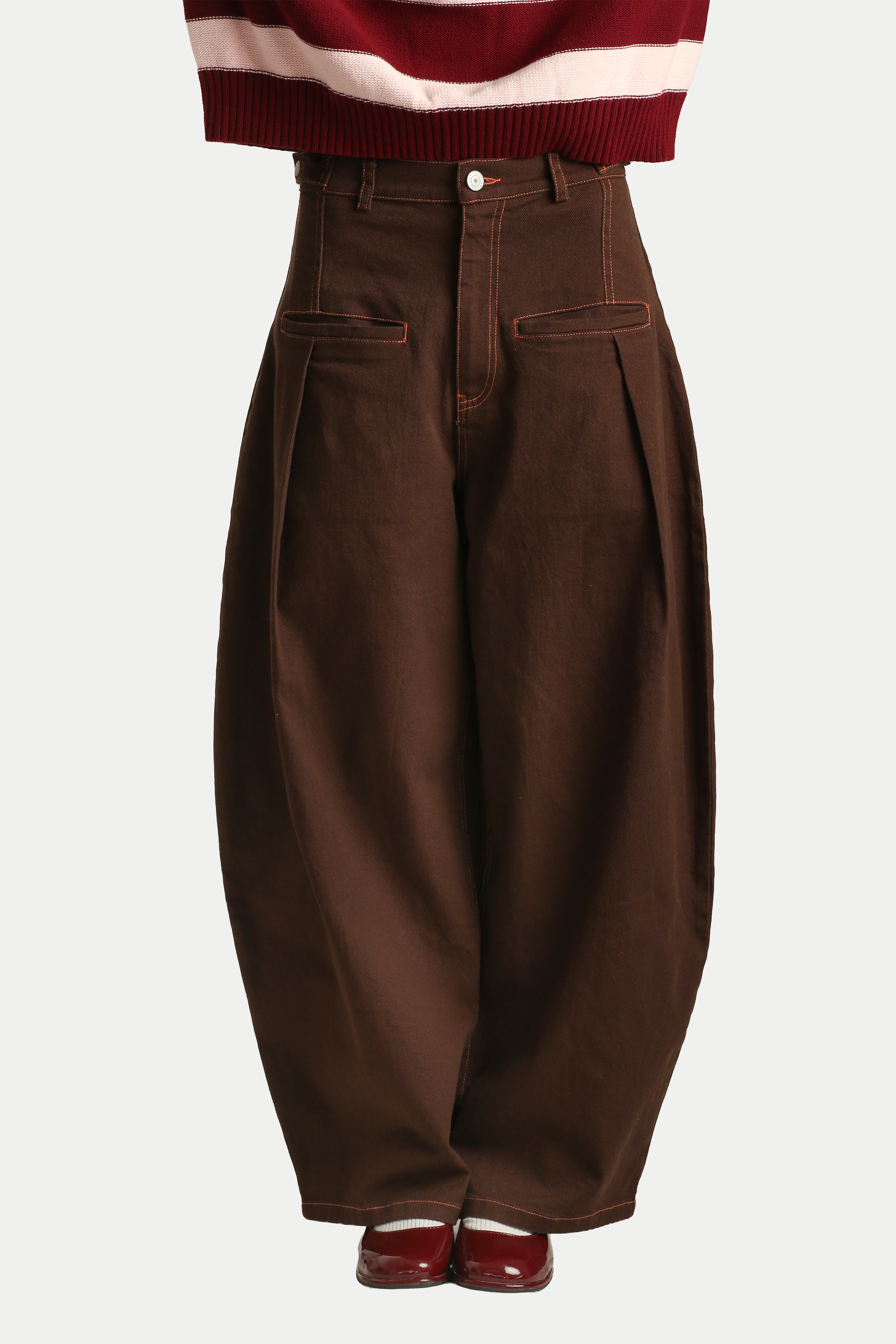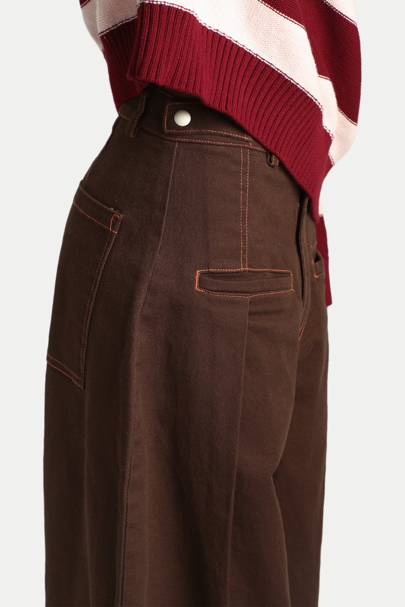 KAYLEE CONTRAST STITCH CURVED JEANS IN MOCHA