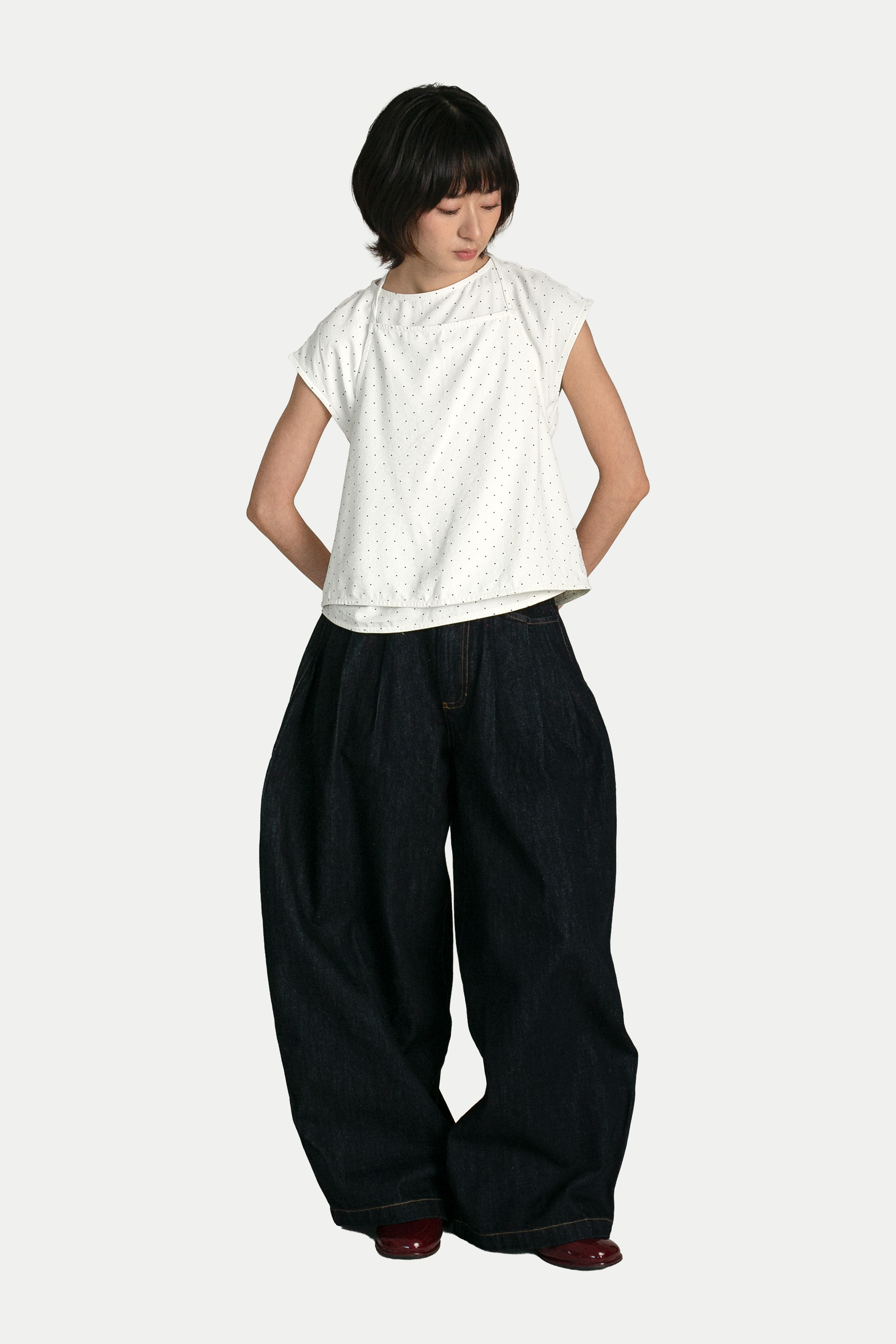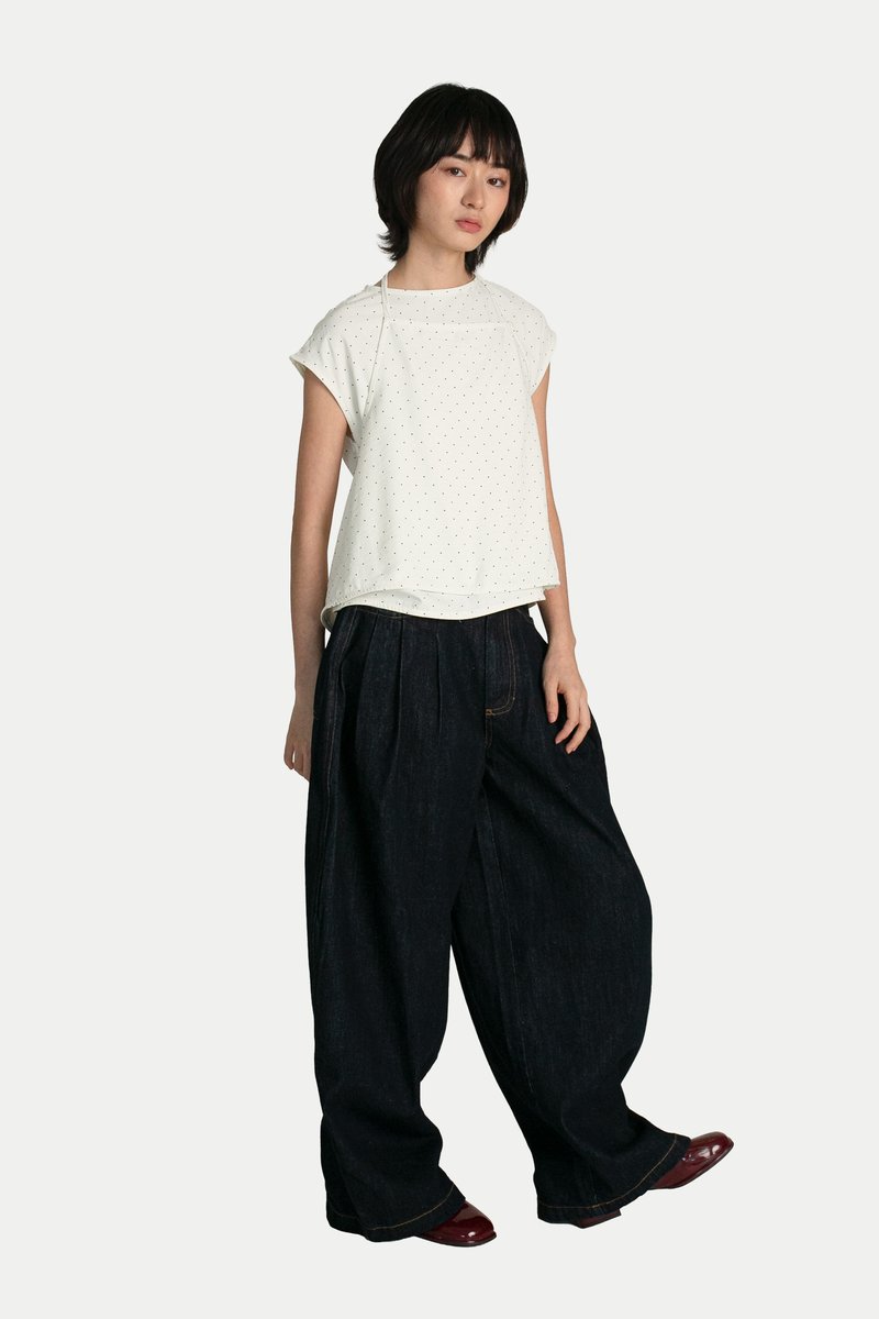 ANNE POLKA DOT TWO-PIECE SCARF TOP IN WHITE
