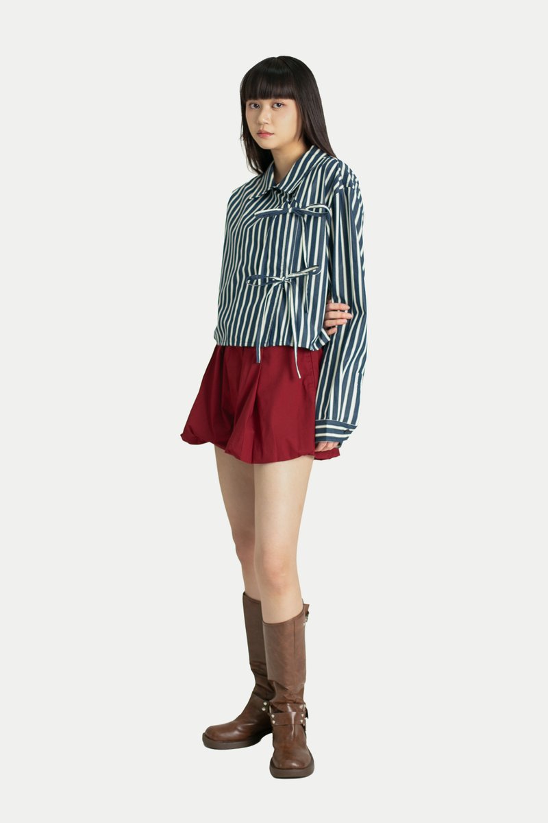 The Yuki Double-Breasted Ribbon Crop Shirt is the perfect mix of modern and oriental style—trendy yet timeless. Designed with a diagonal double-breasted opening and ribbon ties, it is a modern rendition of a traditional cheongsam top. Featuring a cropped, boxy silhouette, this piece is super easy to style. Pair it with jeans for a casual look, or with a cute skirt to channel a girly vibe for Chinese New Year. Opens via a front ribbon closure. Unlined.