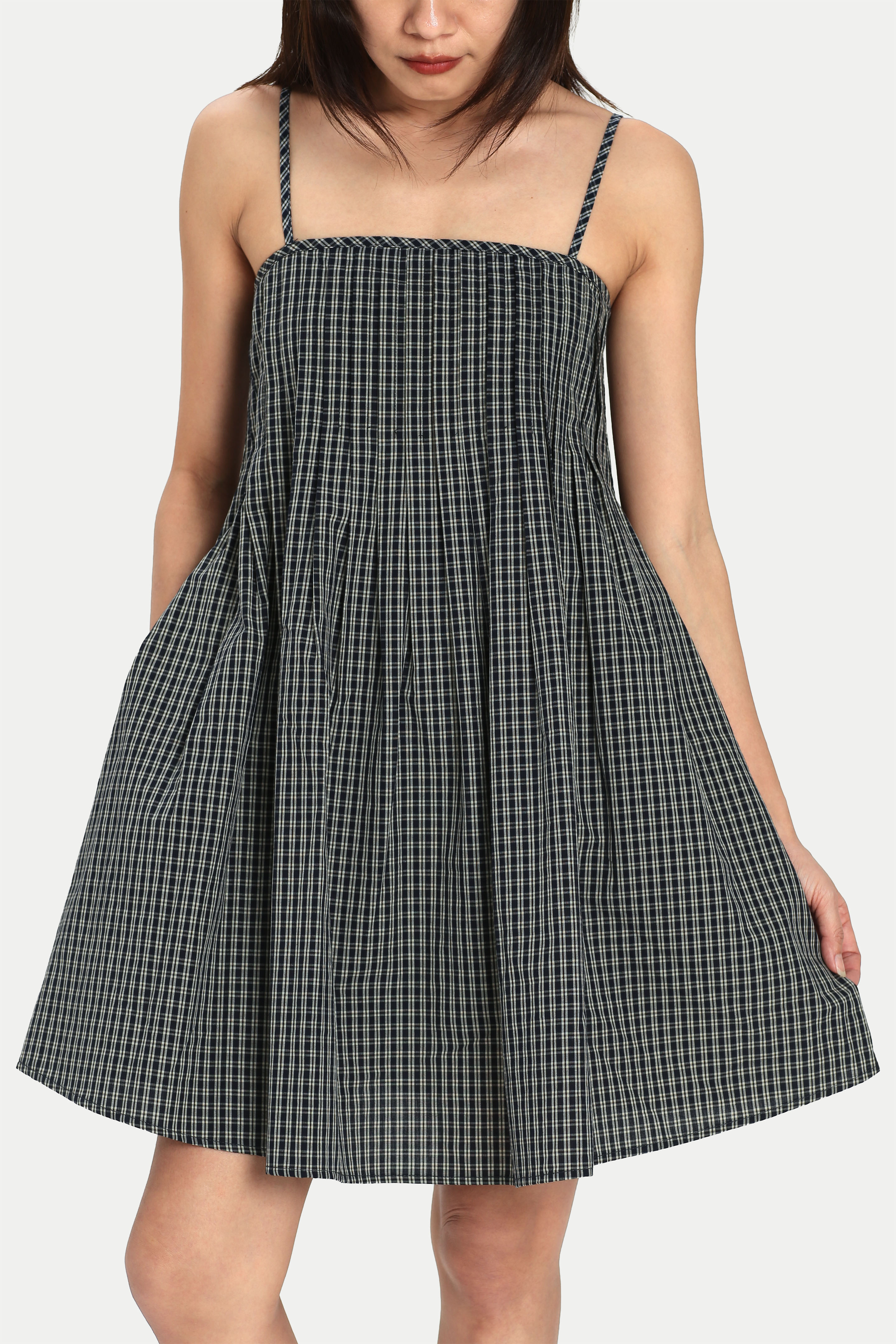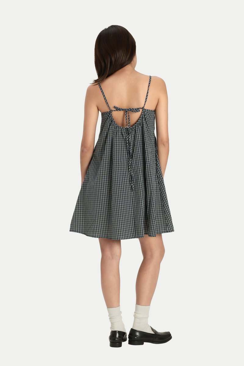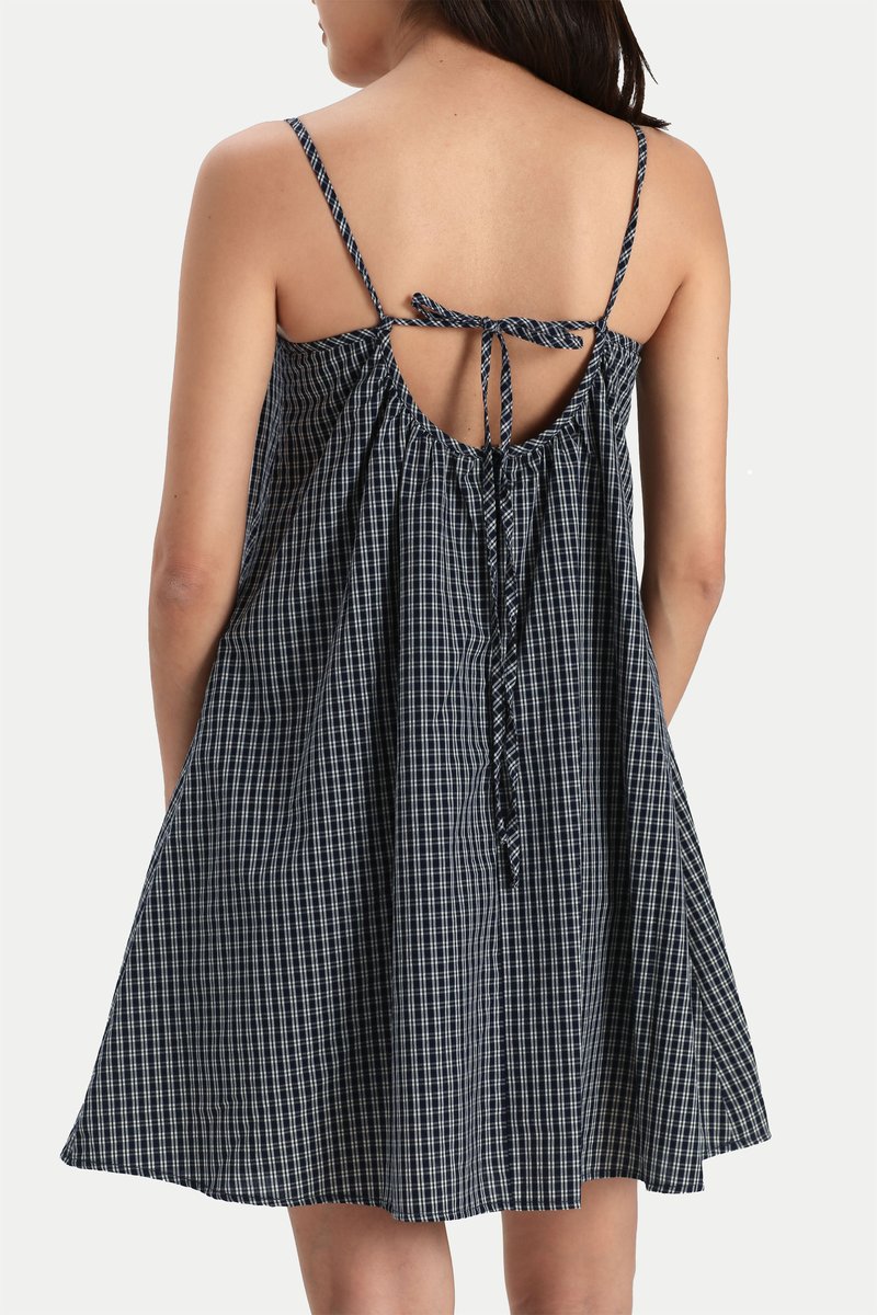 BLOSSOM PLEATED ROMPER DRESS IN NAVY CHECKS