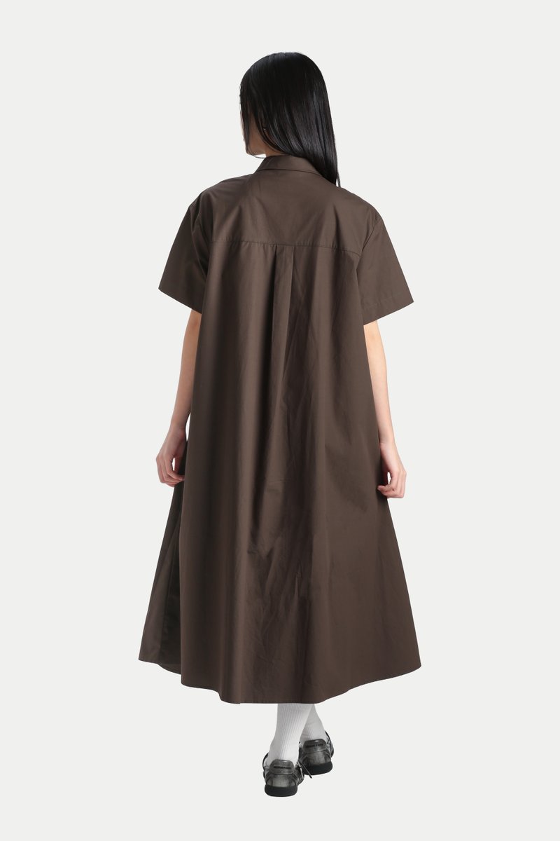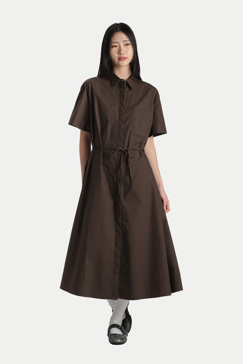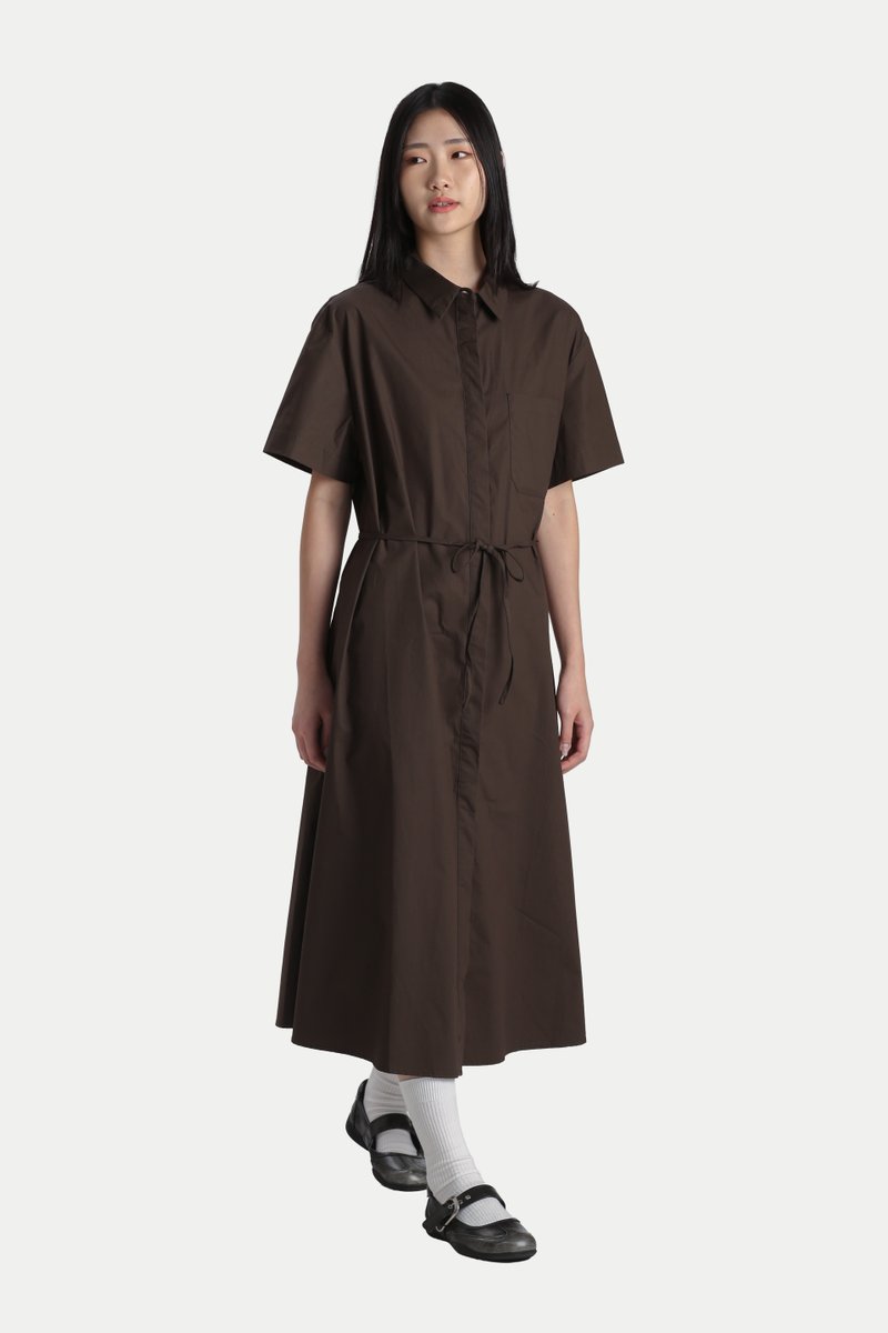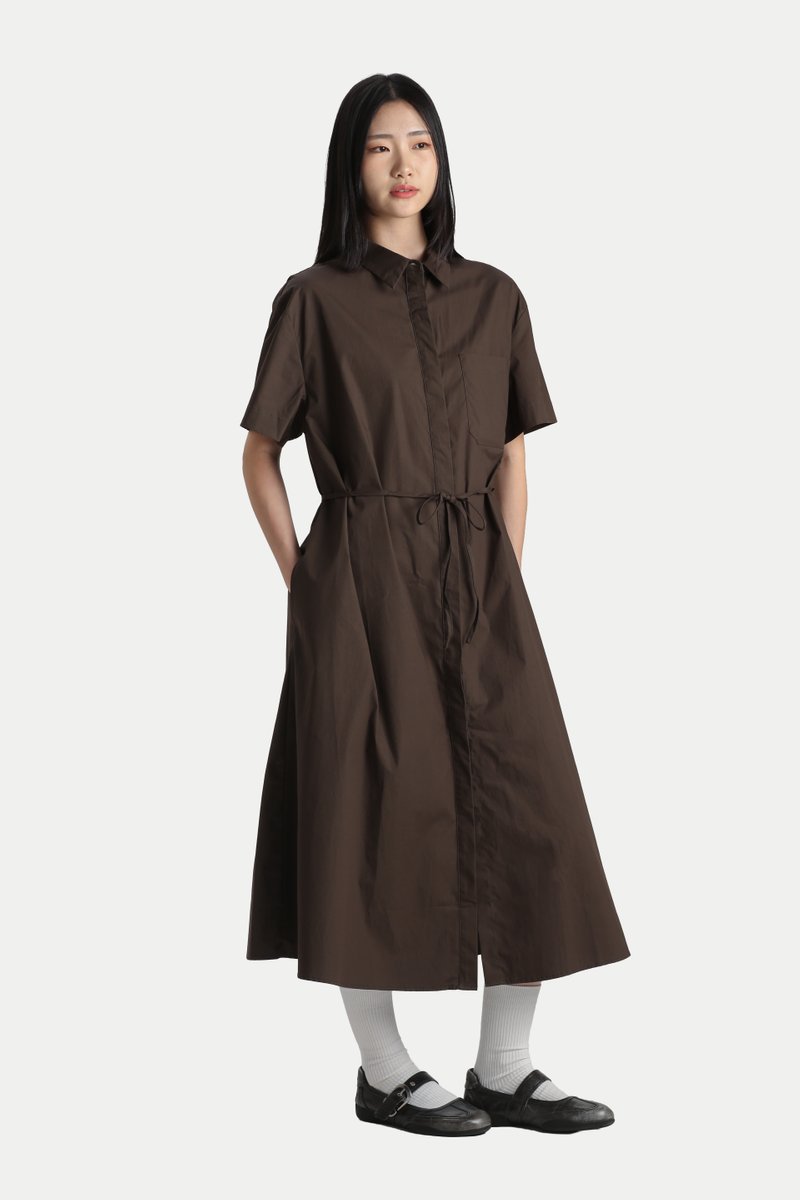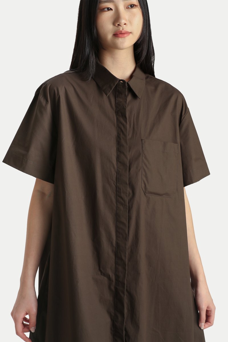 The Chiara Oversized Shirt Dress is a timeless and versatile piece to have in your wardrobe. Designed with an oversized, boxy silhouette and a subtle A-line shape, it creates a soft and flattering flare. Additional details include a button-down front, a front pocket, and a detachable sash for a cinched waist option. Perfect for days when you're rushing but still want to look effortlessly put together. Comes with both side and front pockets. Opens via button-down front. Unlined.