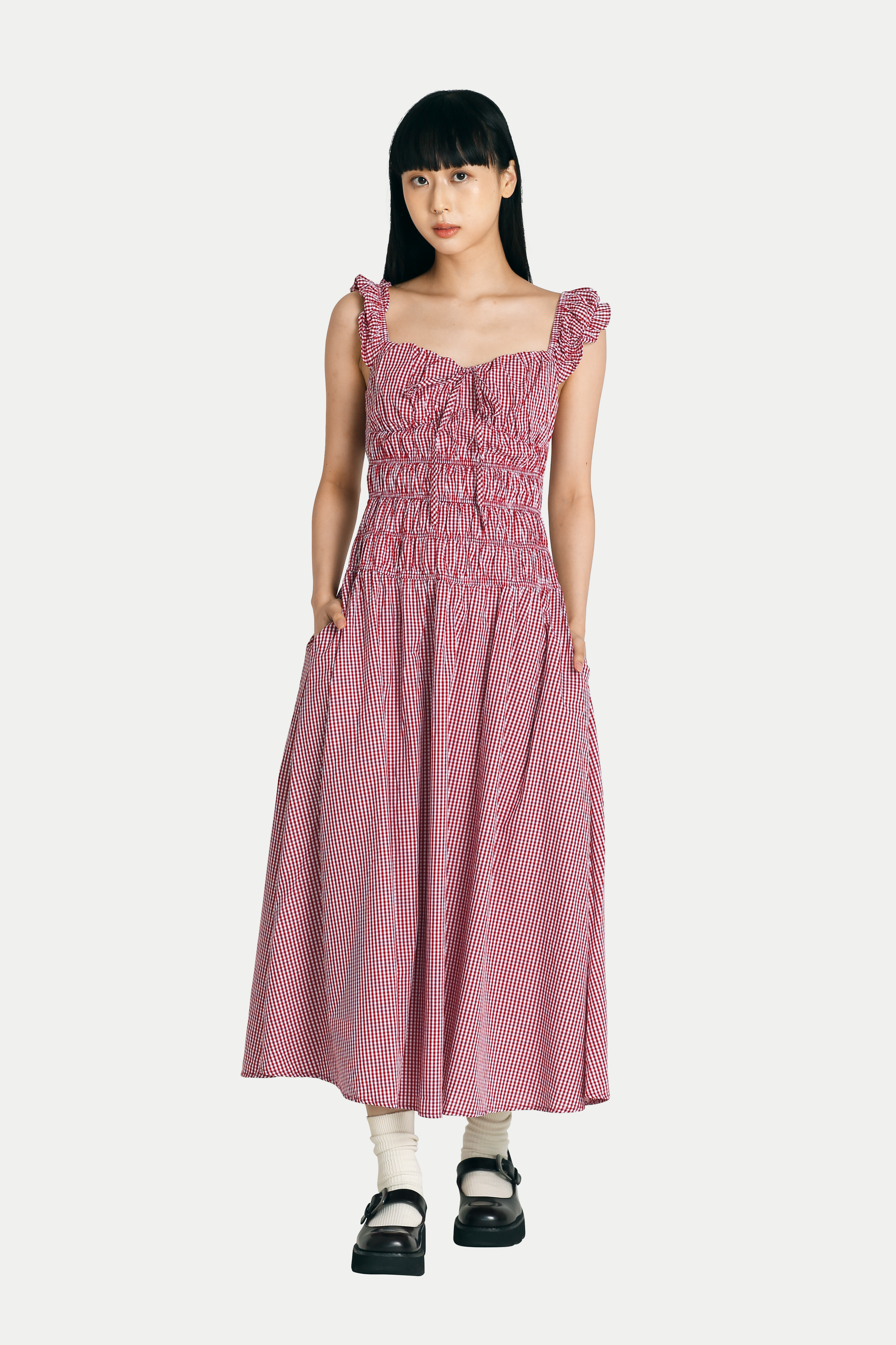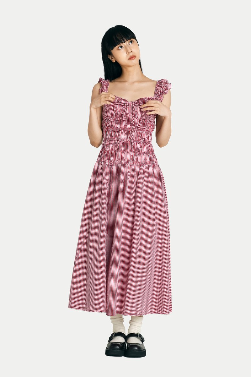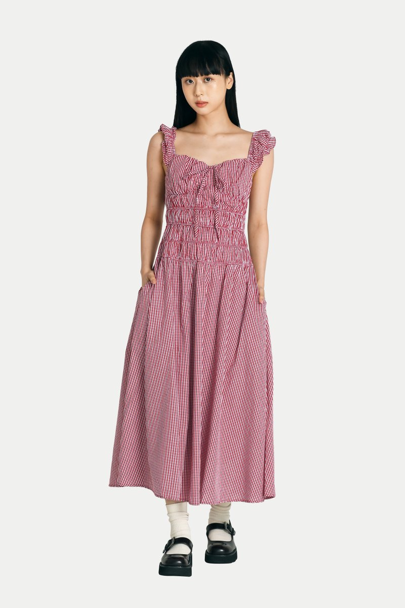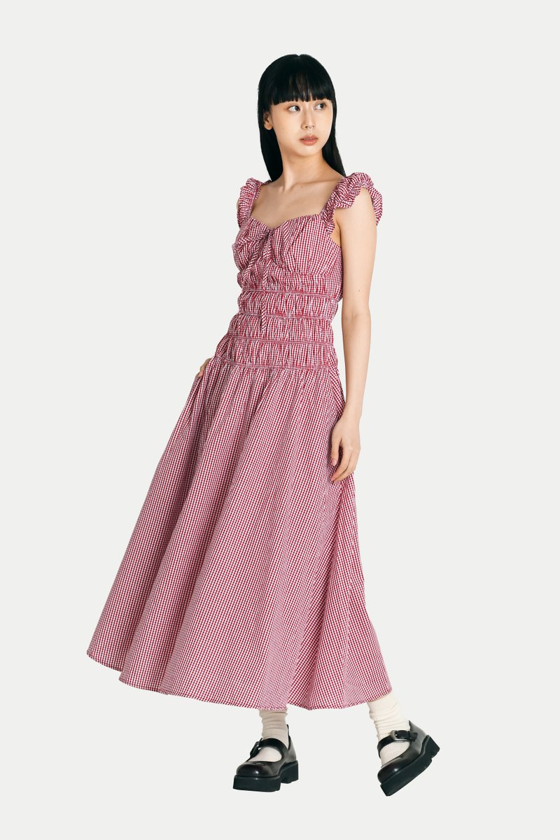 DELILAH MAXI RUCHED DRESS IN RED GINGHAM