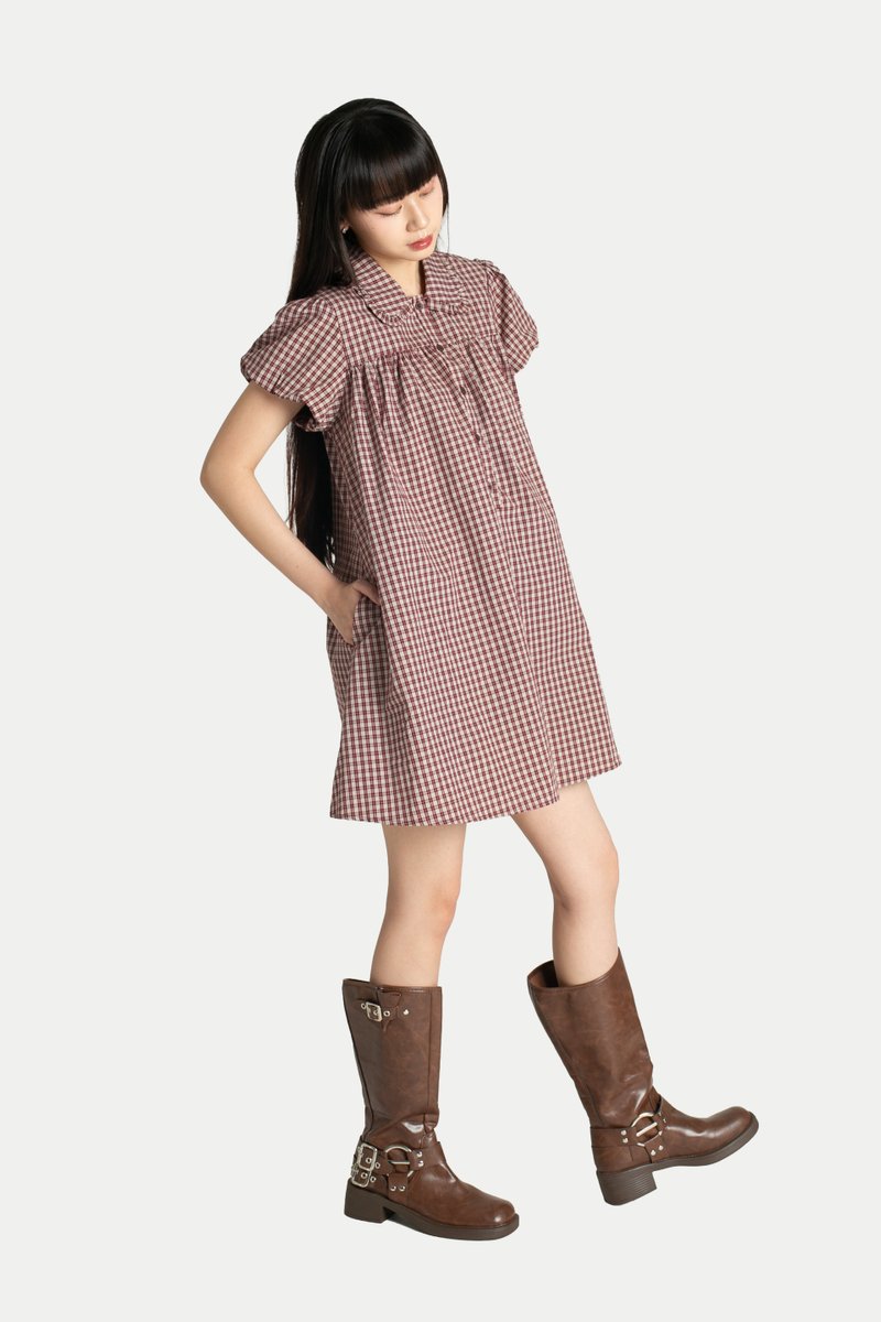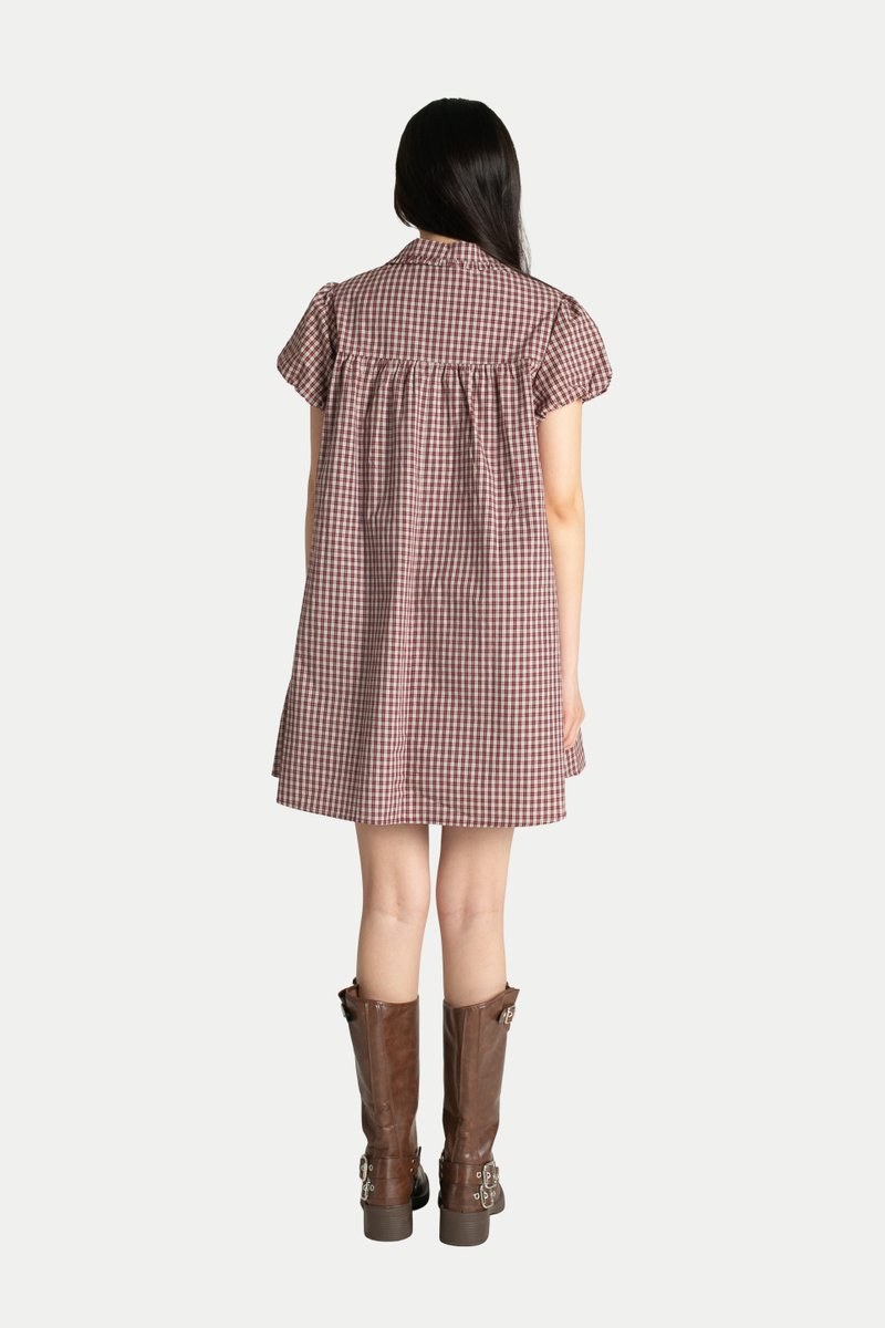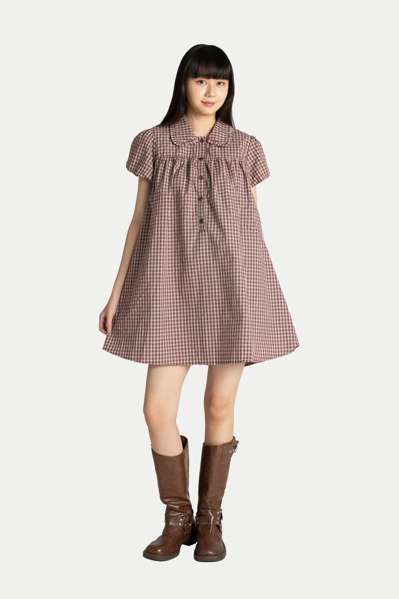 Elena Babydoll Romper Dress is the perfect outfit for any occasion. Simply slip it on for an instantly adorable look. It features a round Peter Pan collar, a cute flared silhouette, and puff sleeves—perfect for a sweet day out. Designed with side pockets, inner shorts, and a front button-down closure. Fully lined.