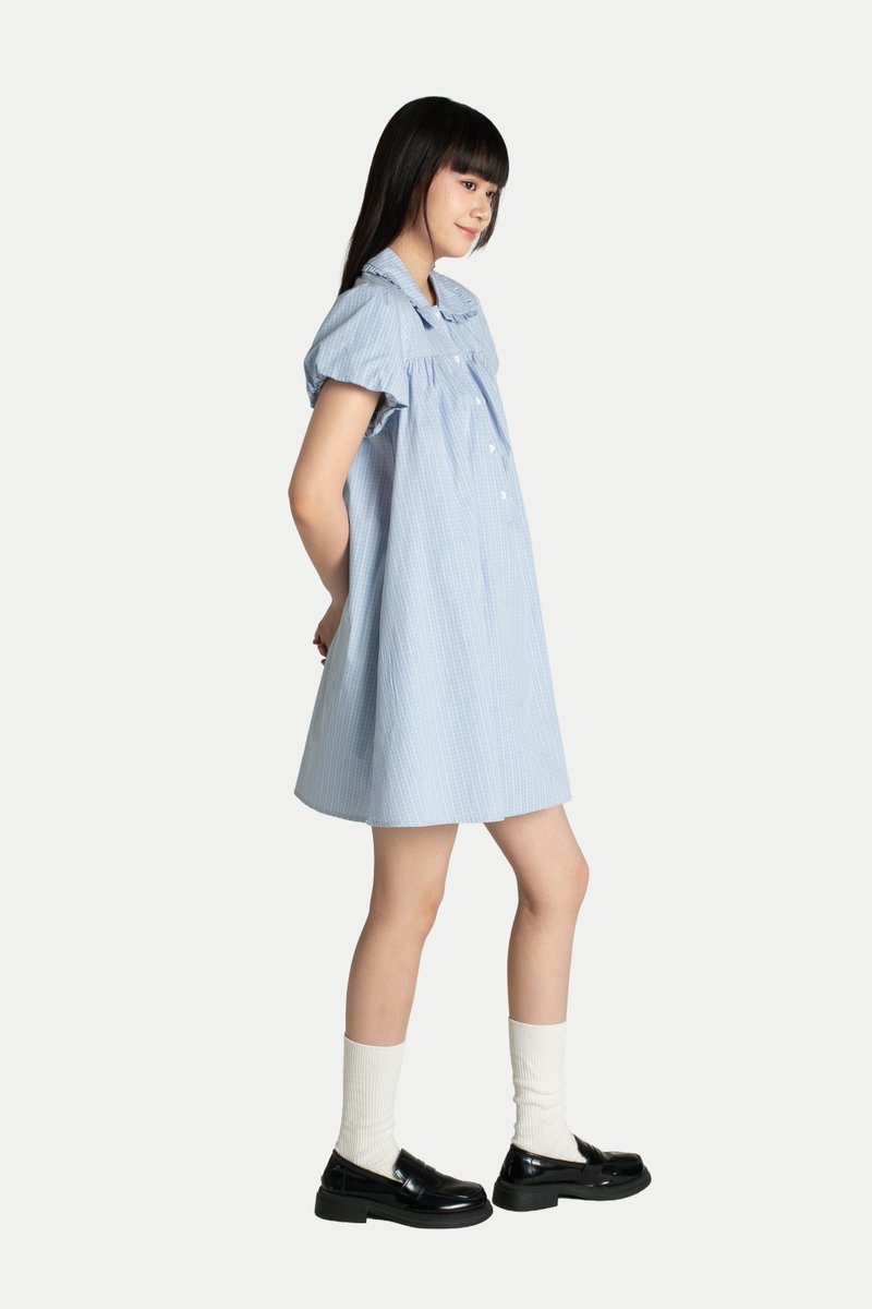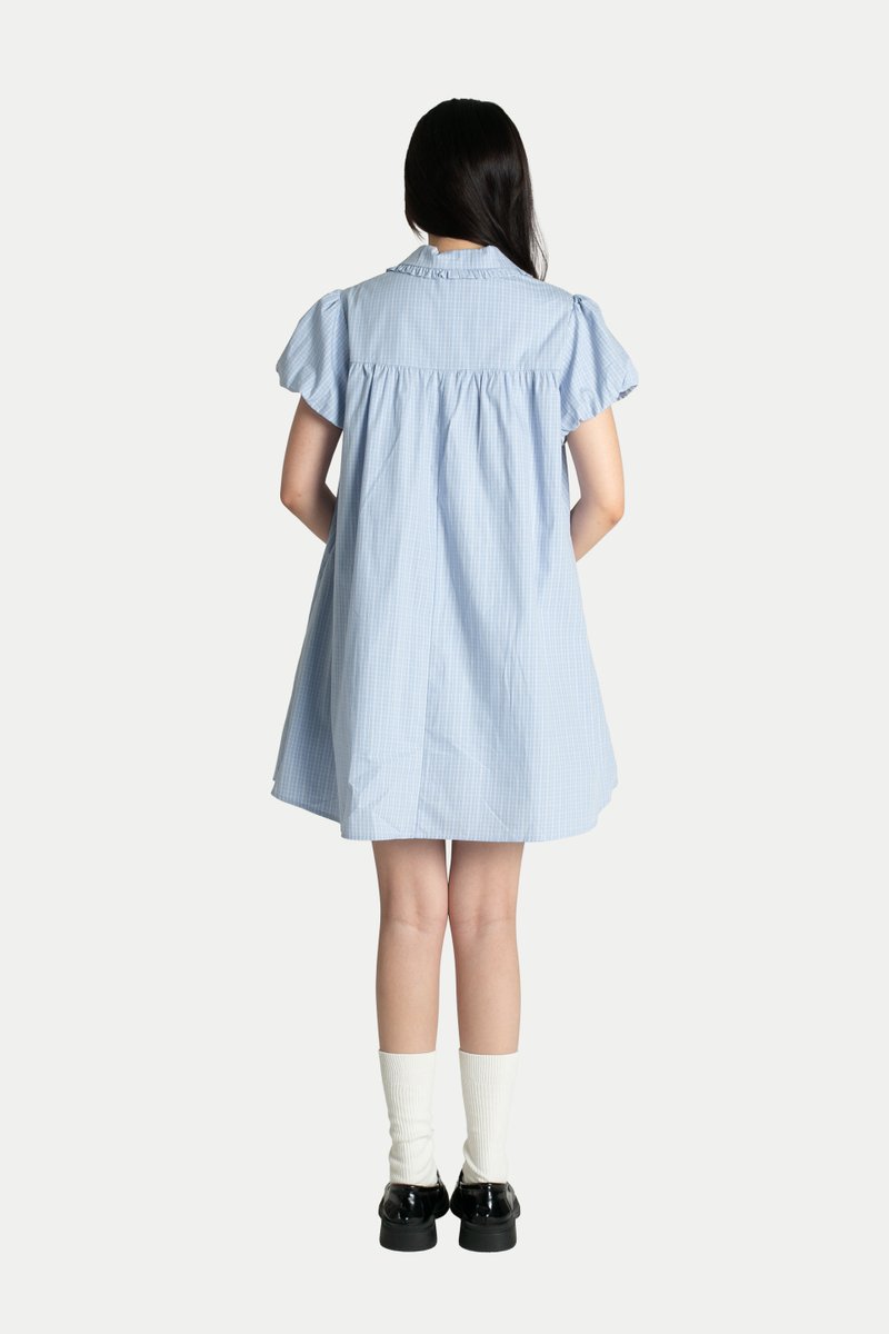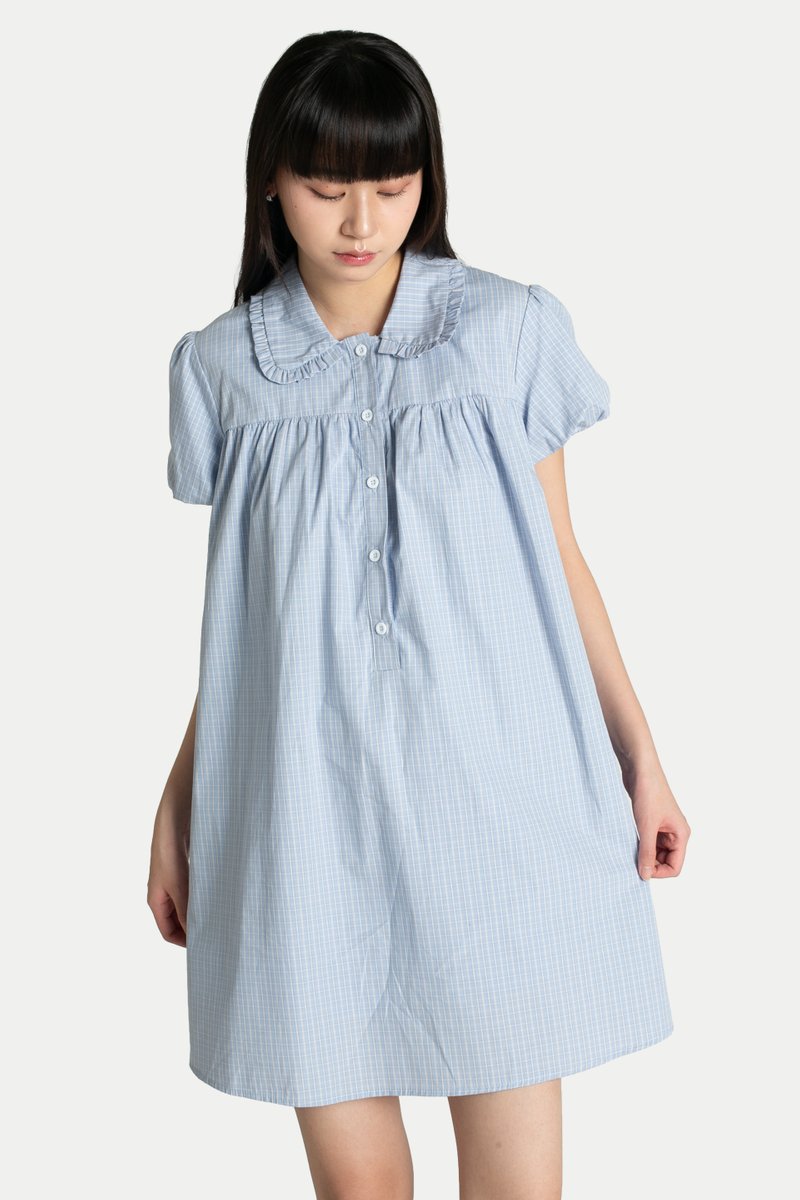 Elena Babydoll Romper Dress is the perfect outfit for any occasion. Simply slip it on for an instantly adorable look. It features a round Peter Pan collar, a cute flared silhouette, and puff sleeves—perfect for a sweet day out. Designed with side pockets, inner shorts, and a front button-down closure. Fully lined.