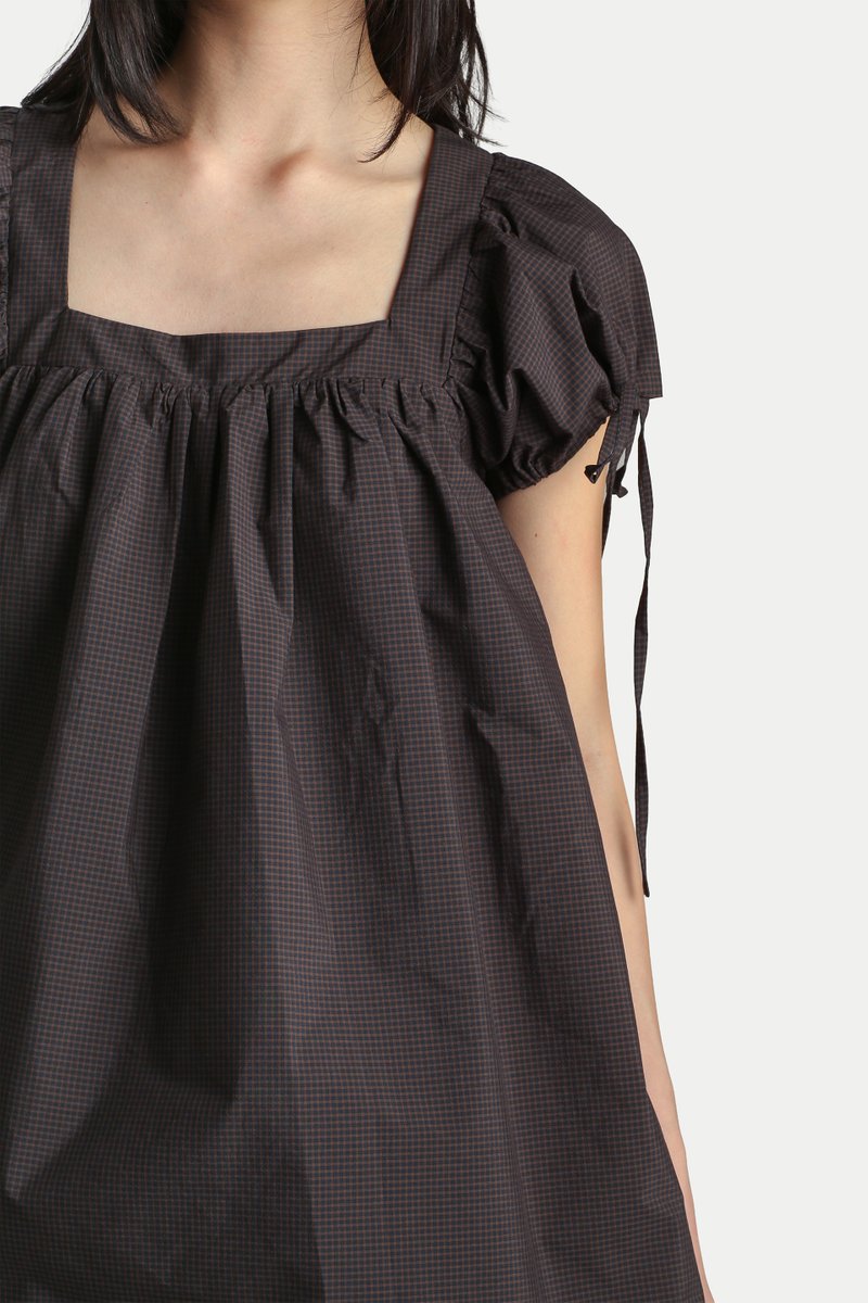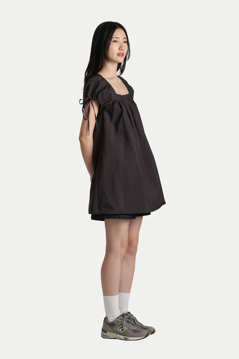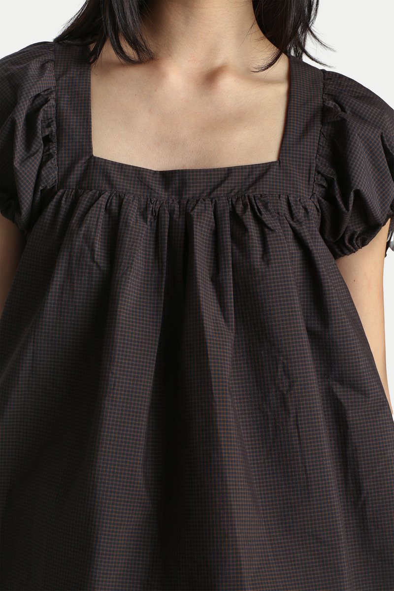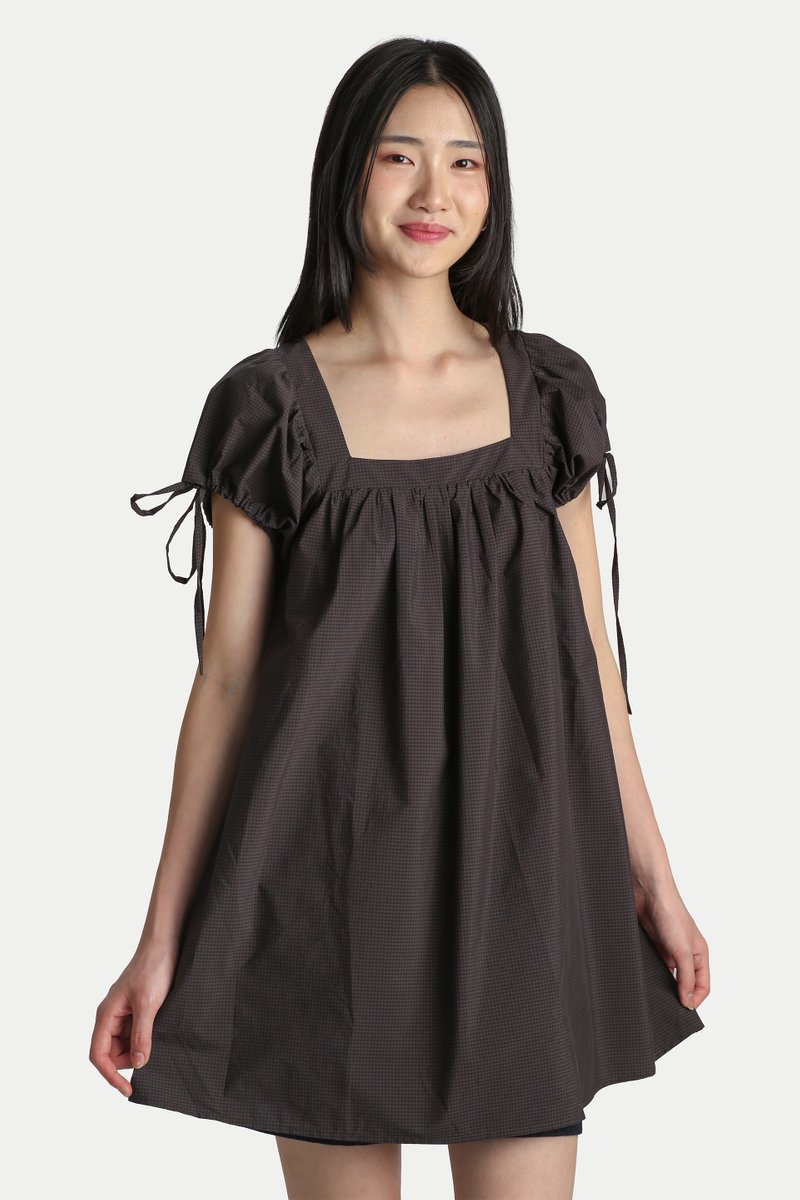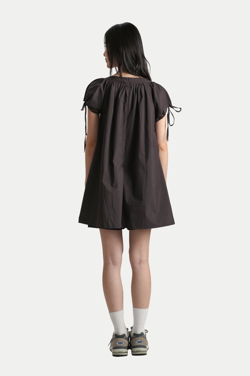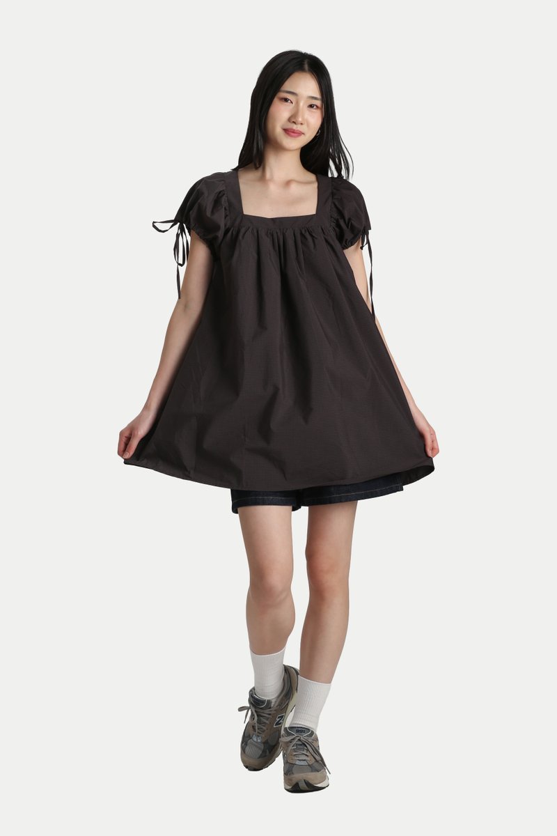 ELOISE SQUARE NECK BABYDOLL ROMPER DRESS IN BLACK CHECKS