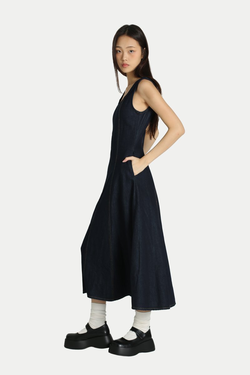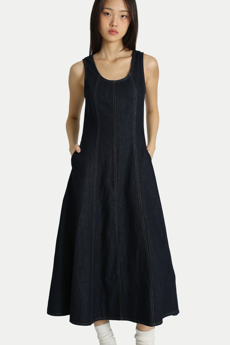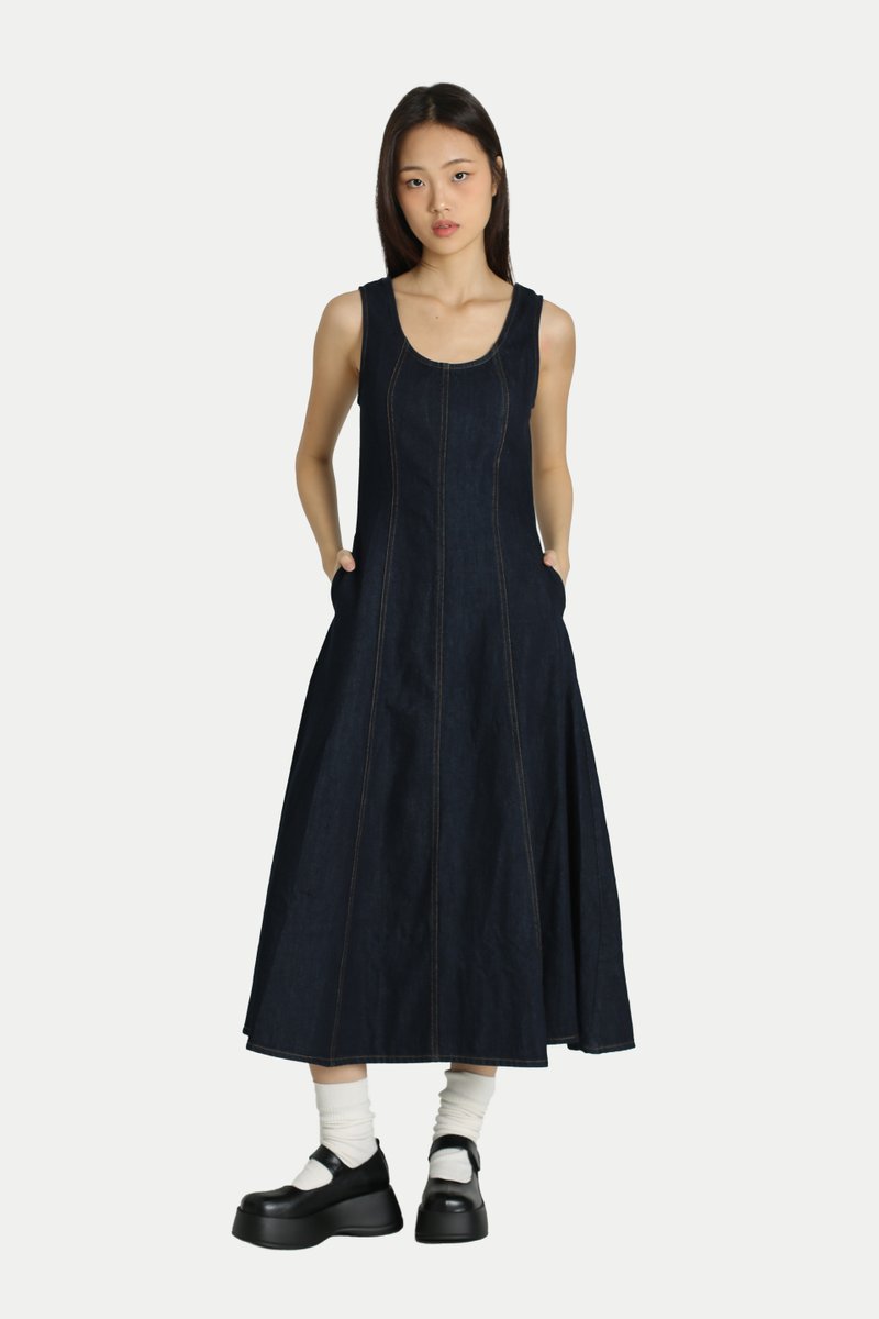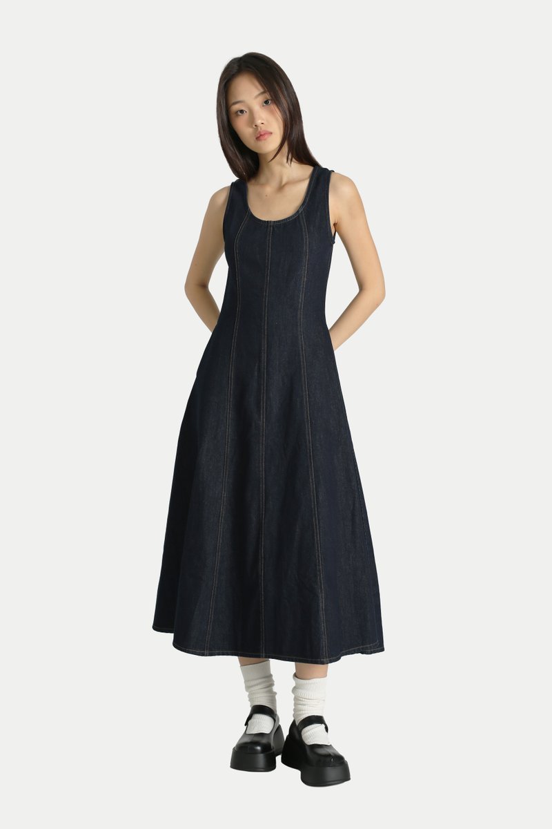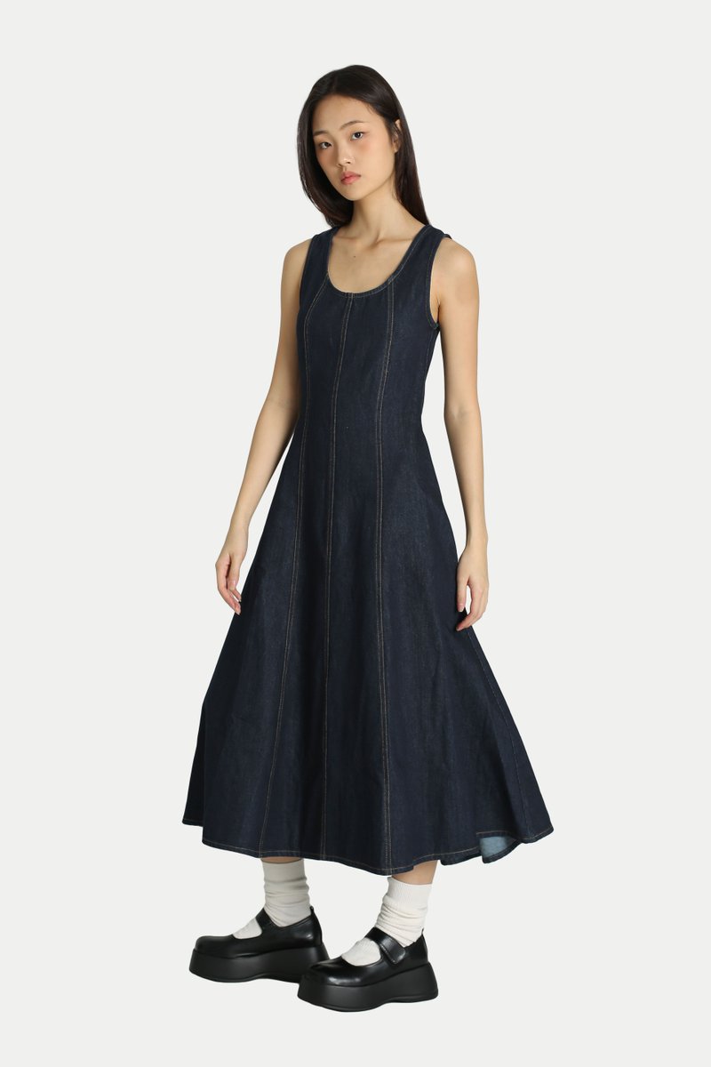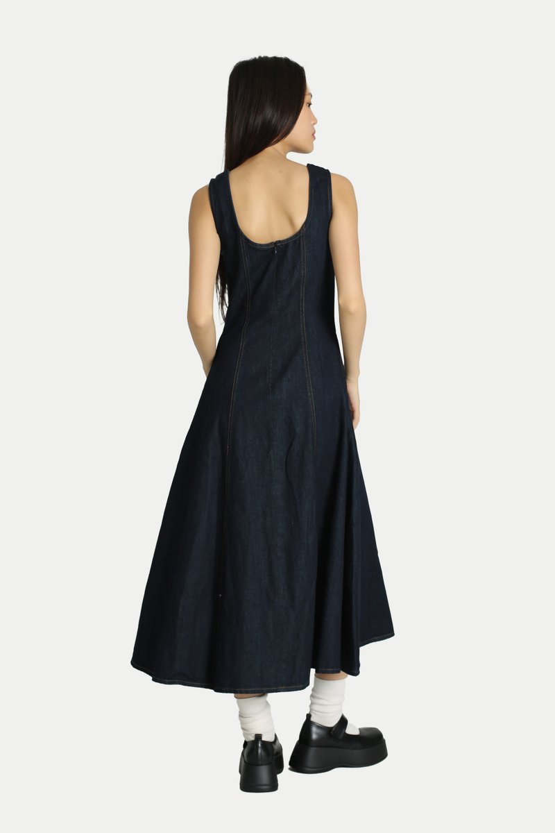 The Juliana Denim Flare Panel Dress is the perfect minimalist and elegant dress. It features panel detailing and a dramatic flare that creates a flattering, slender silhouette. Cut from comfortable and breathable denim, the dress offers beautiful structure while remaining easy to wear. Perfect for both work and casual errands. Designed with side pockets and a concealed back zipper. Unlined
