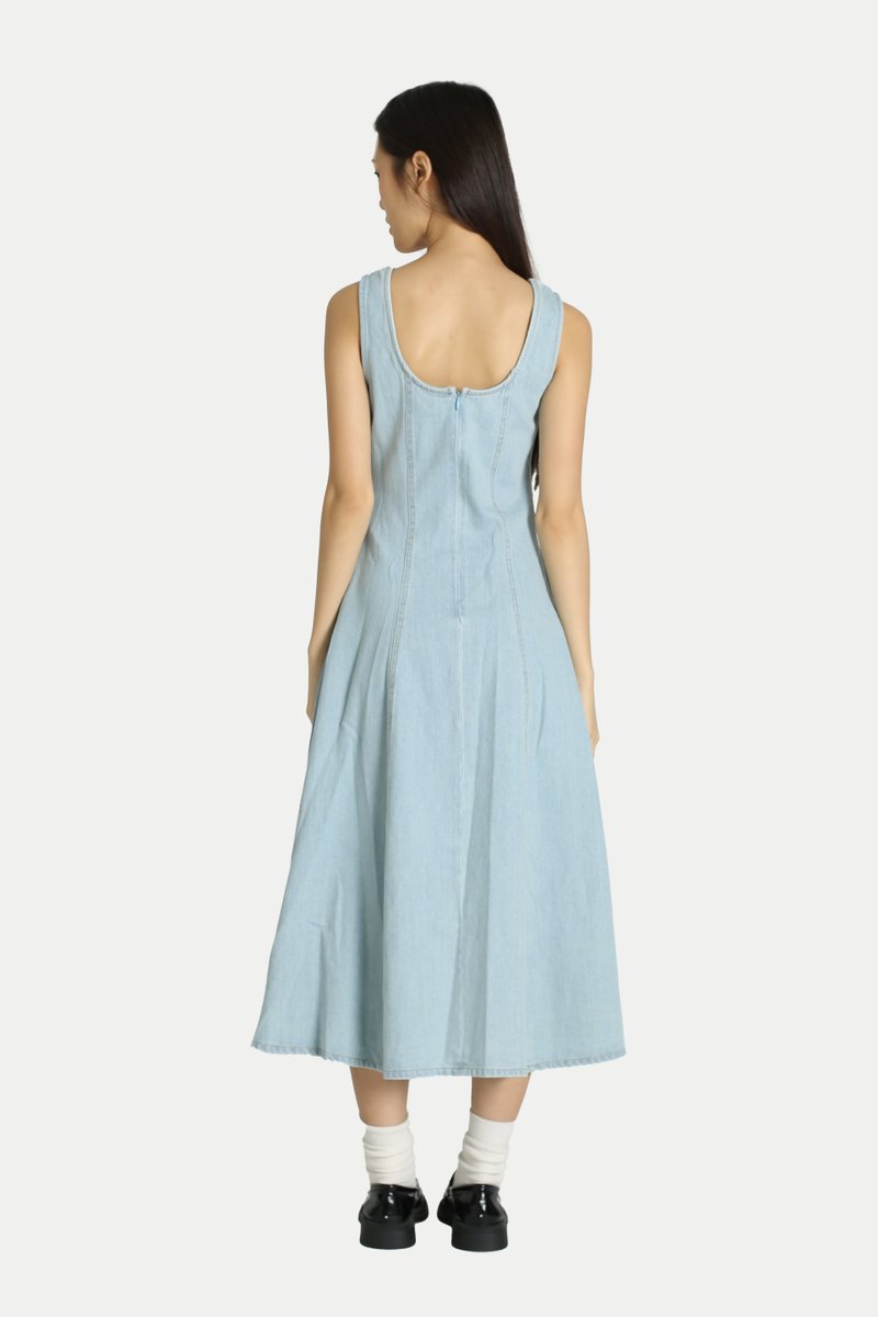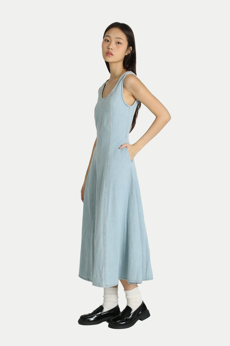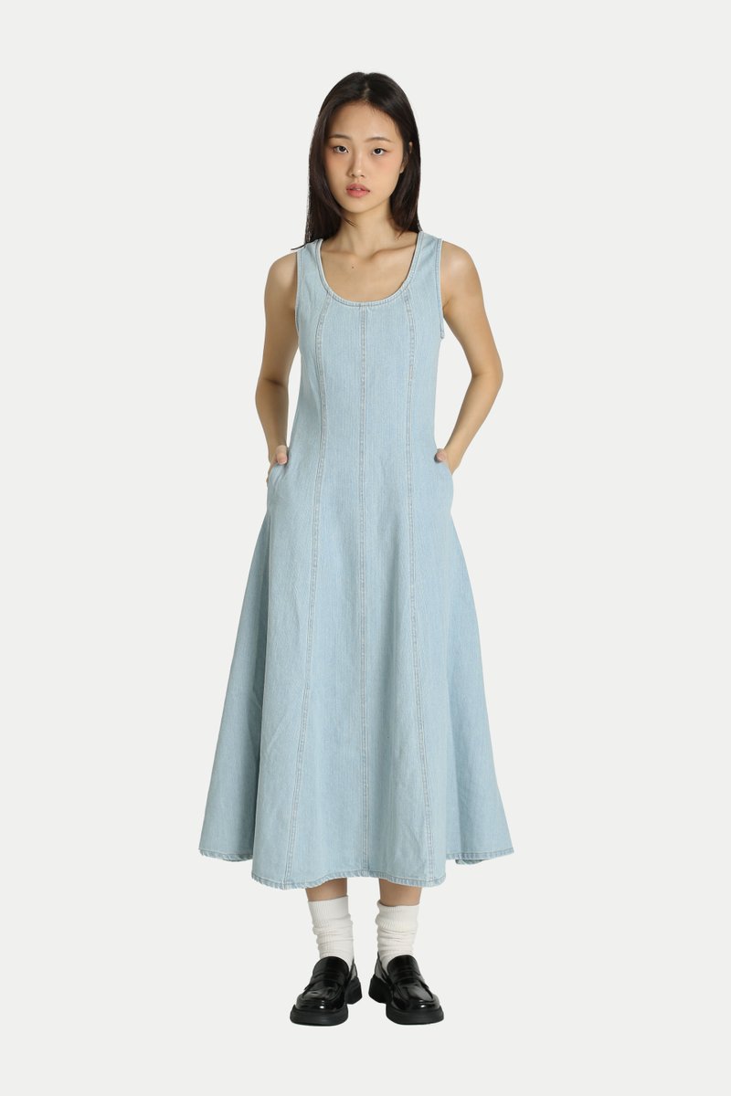 JULIANA DENIM FLARE PANEL DRESS IN LIGHT WASH
