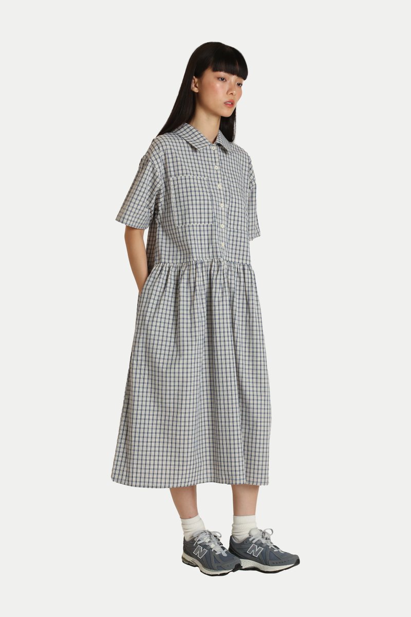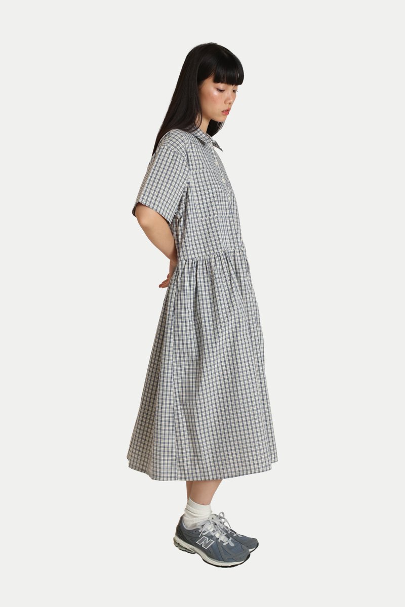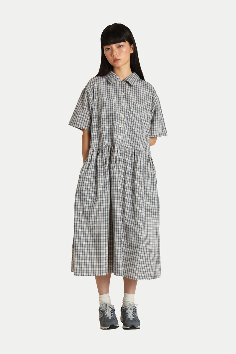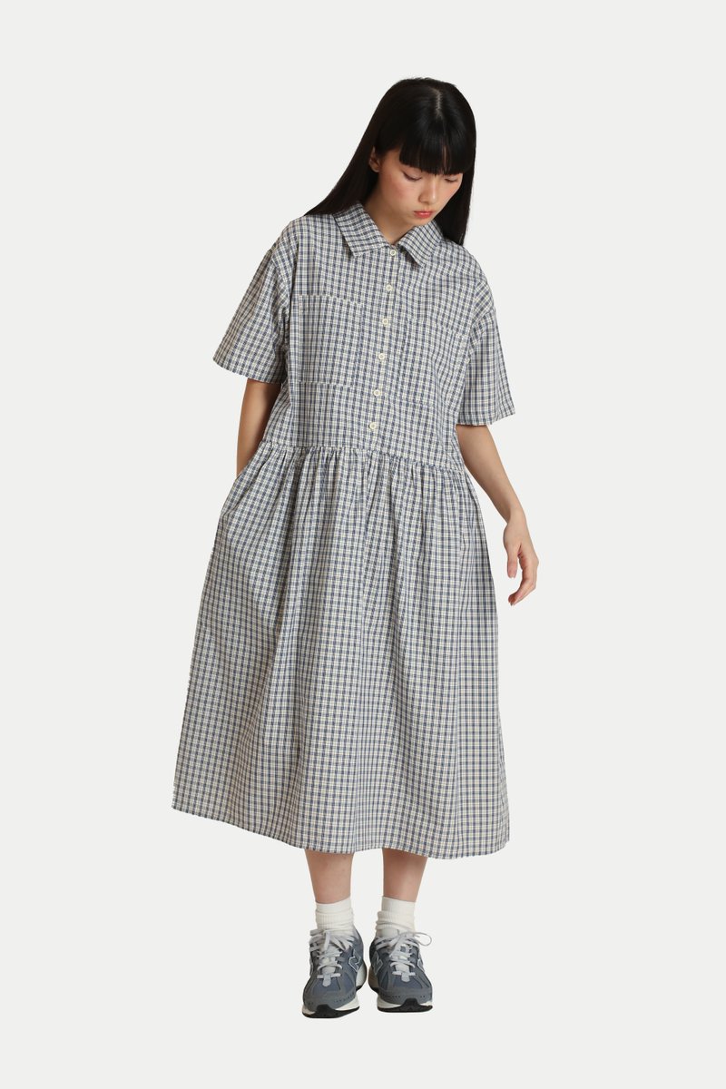 OMRI CHECKERED OVERSIZED BOXY DRESS IN CREAM