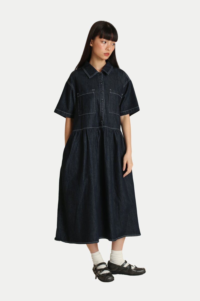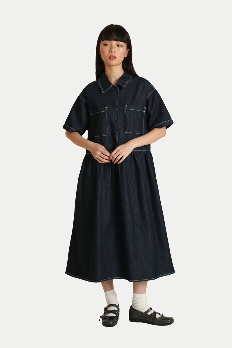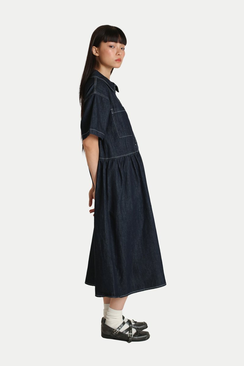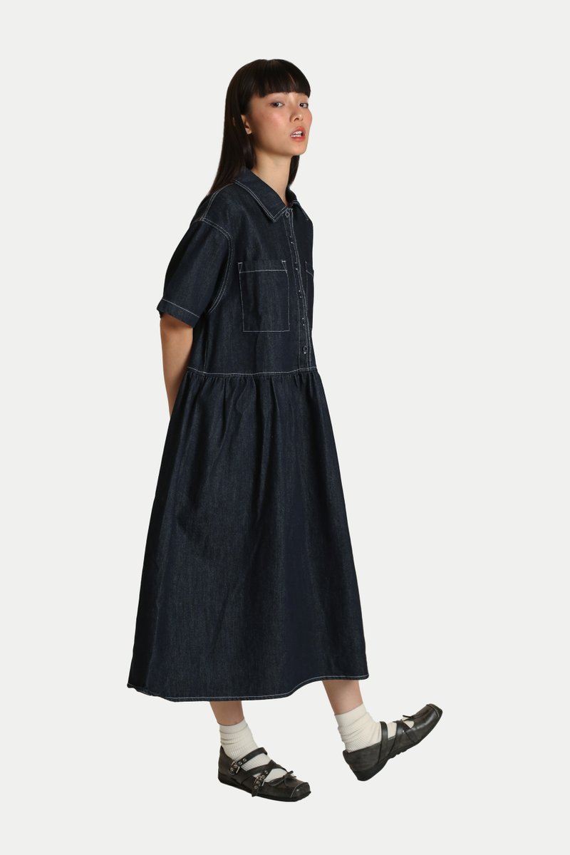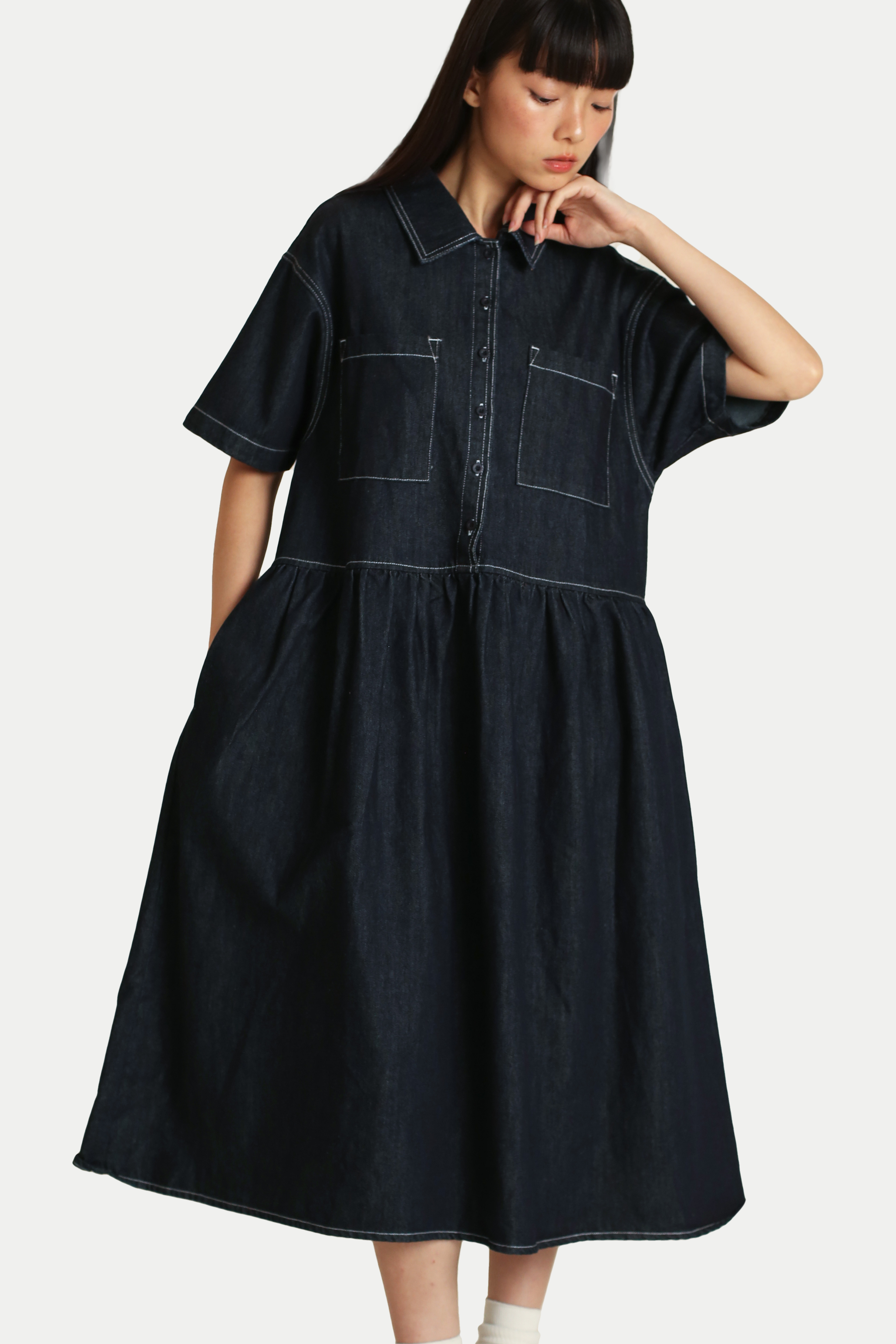 OMRI DENIM OVERSIZED BOXY DRESS IN DARK WASH