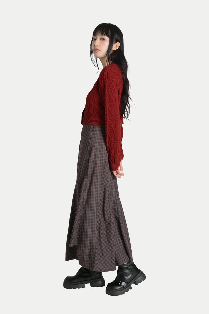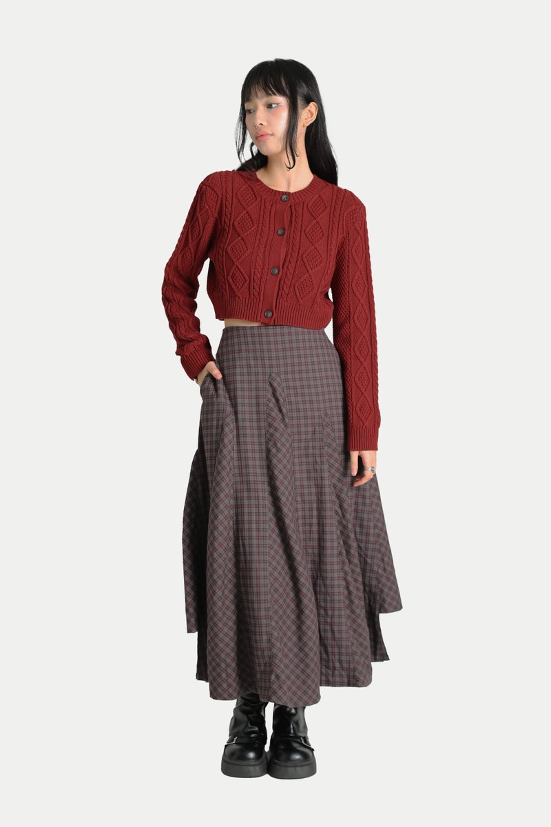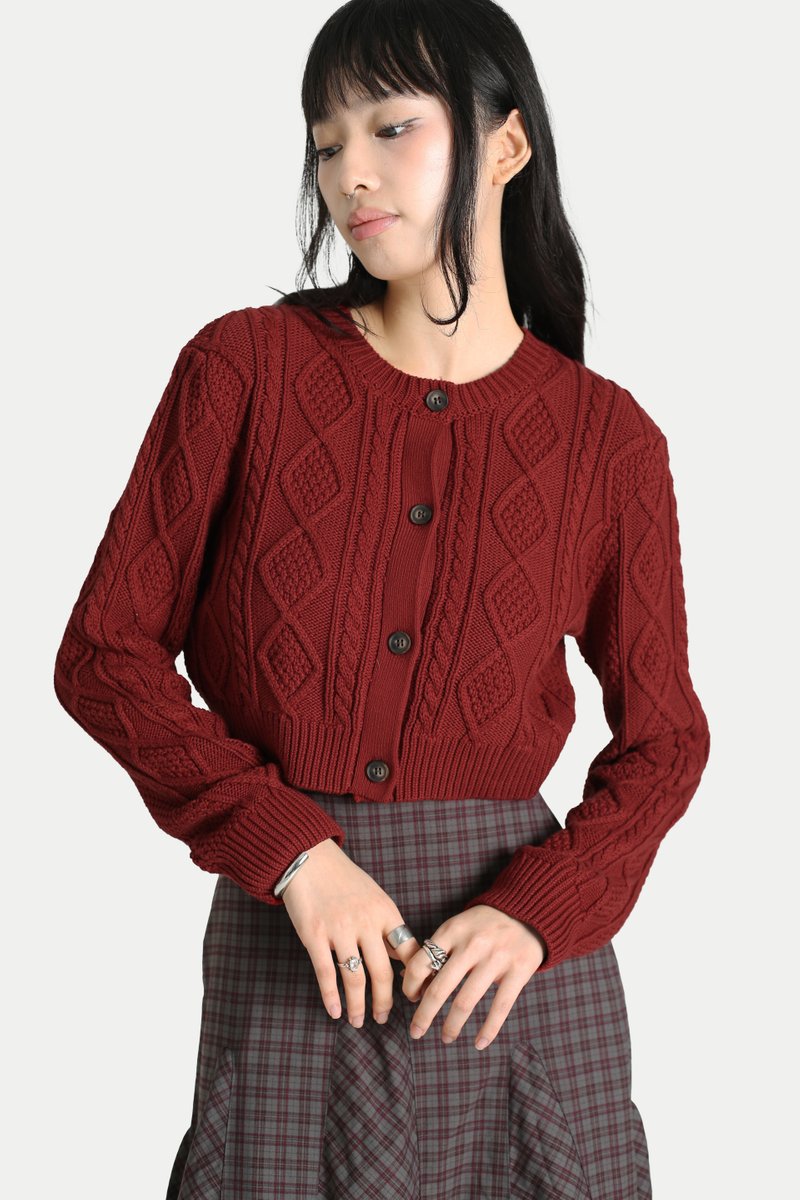MABEL CROPPED CABLE KNIT CARDIGAN IN CRANBERRY