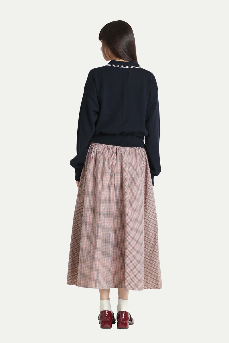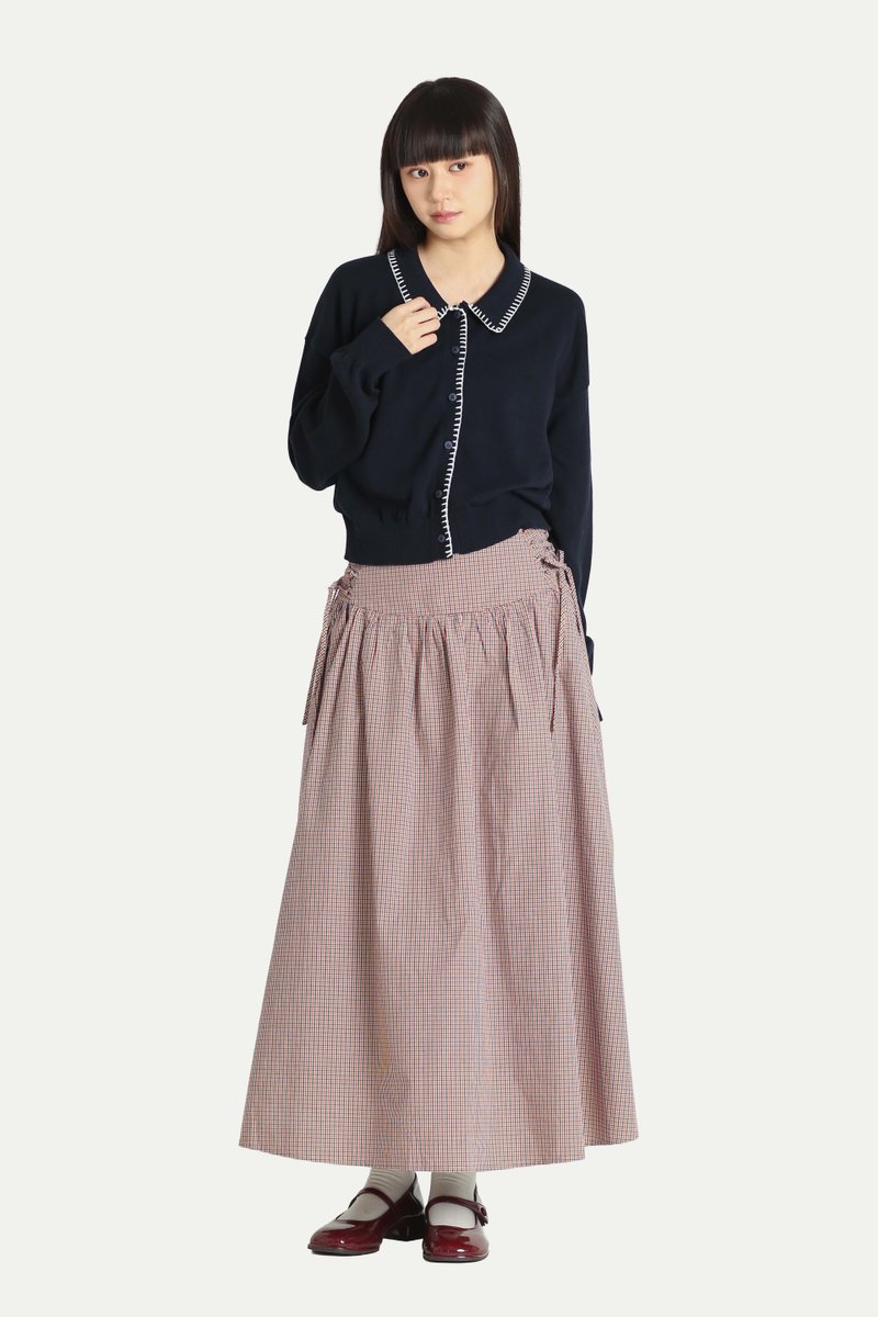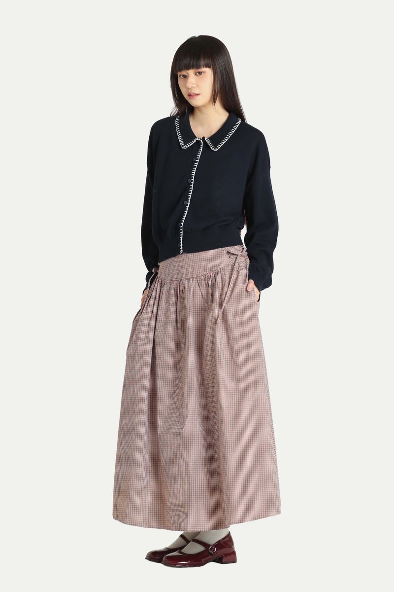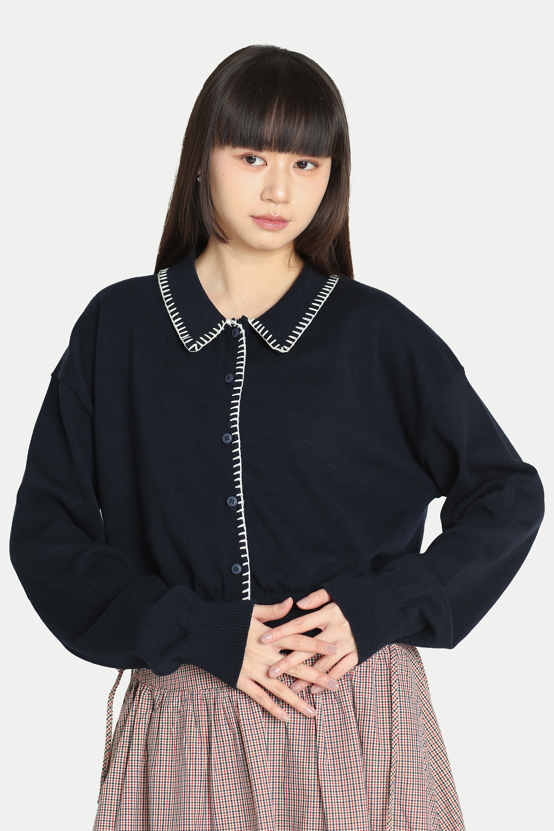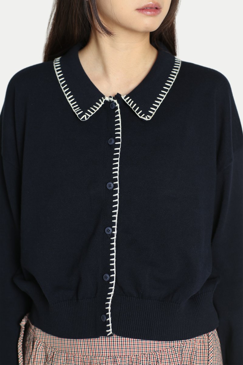 PAISLEY KNITTED CONTRAST STITCH CARDIGAN IN NAVY