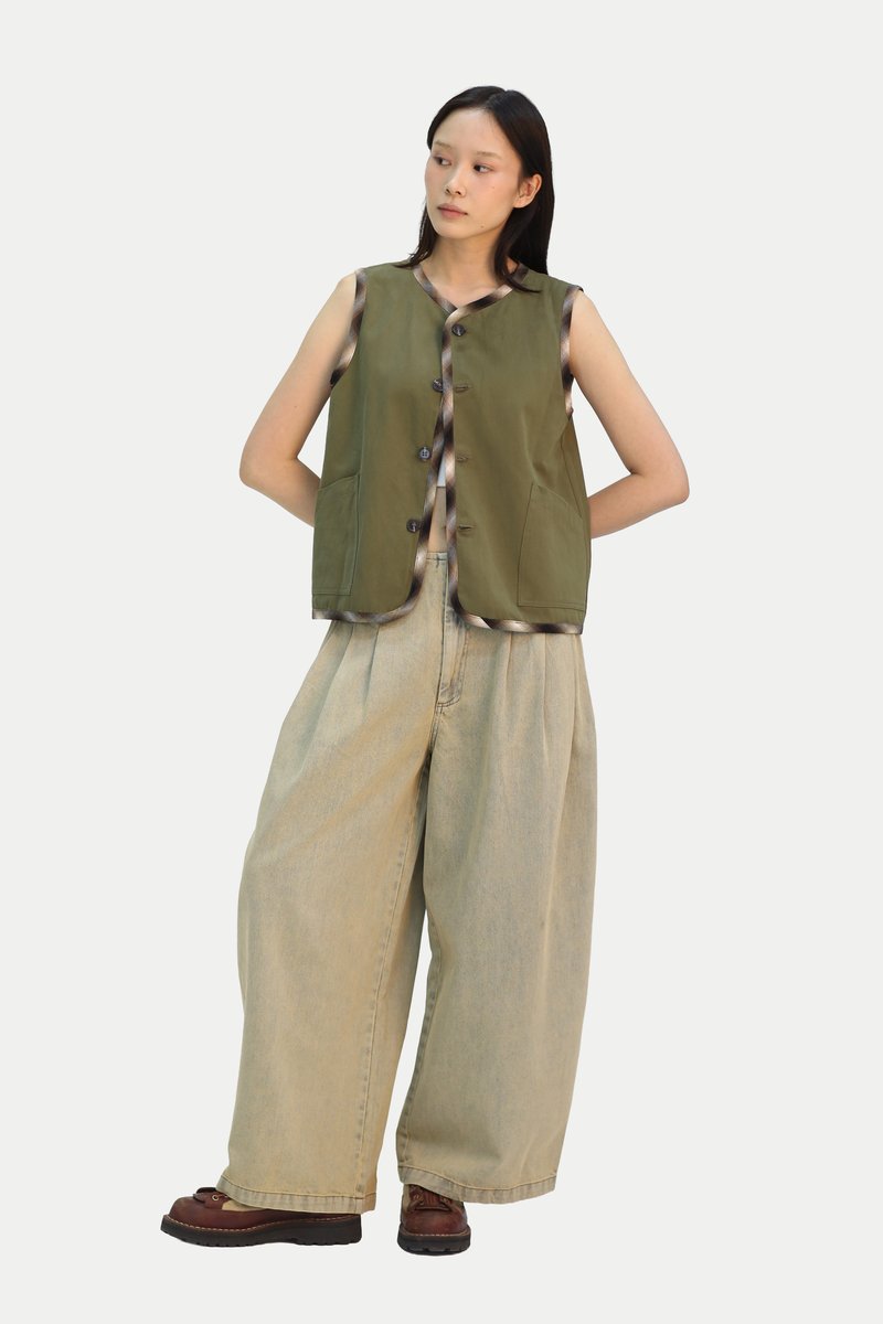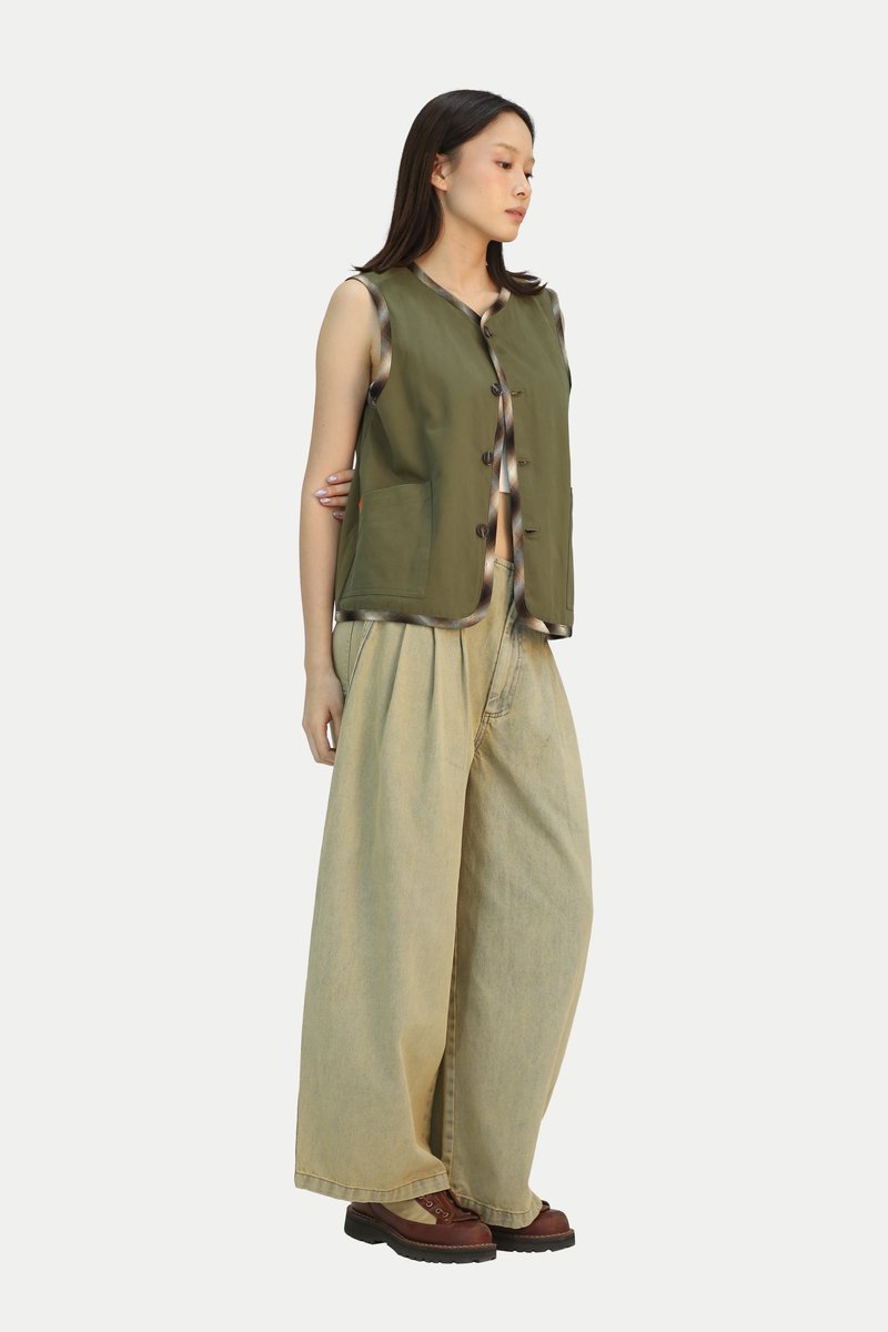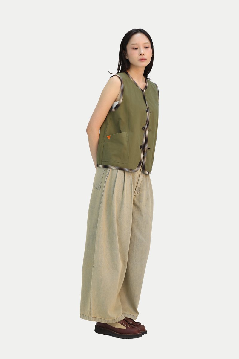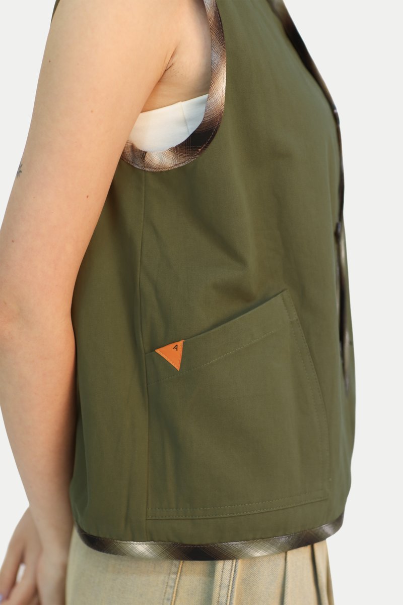 Looking for a fun piece to add to your wardrobe? Our Risa Reversible Boxy Vest is a playful yet timeless staple. One side features a lively pattern that adds a pop of interest to your look, while the reverse showcases a solid colour for a more classic and easy to style option. Designed with practicality in mind, the vest includes welt pockets on one side and patch pockets on the other, making it fully functional whichever way you choose to wear it. The boxy cut offers a relaxed and comfortable fit that is easy to throw on. Pair it with a midi skirt for a cute Japanese inspired look or with jeans for a casual everyday outfit. Opens via front button down opening. Lined.