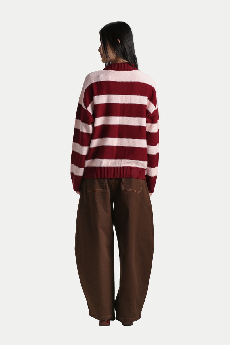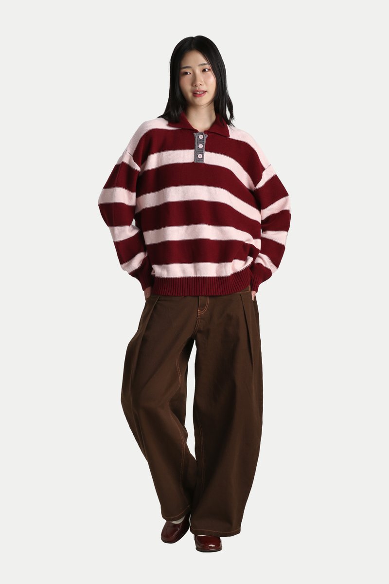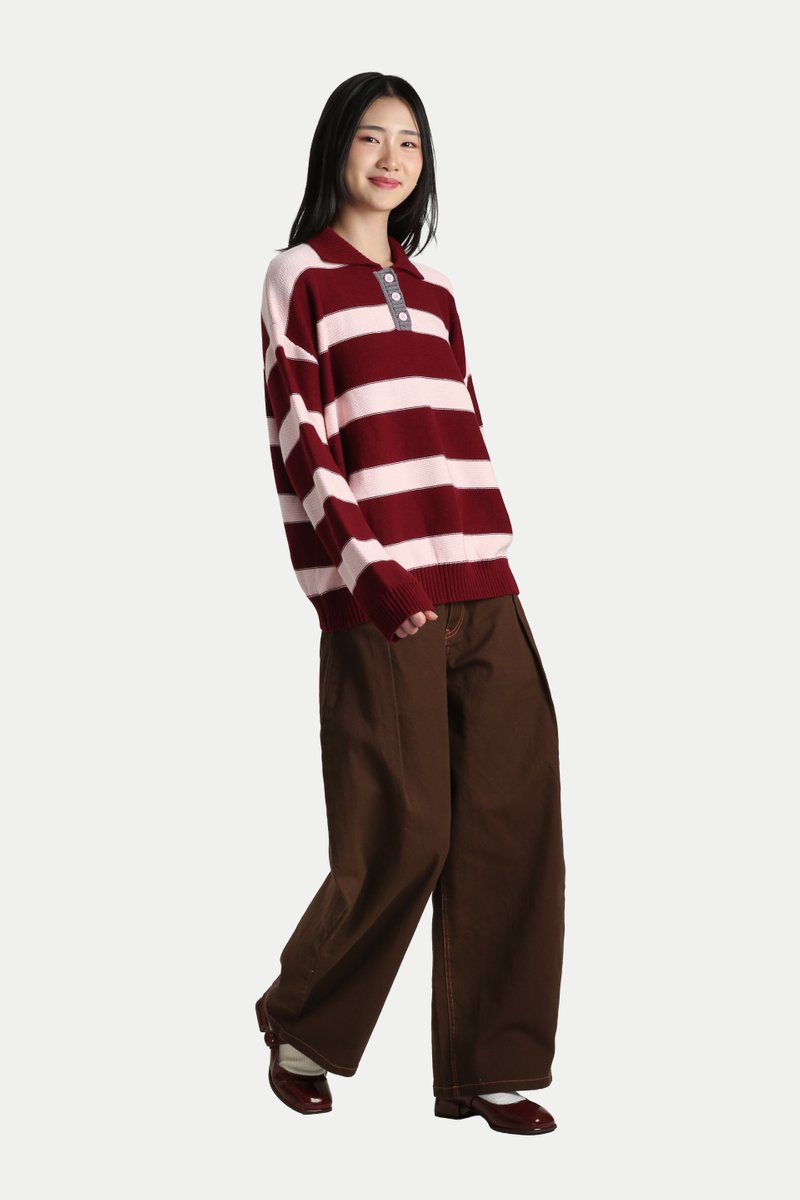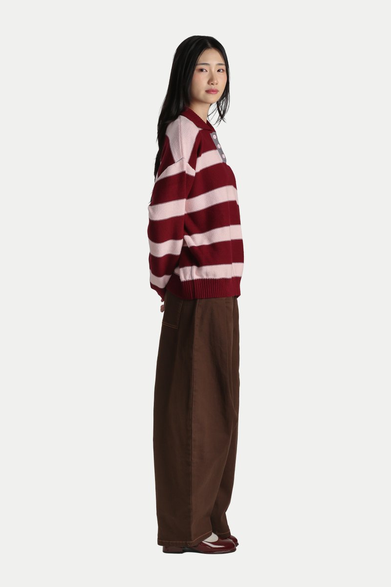 UMEKO STRIPE KNITTED POLO IN STRAWBERRY