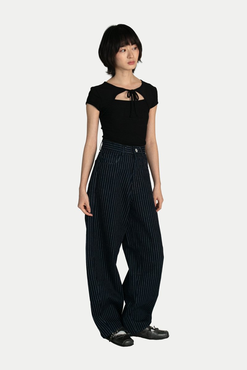 ASHTYN BARREL LEG DENIM JEANS IN DARK STRIPES