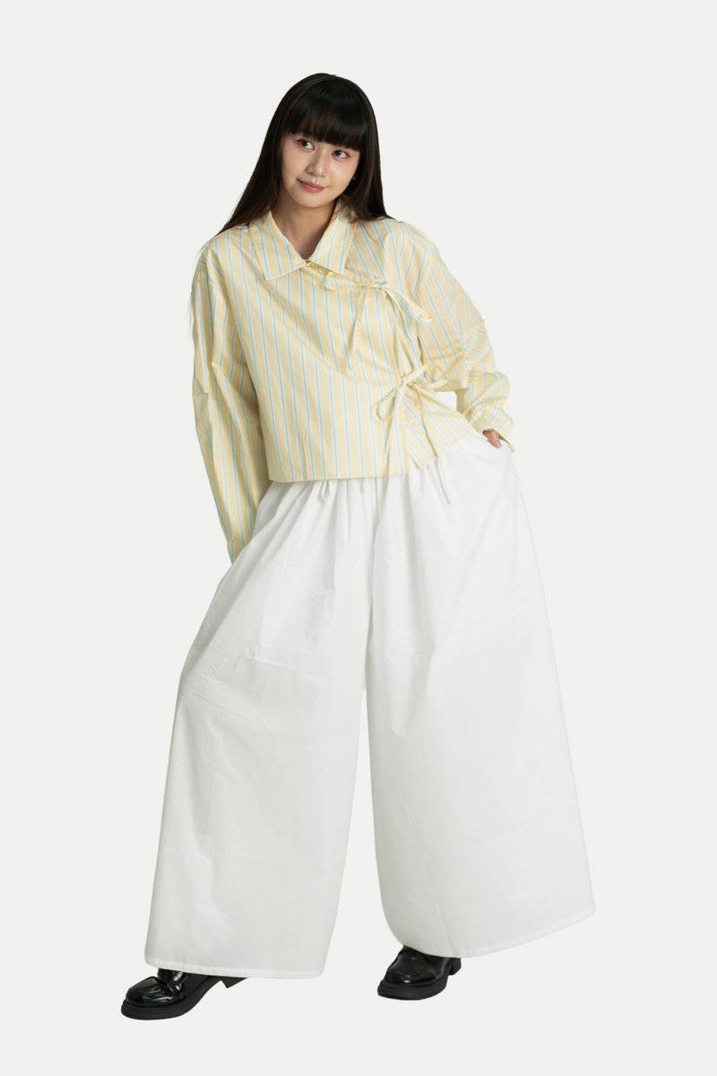 MELANY FLARE GATHER PANTS IN WHITE