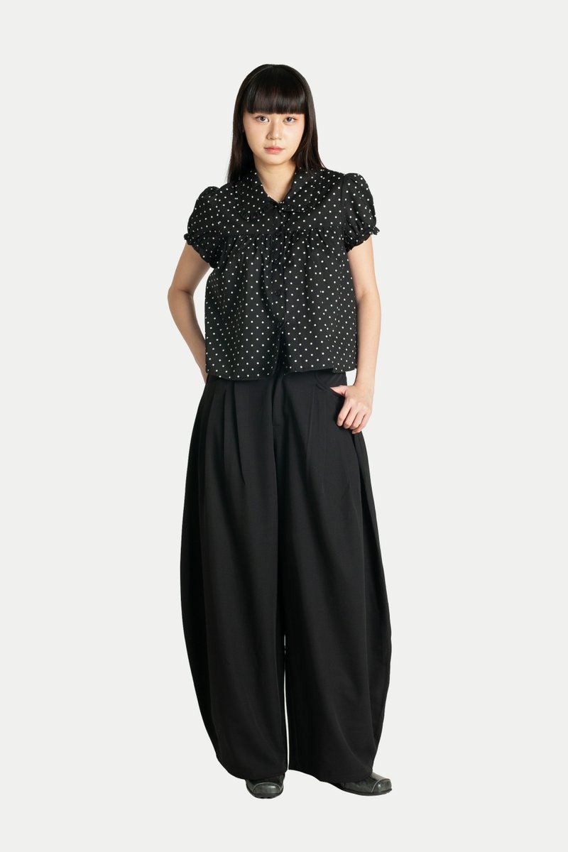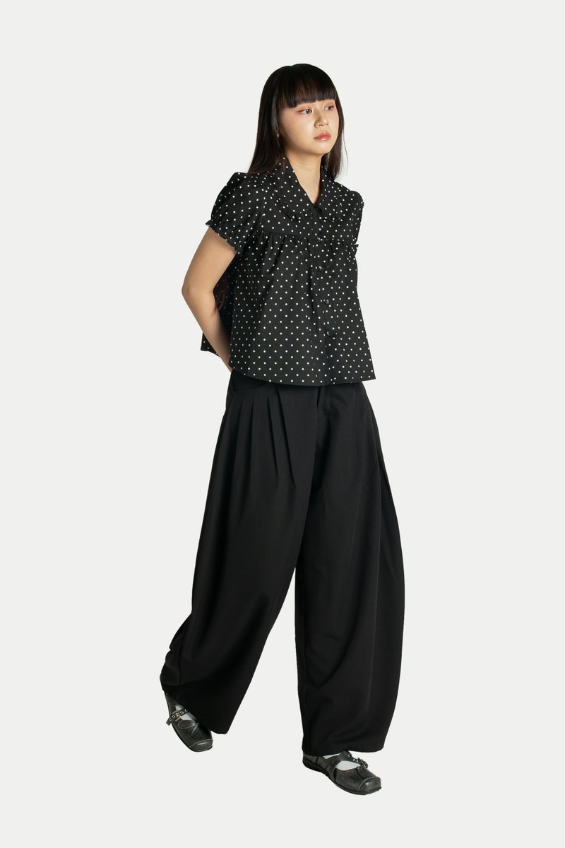 The Reiko Pleated Curved Trousers are the perfect smart-casual option. Designed with multiple pleats at the pockets and a curved-leg silhouette, they create a structured yet dramatic look. Cut from a comfortable polyester-blend suiting fabric, they’re ideal for work or everyday wear. Style them with a tank or shirt depending on the occasion. Opens with a front zipper and clasp. Unlined.