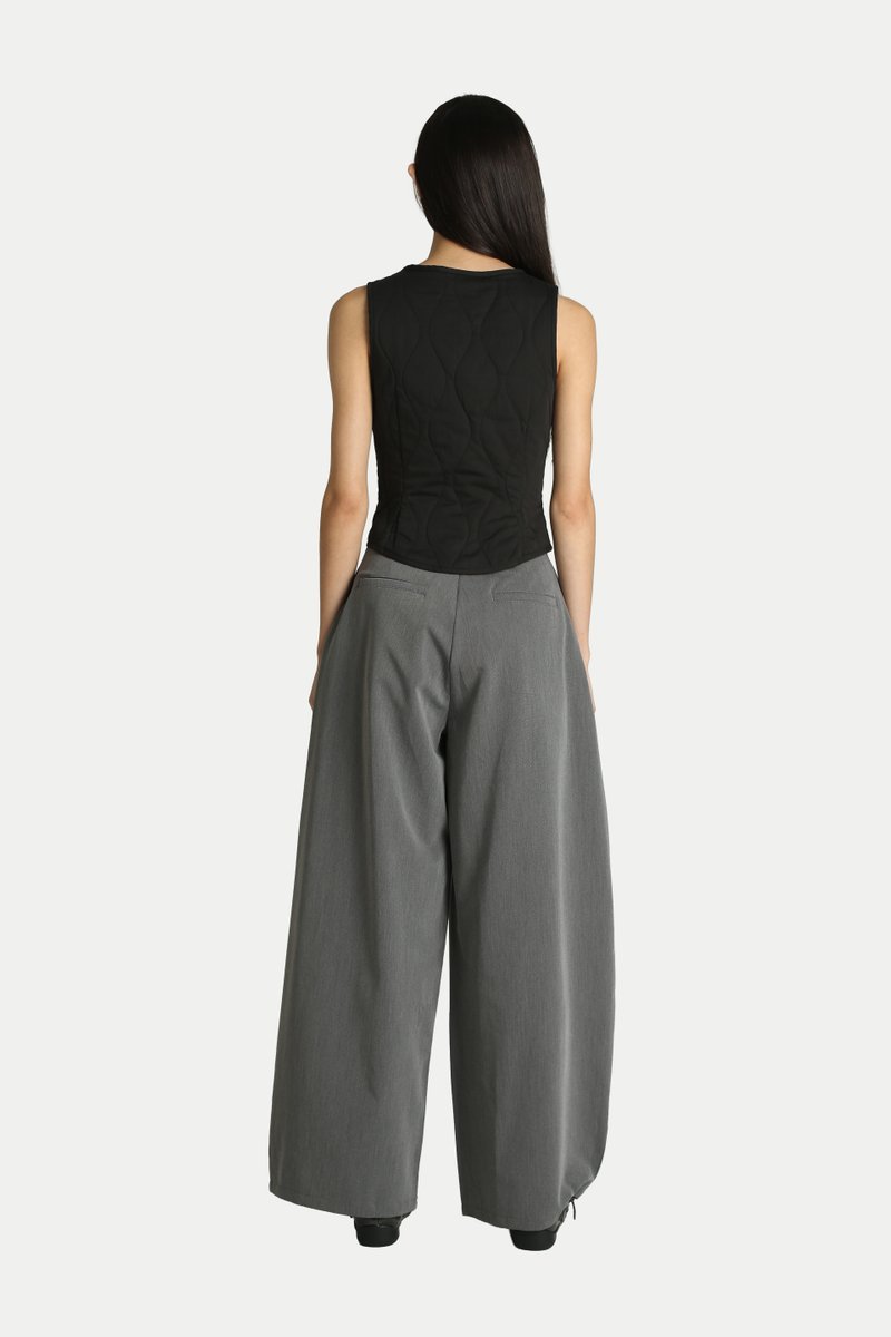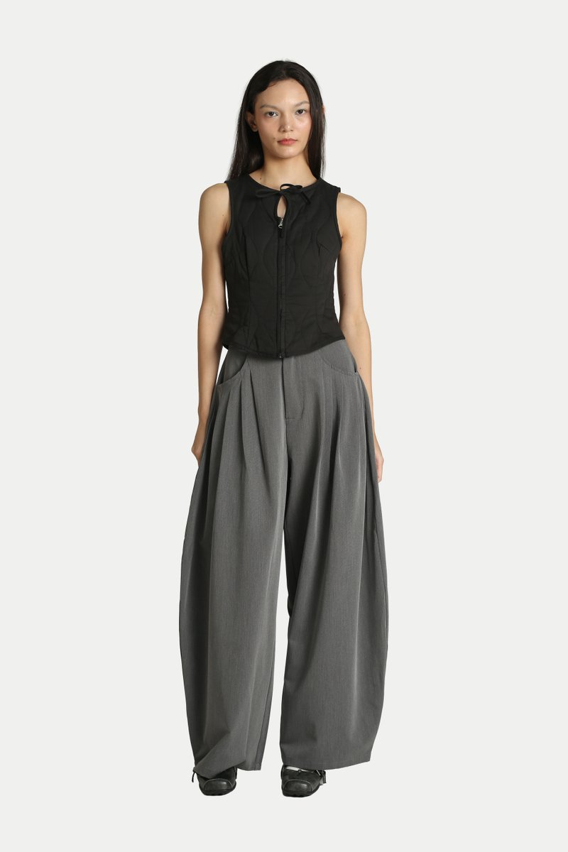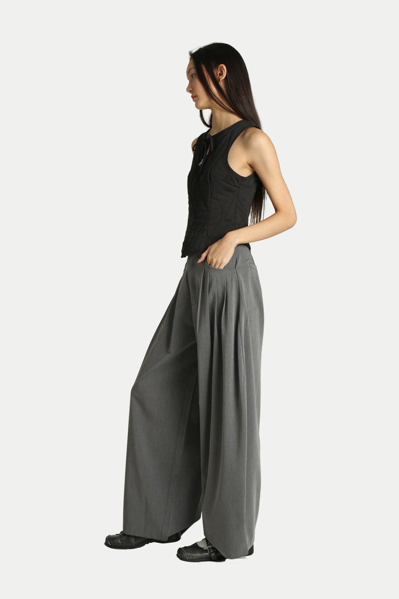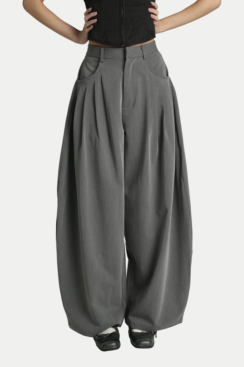 REIKO PLEATED CURVED TROUSERS IN PEBBLE