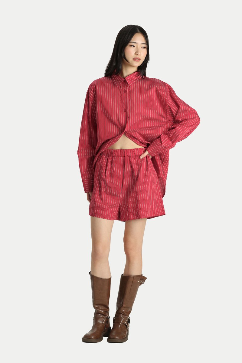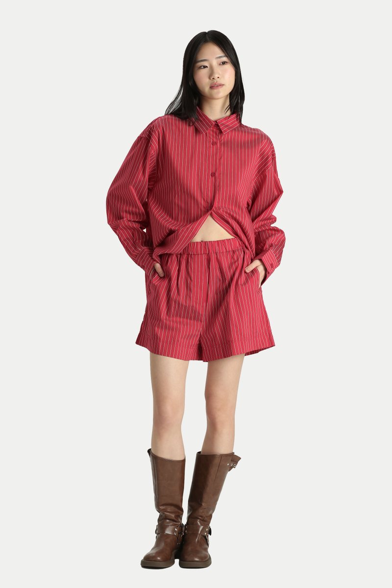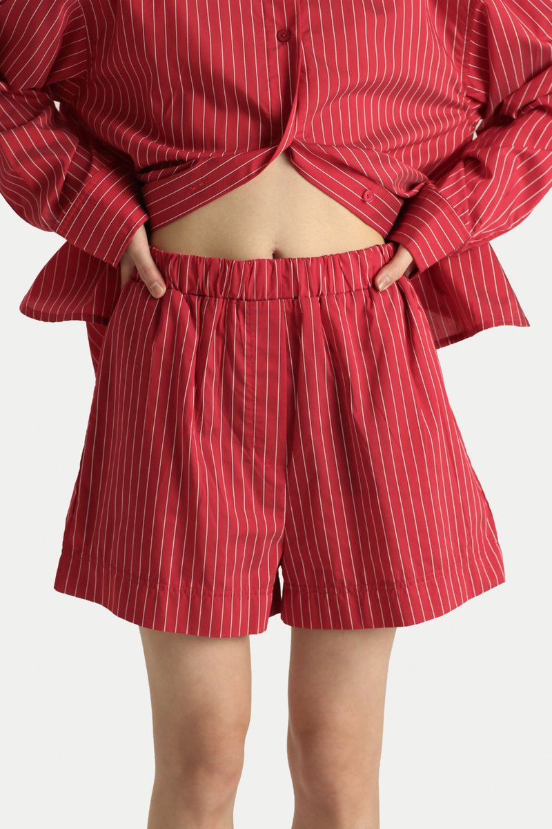 Our Ginny Oxford Boxer Shorts are the perfect blend of effortless style and comfort. Designed with an elastic waistband, a hidden adjustable drawstring, and practical side pockets, they are made for easy everyday wear. There is also a fun little surprise, a lucky patch hidden inside the shorts. Crafted from an ultra comfortable, breathable fabric, they are ideal for our sunny weather. Style them with a shirt for an easy running errands look, or pair them with your favourite tee for lounging at home. Cart it out as a matching set with our Sunny Oversized Shirt for a laid back coordinated vibe. Unlined.