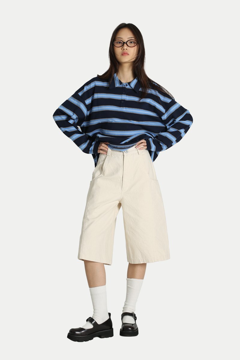 RENJI LONGLINE BASKETWEAVE JORTS IN ECRU