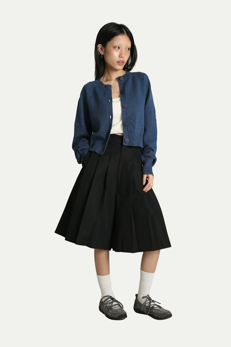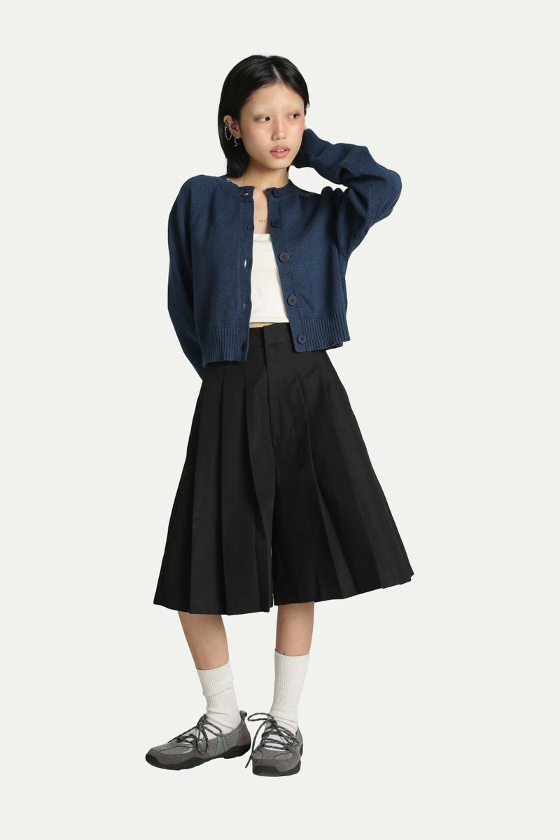 YUTO PLEATED HAKAMA BERMUDAS IN BLACK