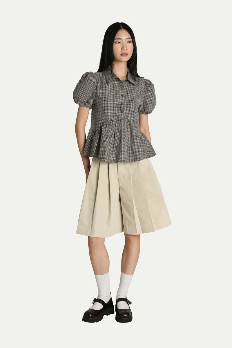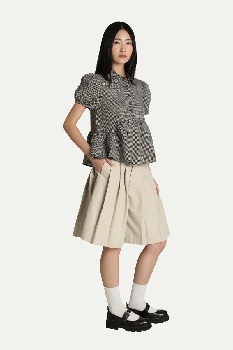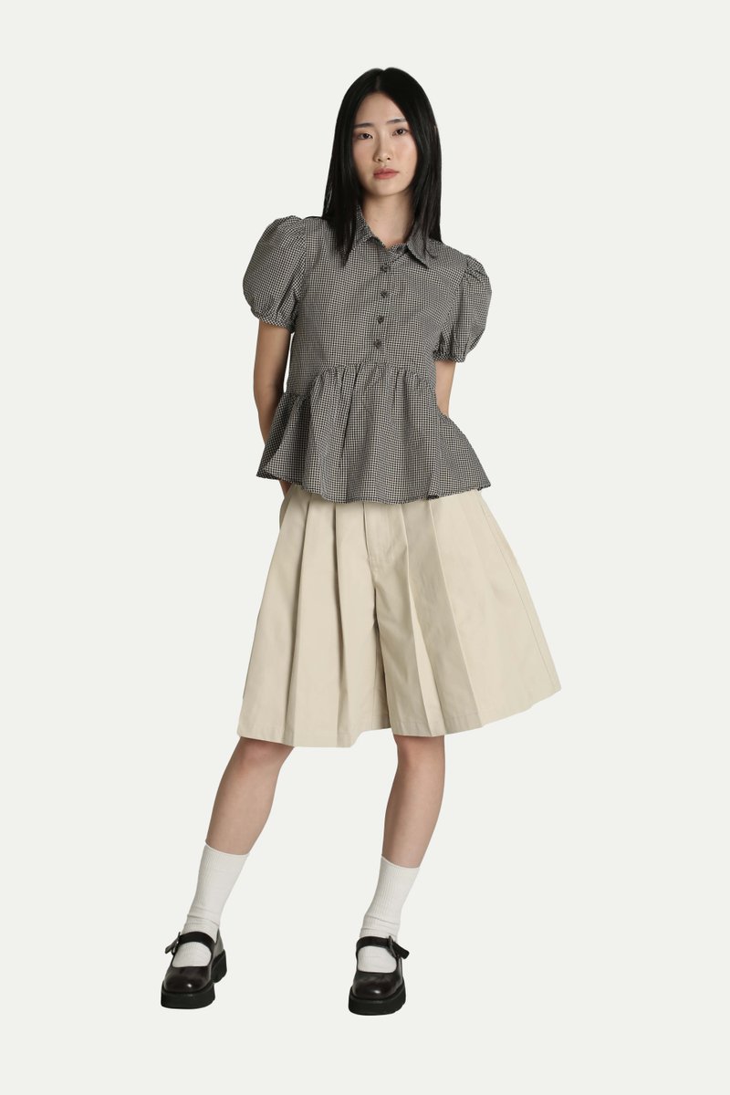 YUTO PLEATED HAKAMA BERMUDAS IN BONE
