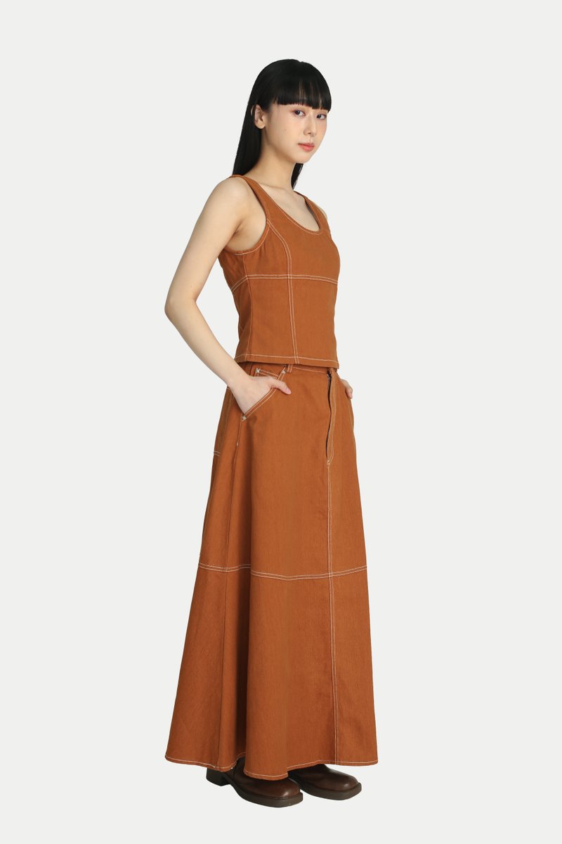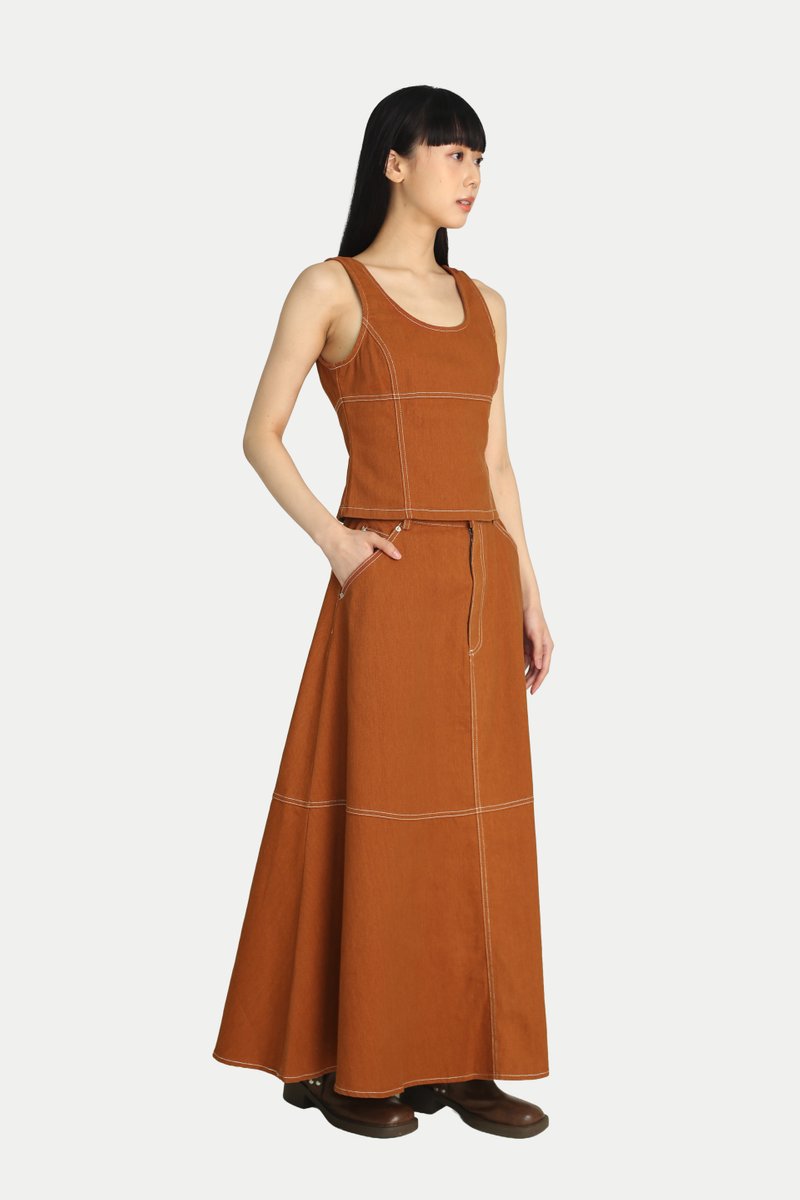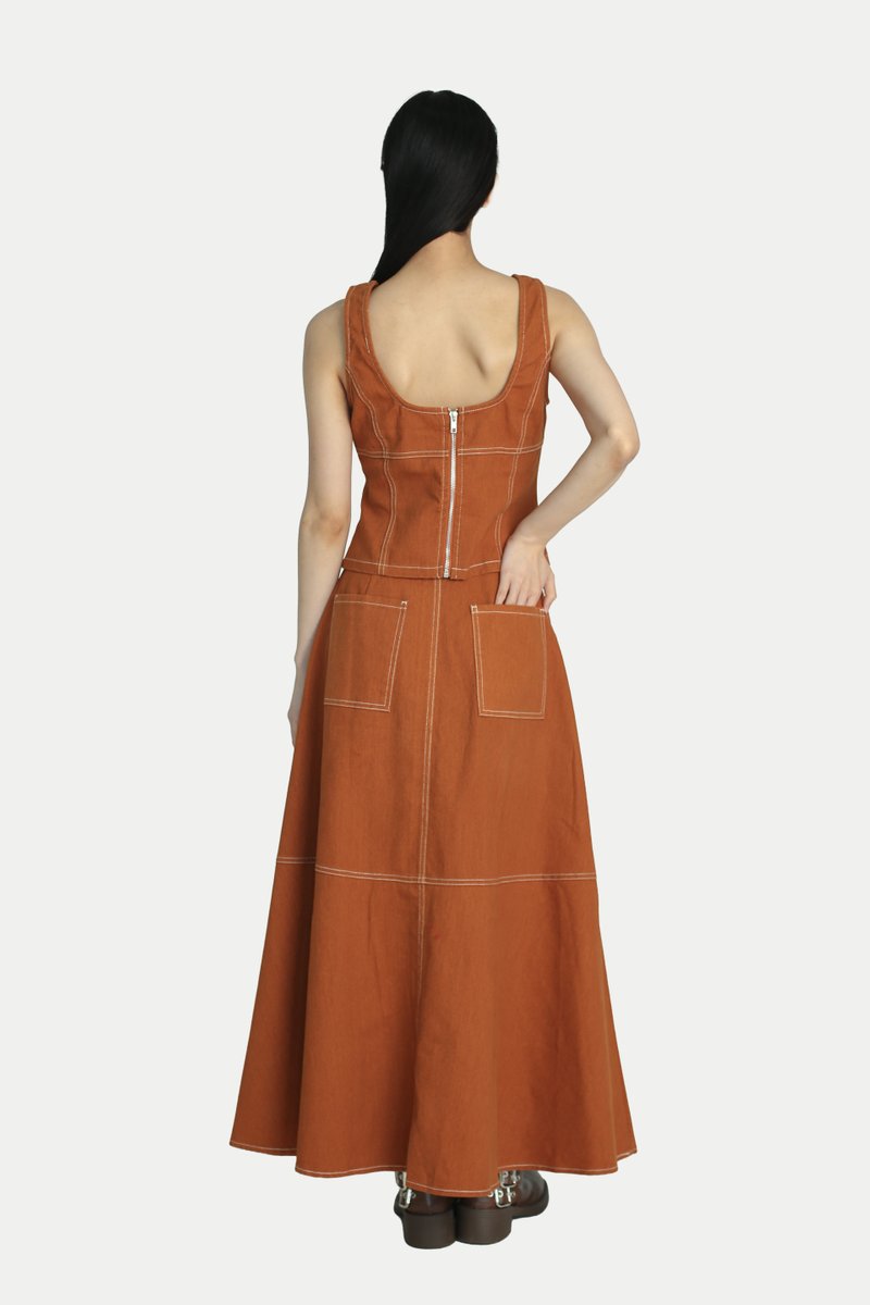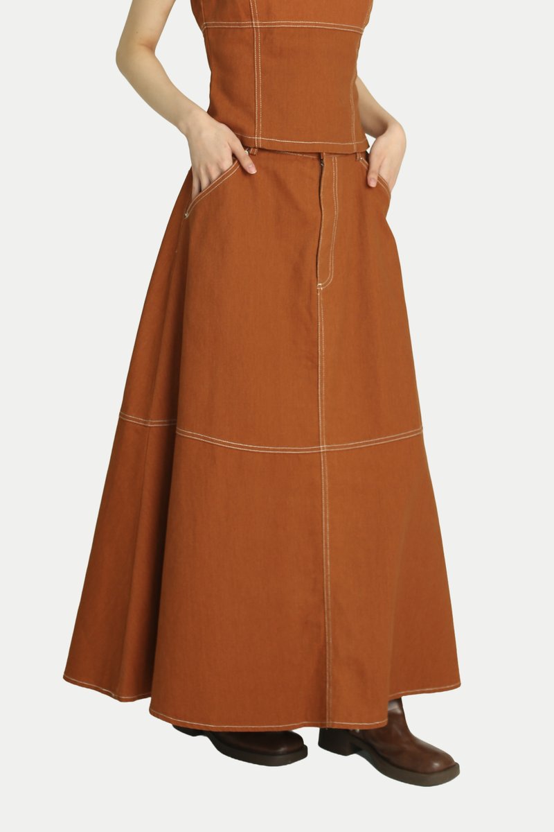 Our Jaden Denim Flare Skirt is the perfect everyday staple. It features a beautiful A line flare that creates a graceful flow, with panelled detailing that adds a subtle touch of sophistication. Style it with our Jace Denim Slim Fit Top for a complete set, or pair it with an oversized shirt for a Japanese workwear inspired look.Comes with side pockets and back pockets. Opens via front button and zipper. Unlined.