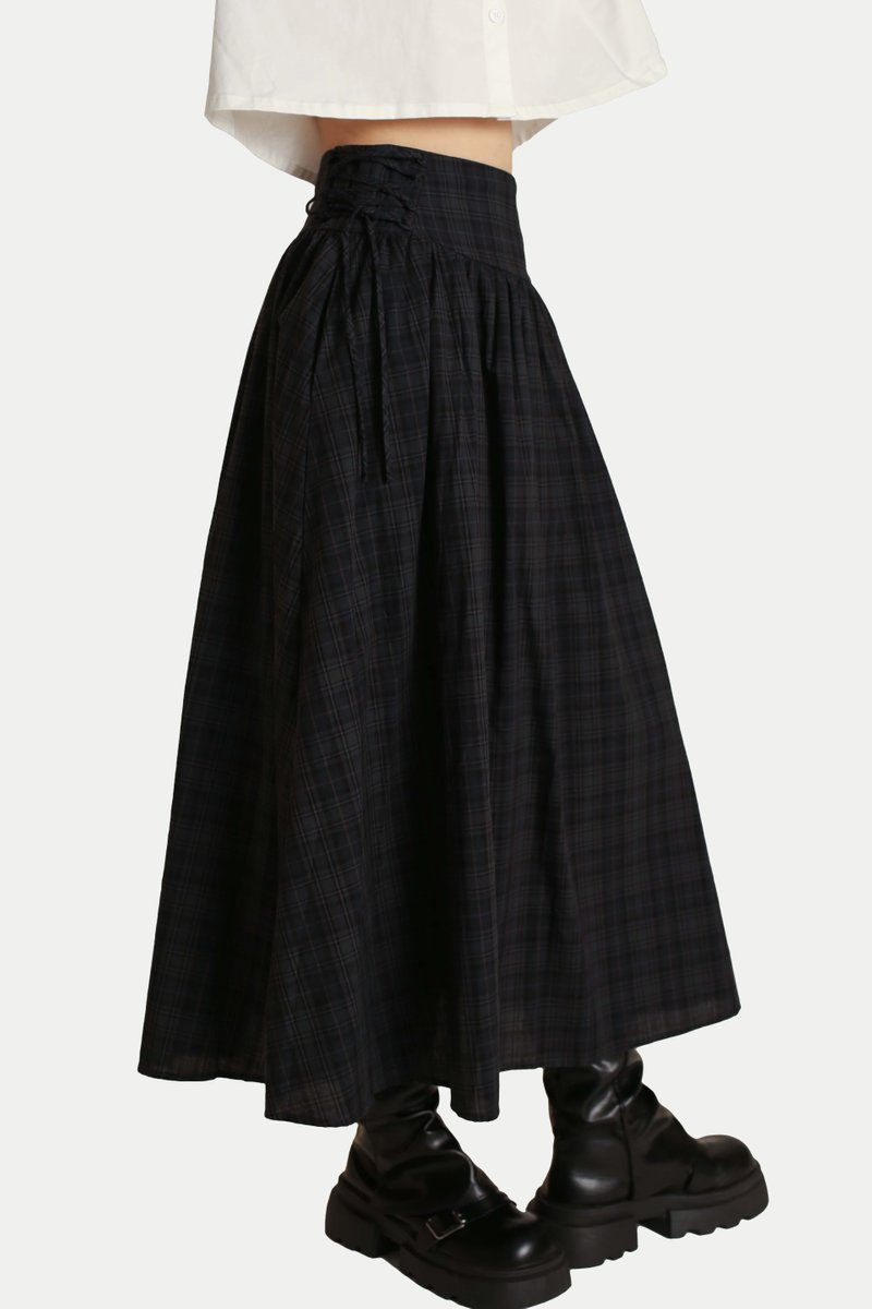 The Tsuki Side Corset Midi Skirt is the perfect detailed staple to elevate your wardrobe. It features a structured yoke with side corset detailing for a cinched waist and added visual interest. Beautiful gathers throughout create a voluminous, flattering flare. Crafted from a breathable cotton-blend material, it's incredibly comfortable—even in blazing heat. Designed with practical side pockets for added convenience. Opens via a back concealed zip. Fully lined