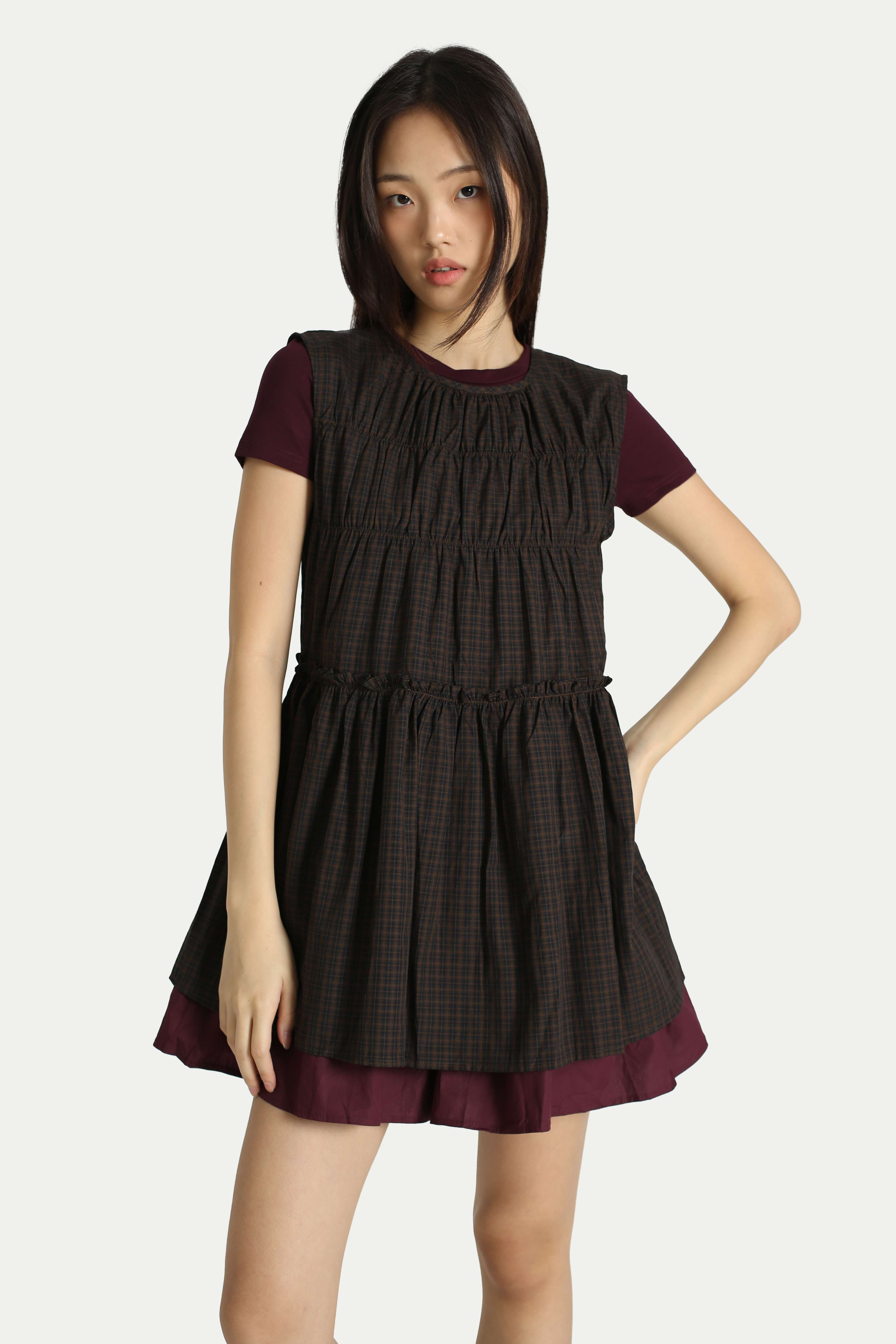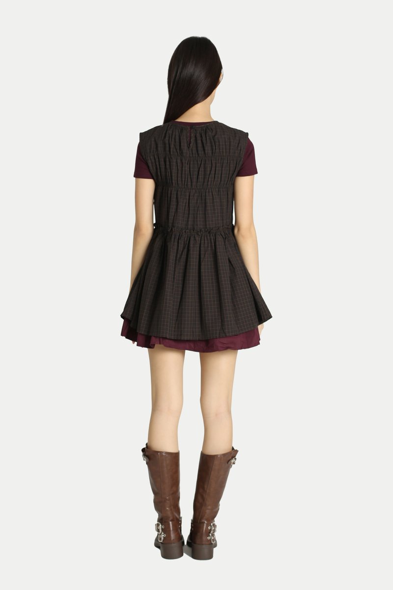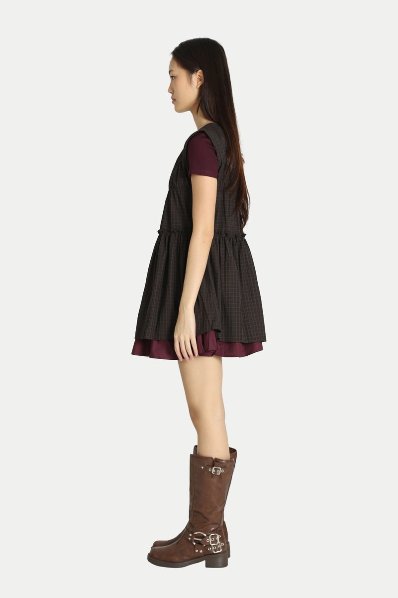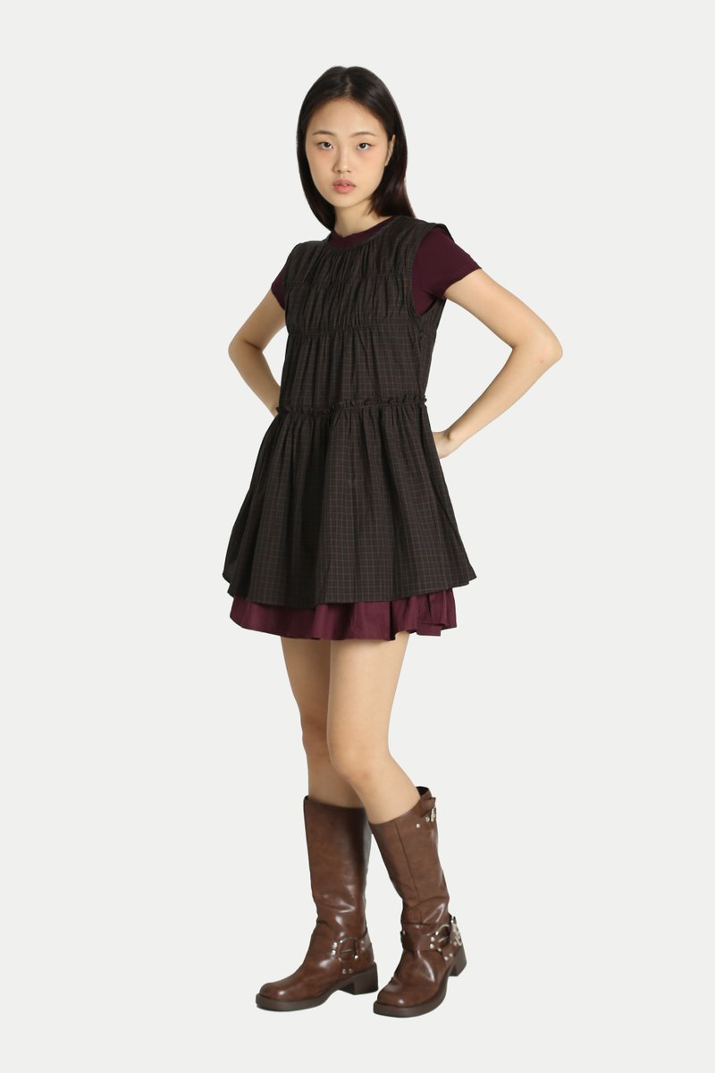 ADORA CHECKERED FRILL TOP IN BLACK