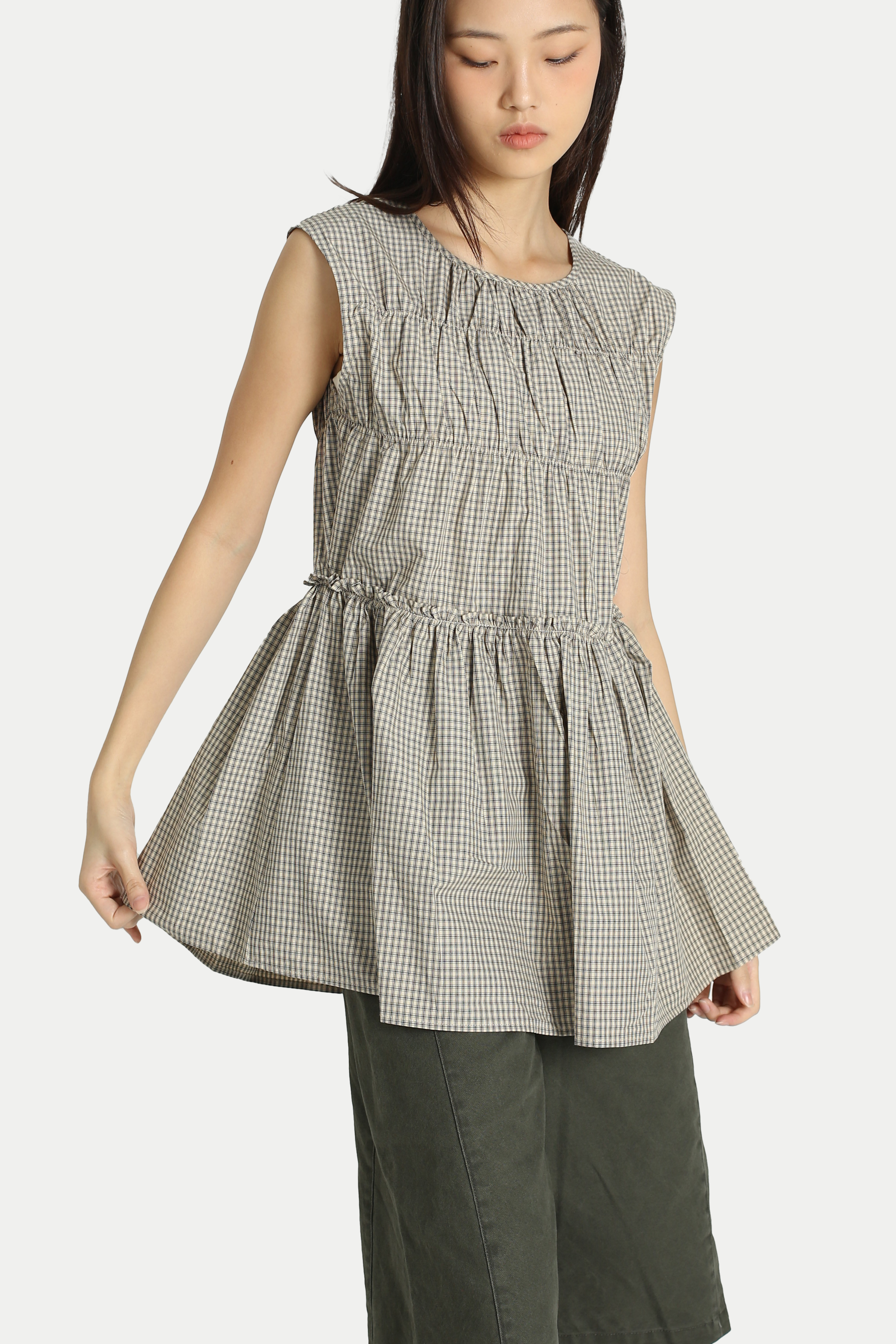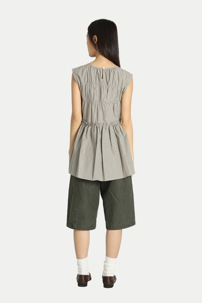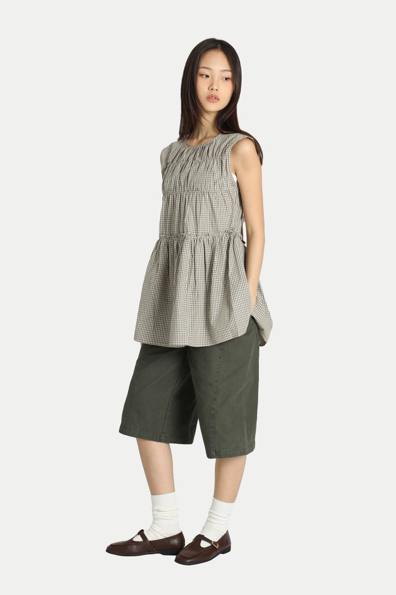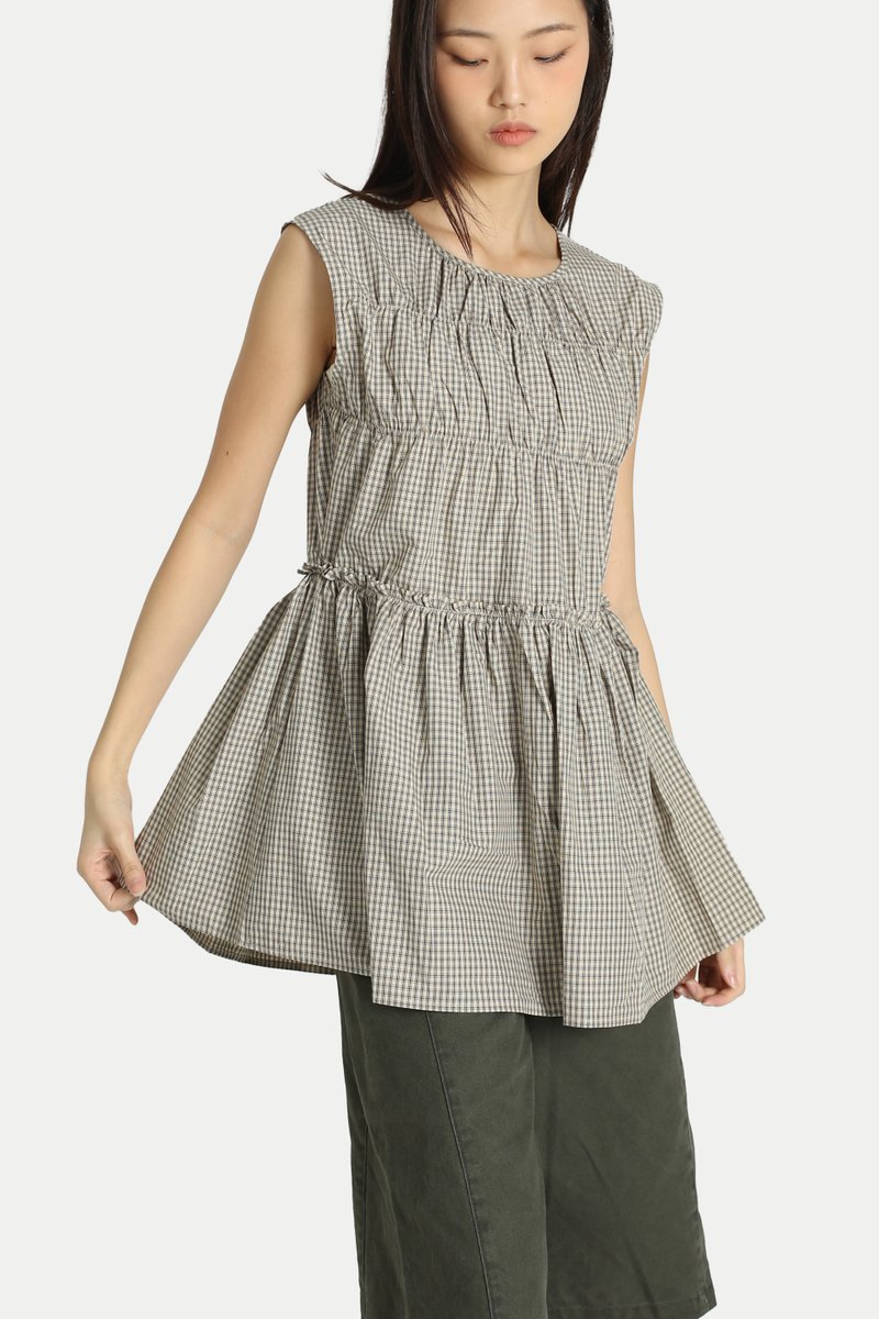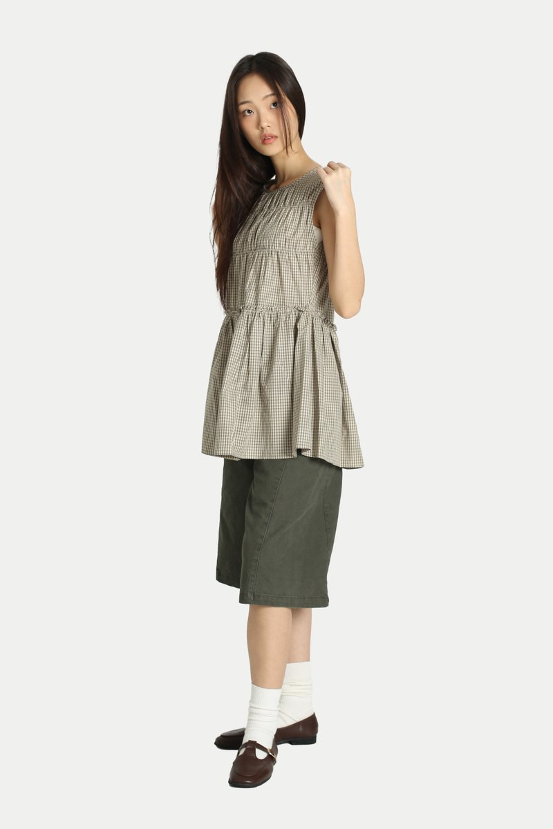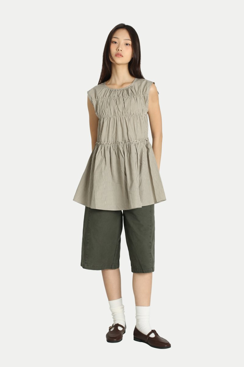 ADORA CHECKERED FRILL TOP IN KHAKI