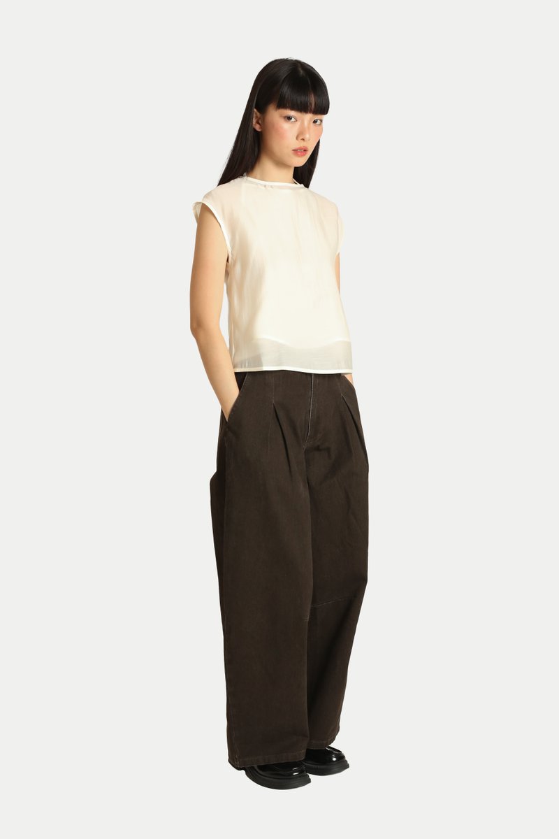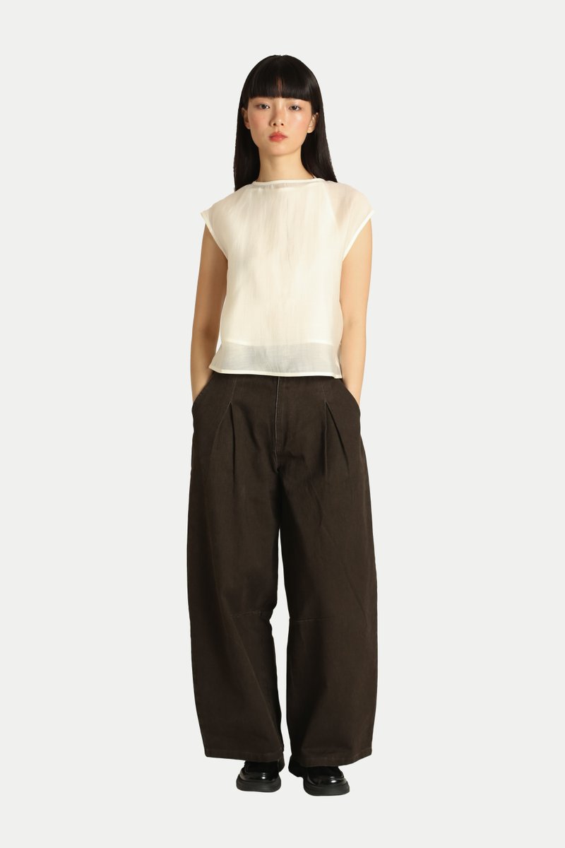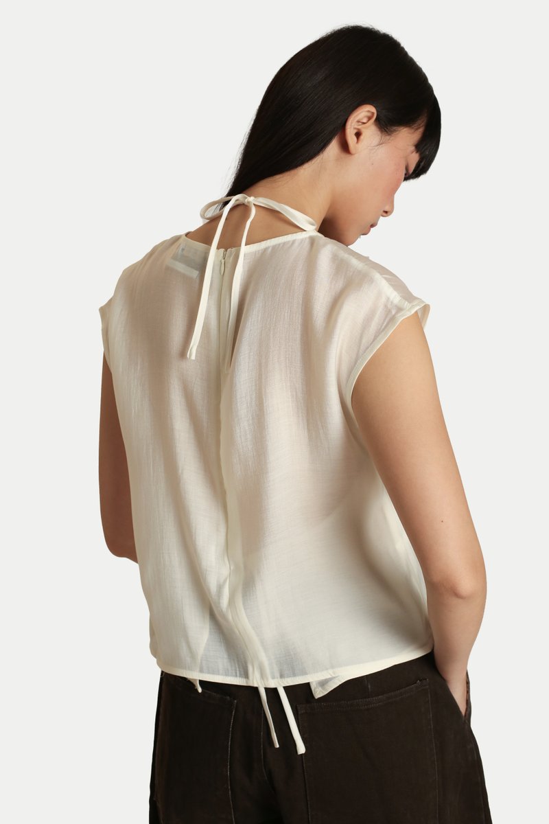 ANNE SHEER TWO-PIECE SCARF TOP IN PEARL