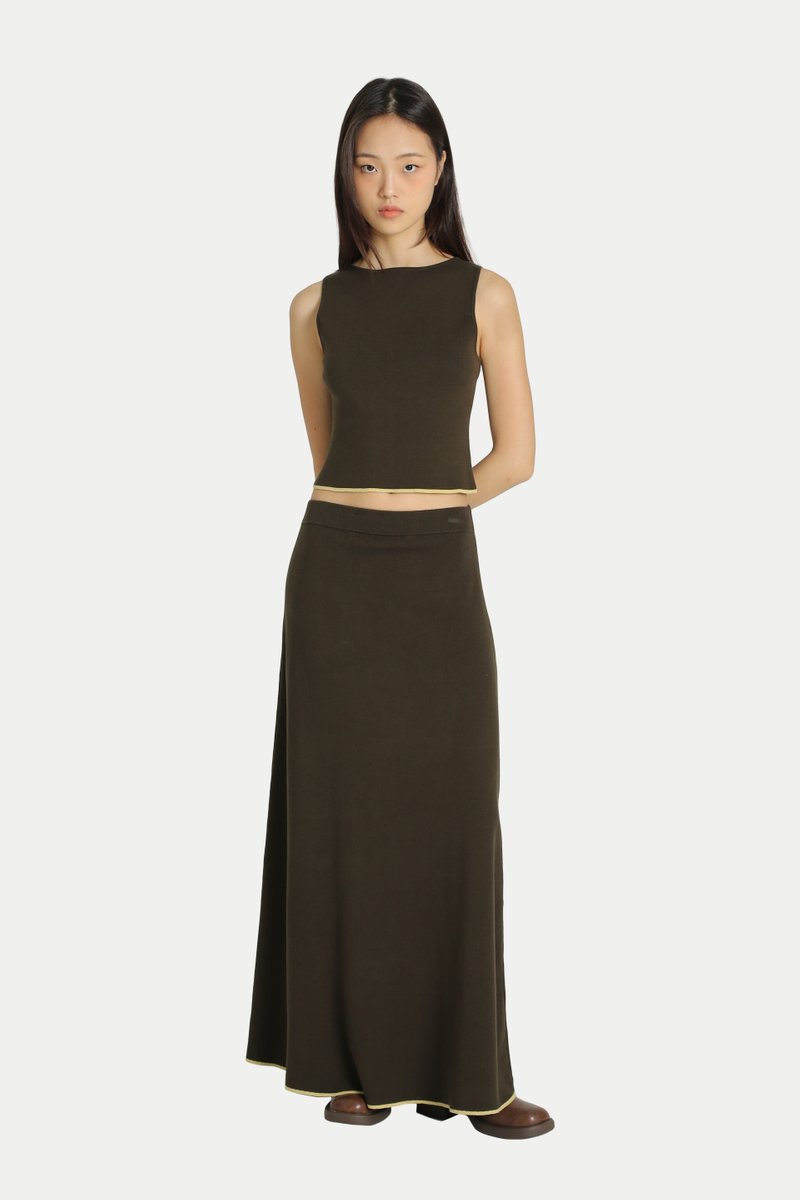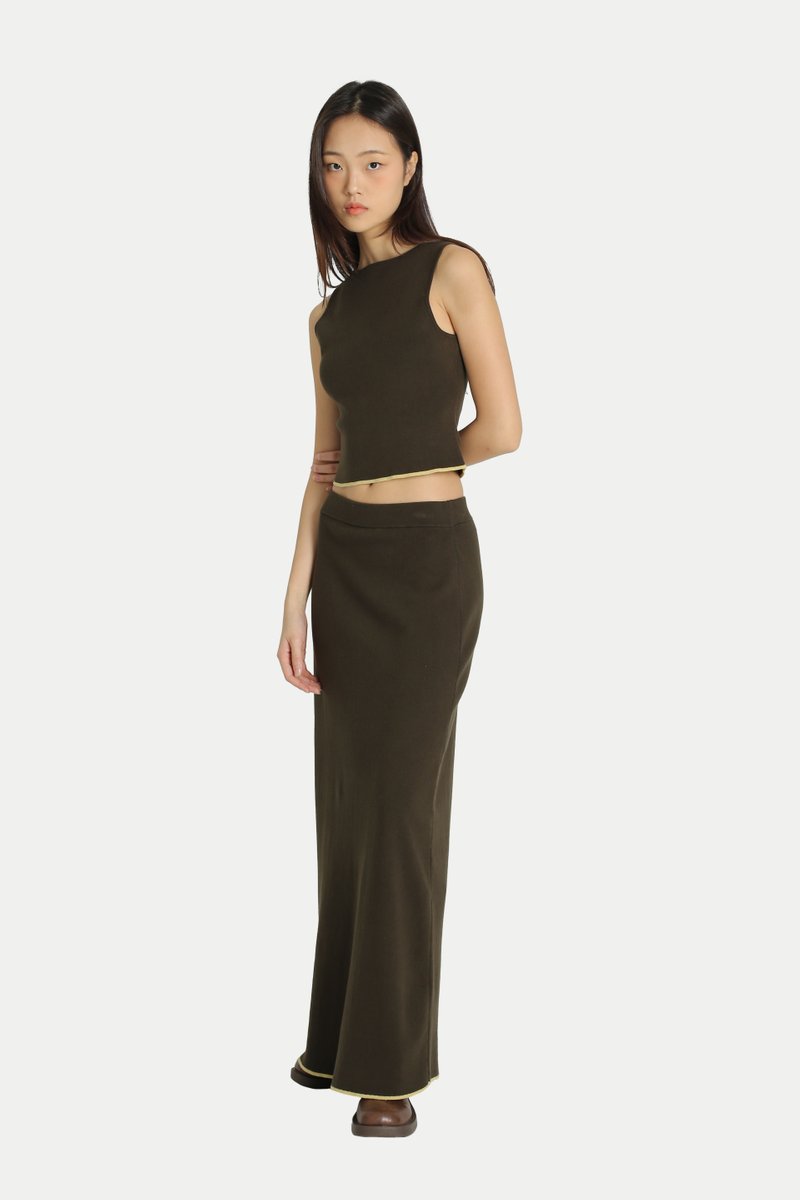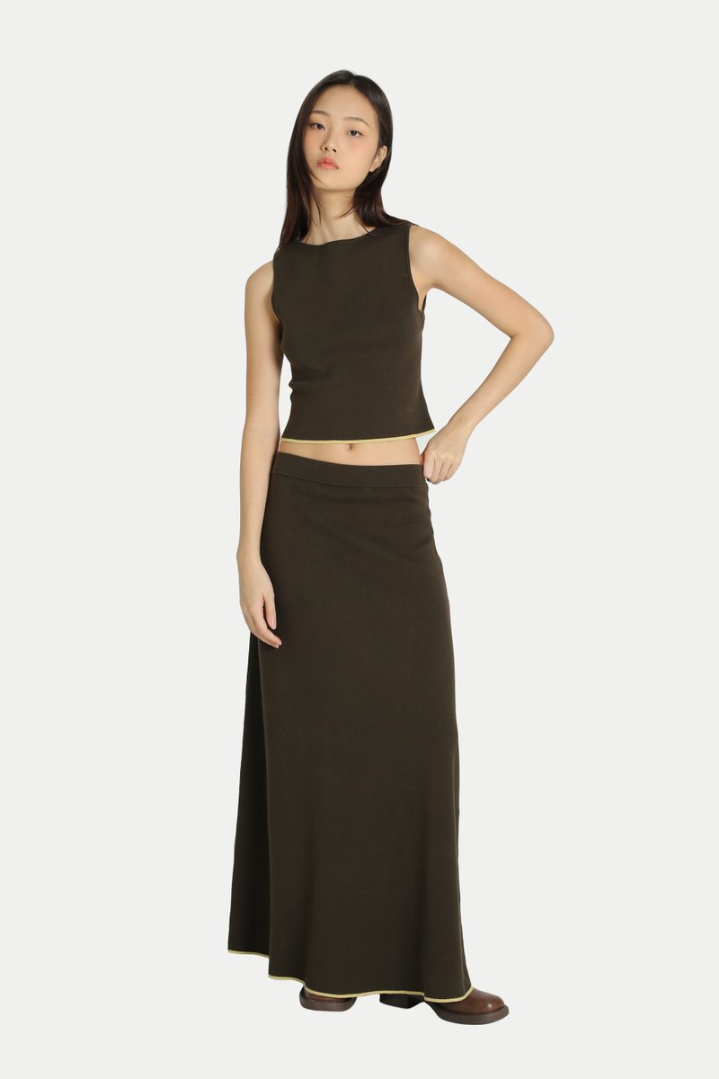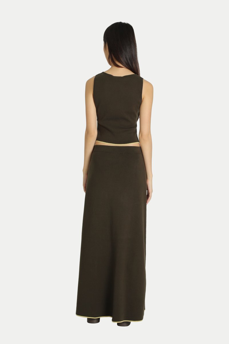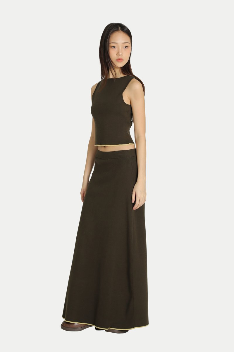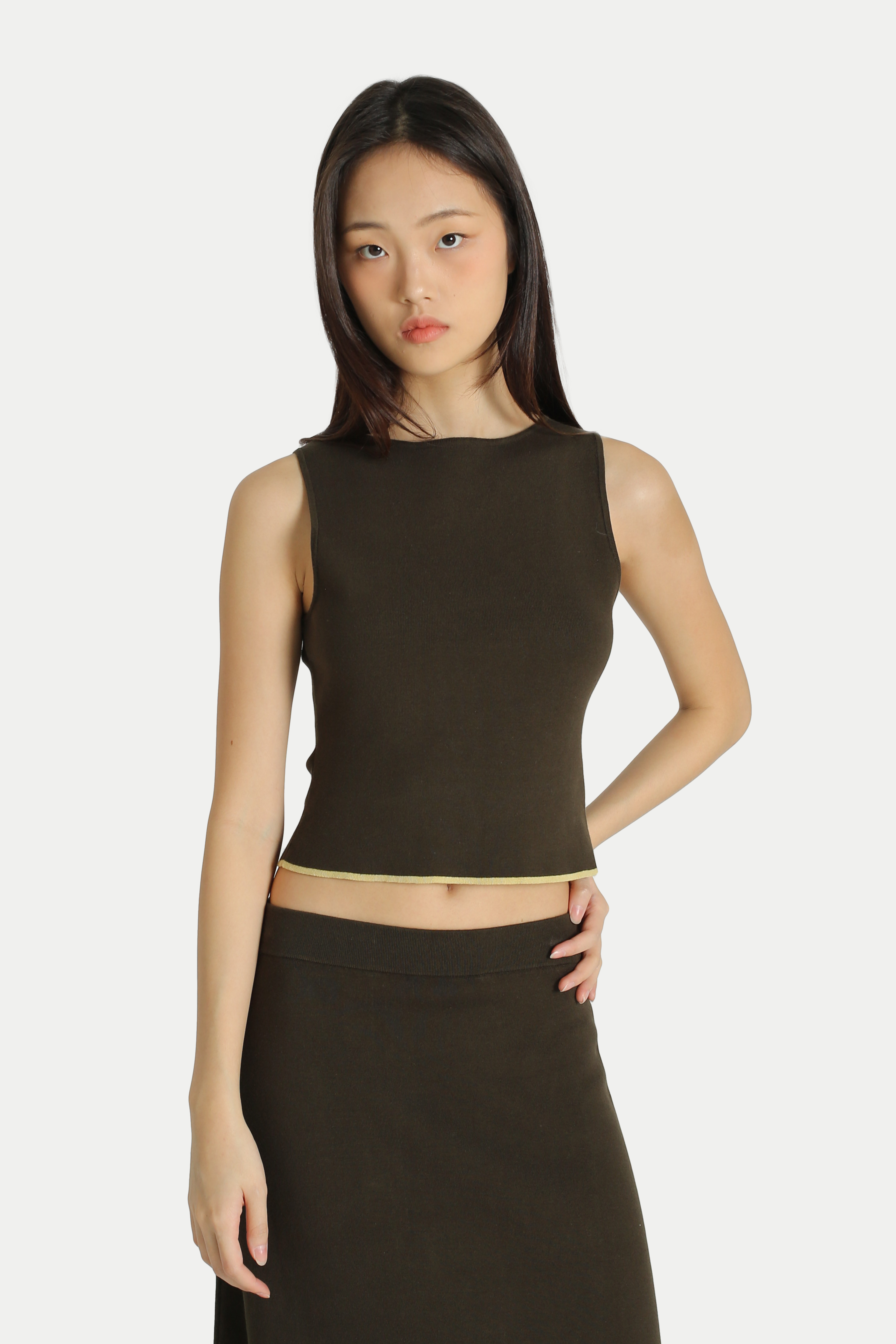 ARCADE X HIRO Y. CONTRAST KNITTED TOP IN OLIVE