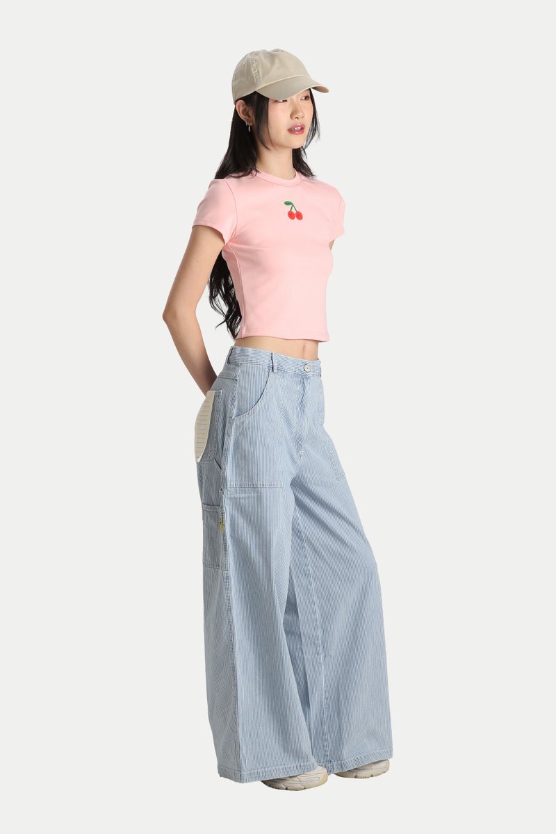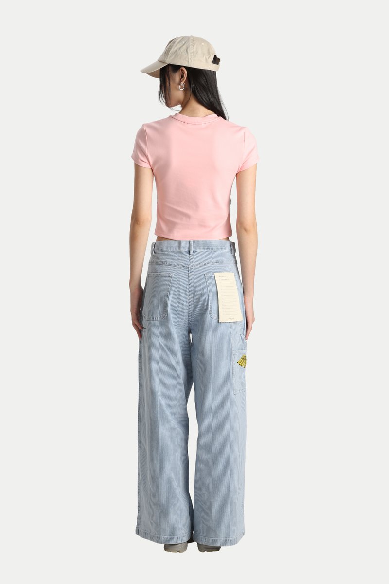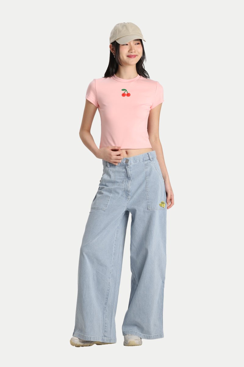The Arcade x Tess Smith-Roberts “CHERRY” Contrast-Stitch Baby Tee is a classic, easy-to-love staple. Featuring Tess Smith-Roberts’ signature fruit illustration printed on the front, it adds a playful touch to a timeless baby tee silhouette. Cut from soft cotton jersey, the fabric has a comfortable stretch that moves with you, making it perfect for everyday wear. Finished with contrast stitching for a subtle pop of detail. Style it with jeans for an effortlessly cute look, or pair it with a pleated skirt for a charming girl-next-door feel. Slip-on wear. Unlined.