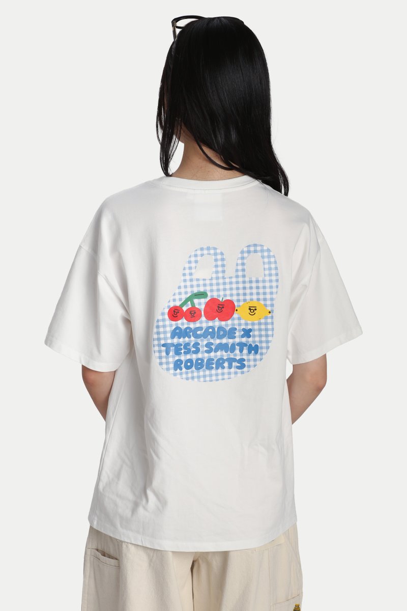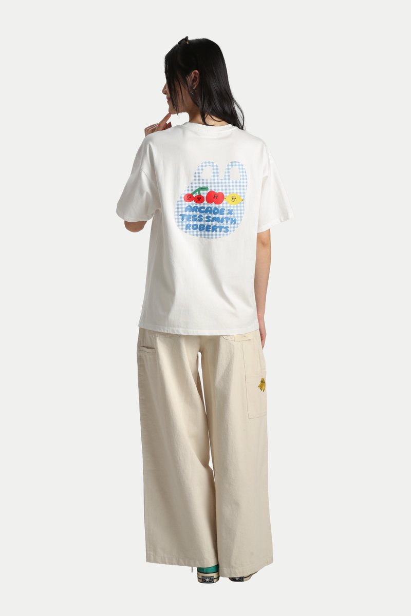 ARCADE X TESS SMITH-ROBERTS “GROCERY BAG” OVERSIZED T-SHIRT IN WHITE