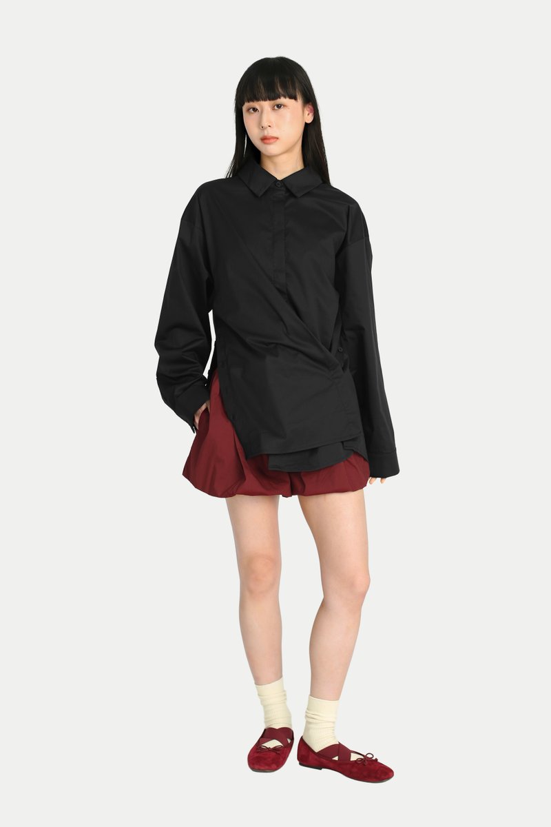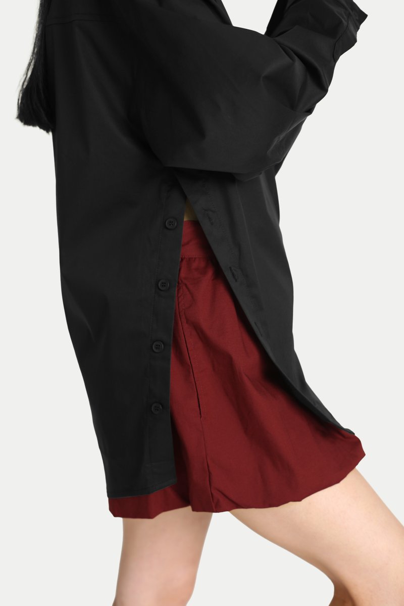 Looking for a timeless shirt with a touch of fun? The Aruna Multi-Wearing Button Shirt is the perfect addition to your closet. It features an oversized silhouette and side slits with button openings, mirroring the classic front opening. With endless styling possibilities, button it normally, to the side, or at the center, leaving creativity to you. Style it with our Madlyn Midi Gather Skirtfor a complete set, or pair it with tailored trousers for a confident girl-boss look. Opens via front button-down. Unlined.