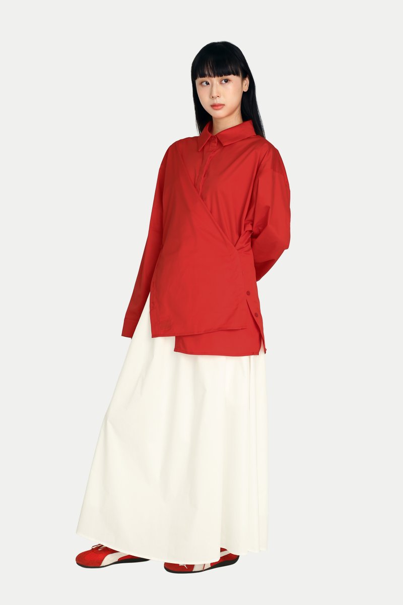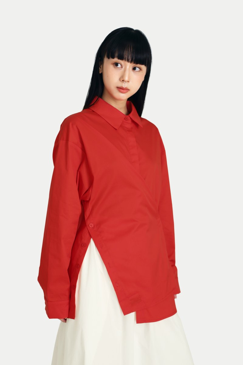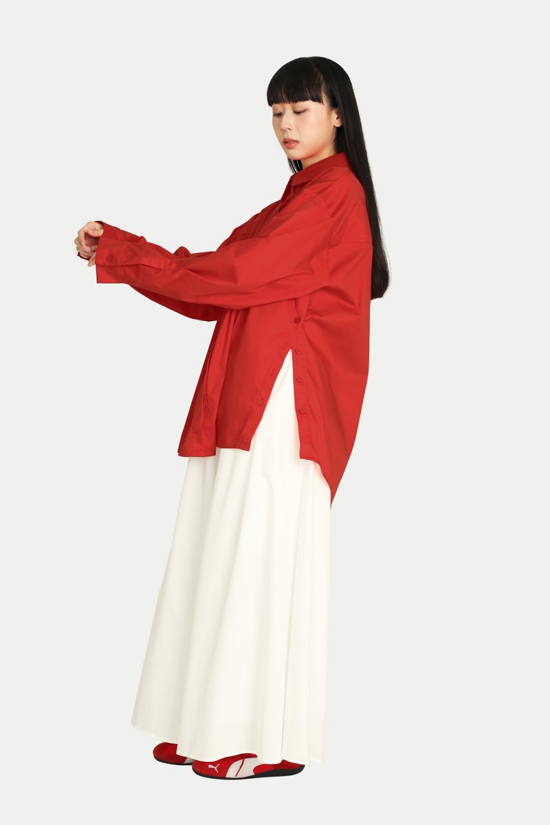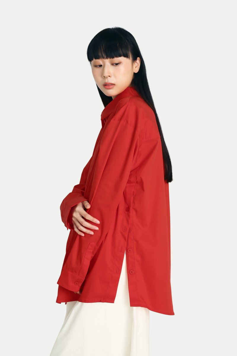 Looking for a timeless shirt with a touch of fun? The Aruna Multi-Wearing Button Shirt is the perfect addition to your closet. It features an oversized silhouette and side slits with button openings, mirroring the classic front opening. With endless styling possibilities, button it normally, to the side, or at the center, leaving creativity to you. Style it with our Madlyn Midi Gather Skirt for a complete set, or pair it with tailored trousers for a confident girl-boss look. Opens via front button-down. Unlined.
