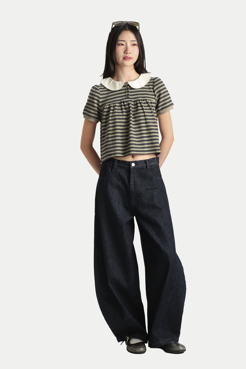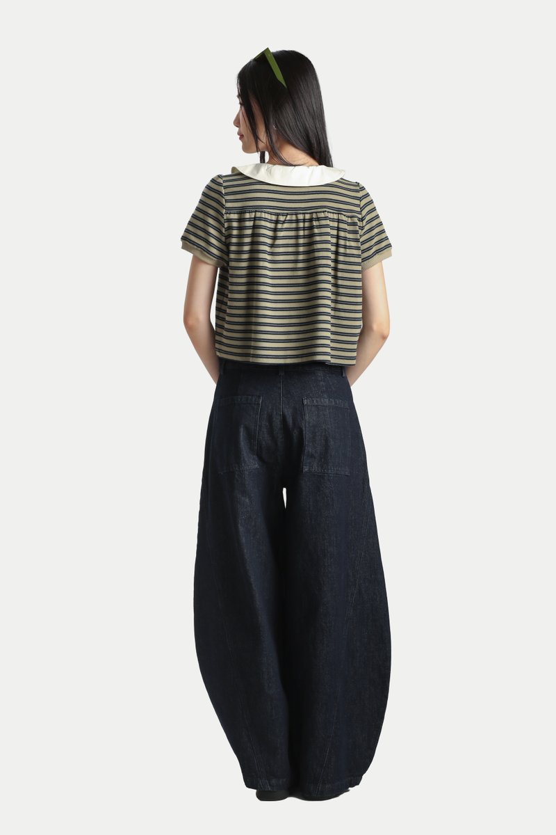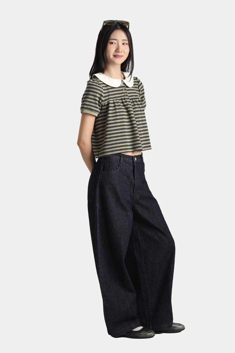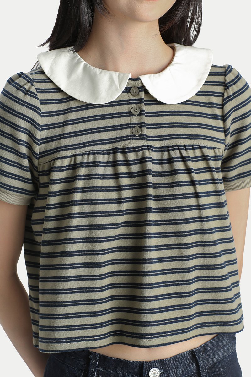 CAITLIN BABYDOLL STRIPE POLO IN OLIVE STRIPES