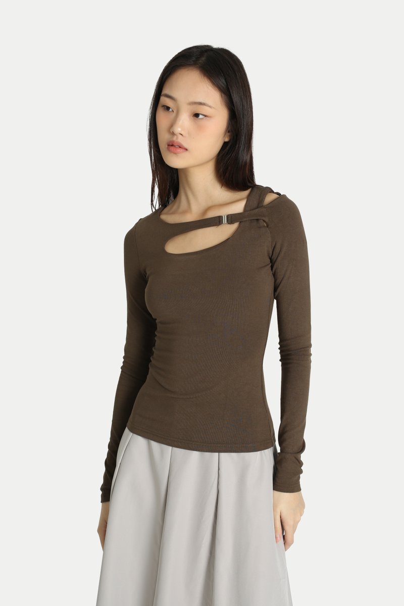 CARINA ASYMMETRICAL CUT-OUT TOP IN MOSS