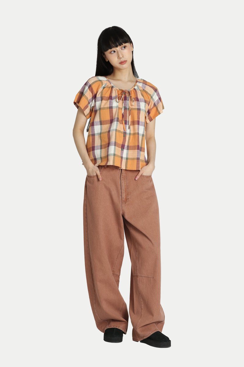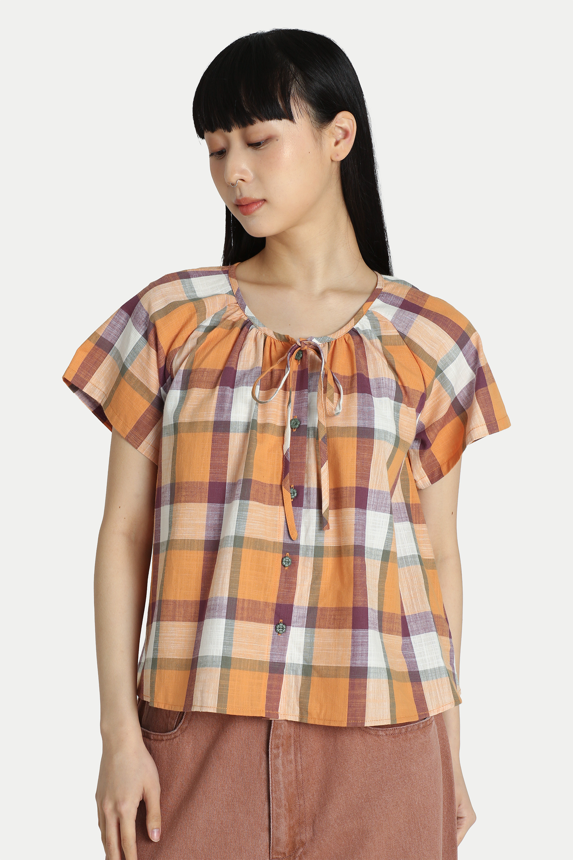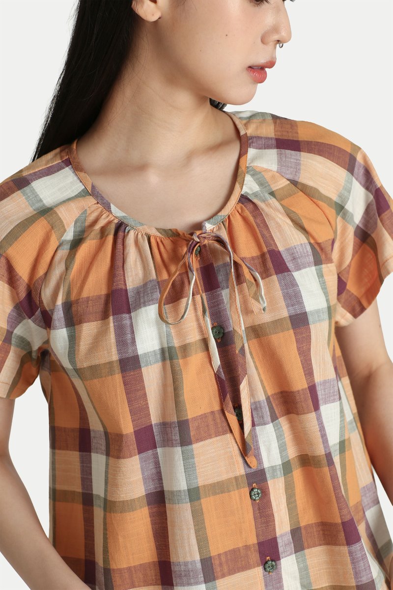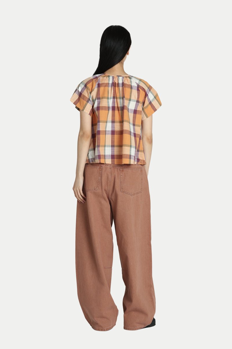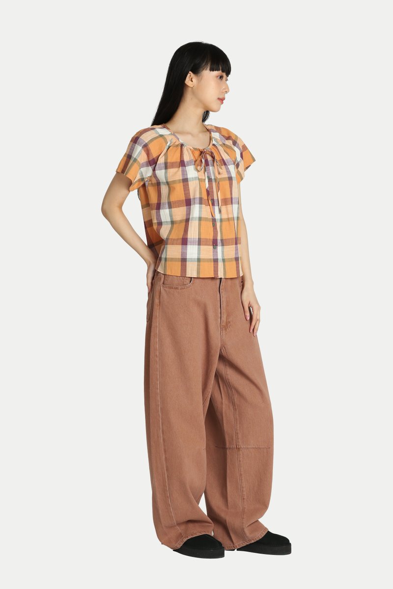 CLARA CHECKERED FLARE TOP IN TANGERINE