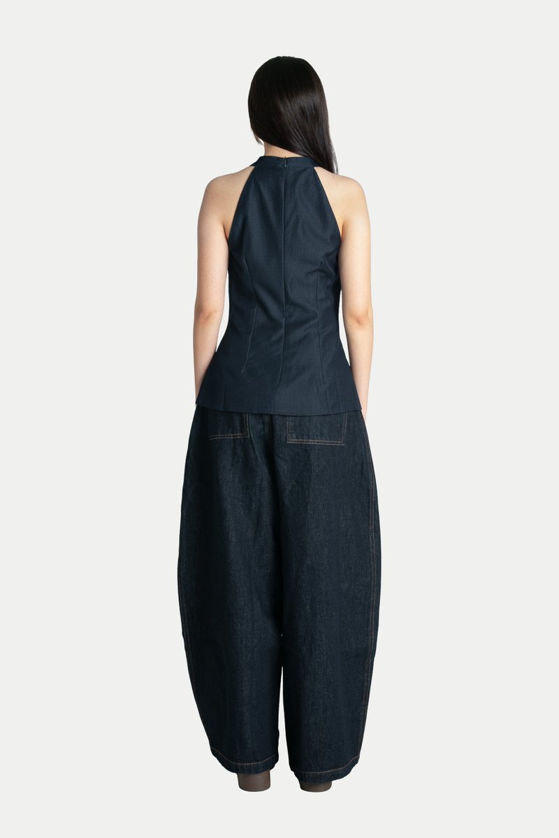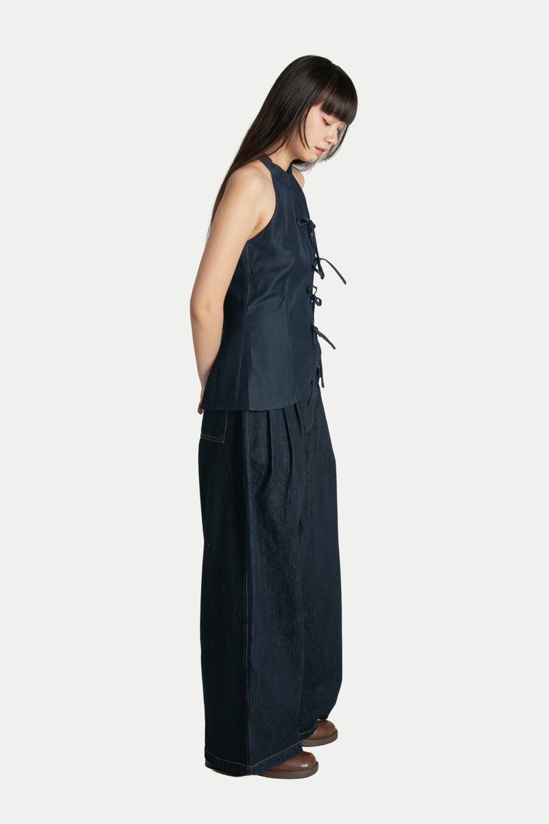 CLAUDETTE RIBBON CHEONGSAM TOP IN DARK WASH