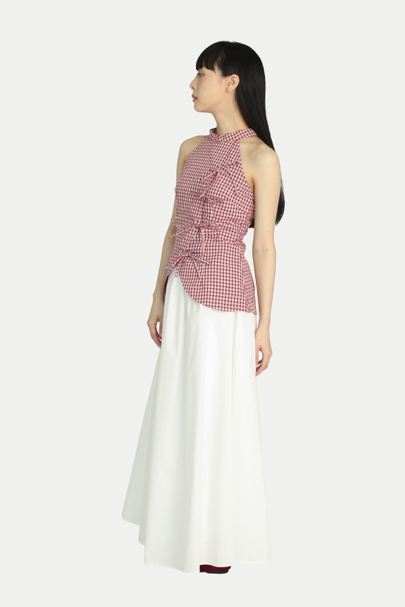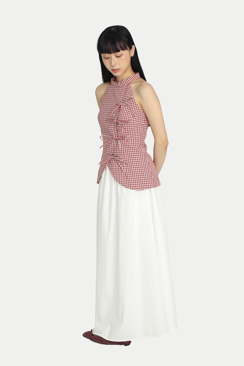 CLAUDETTE RIBBON CHEONGSAM TOP IN RED CHECKS